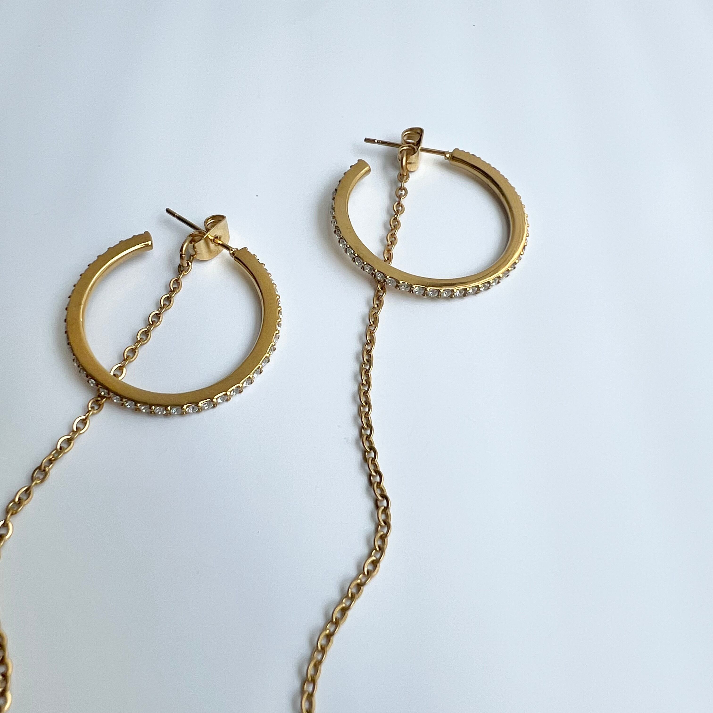 ロングチェーンが揺れ動き、視線を惹きつける。