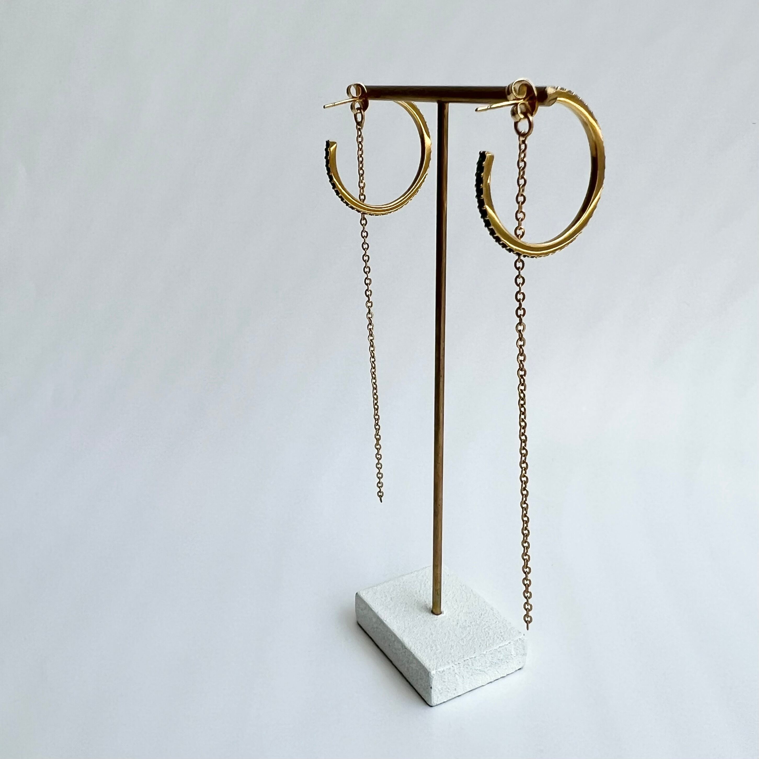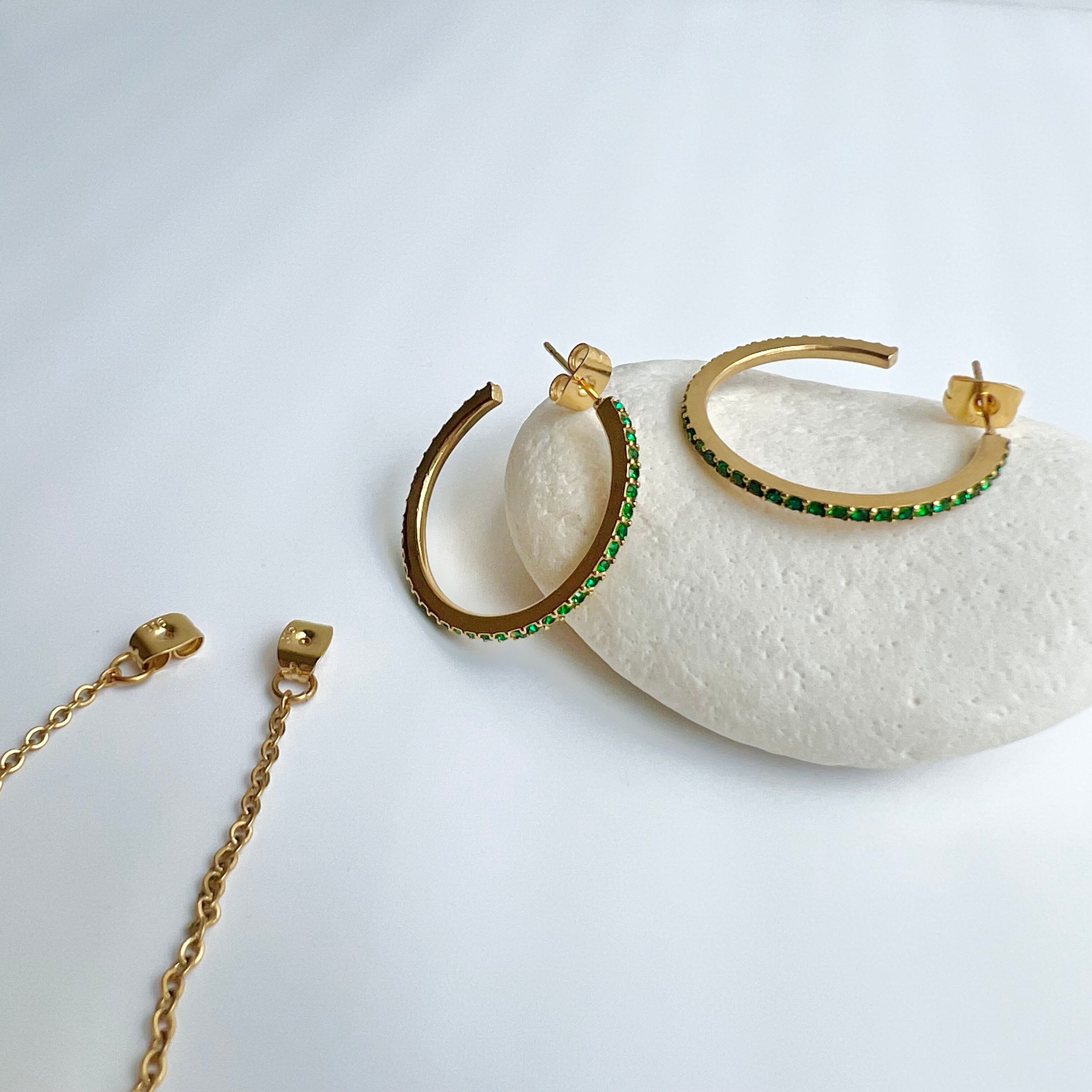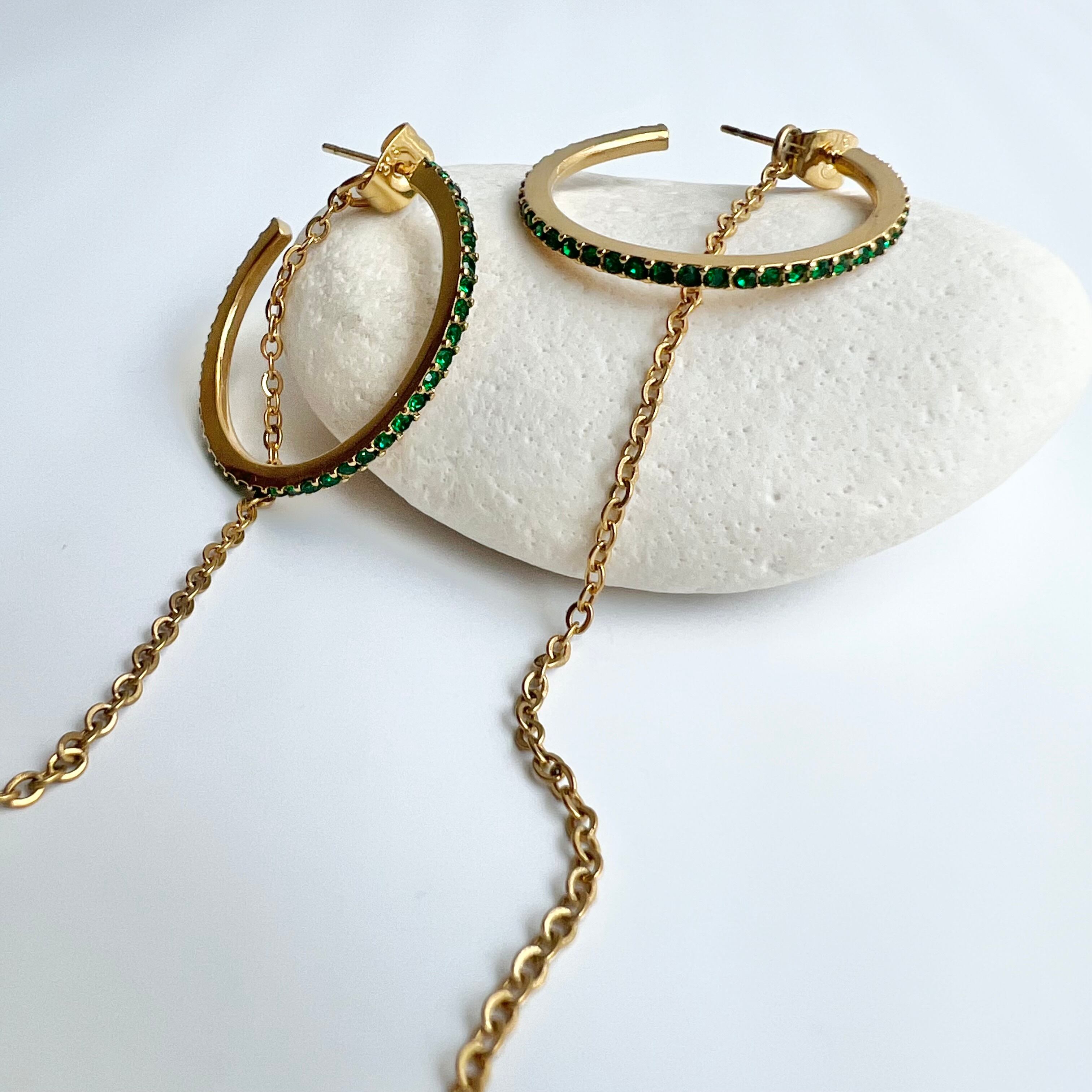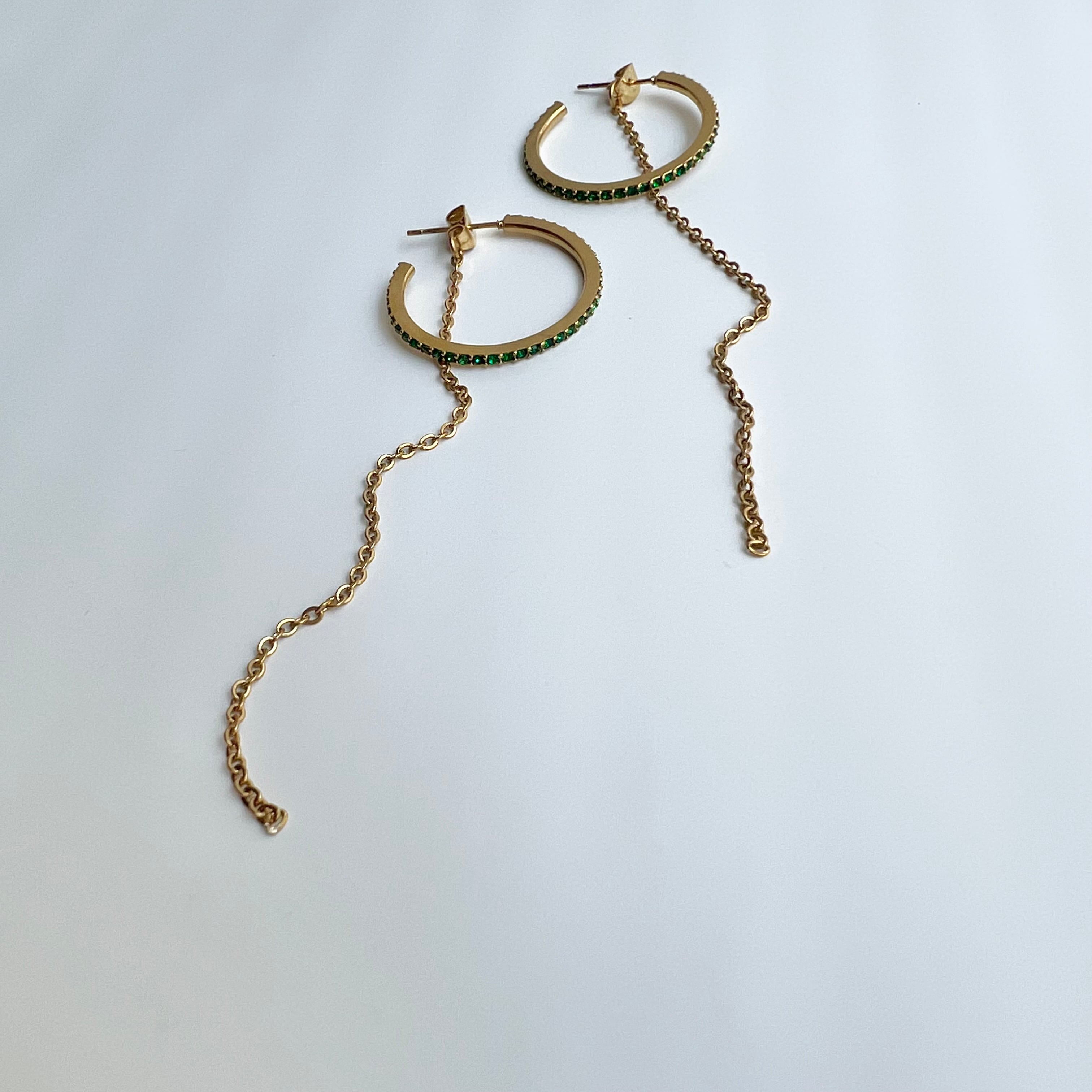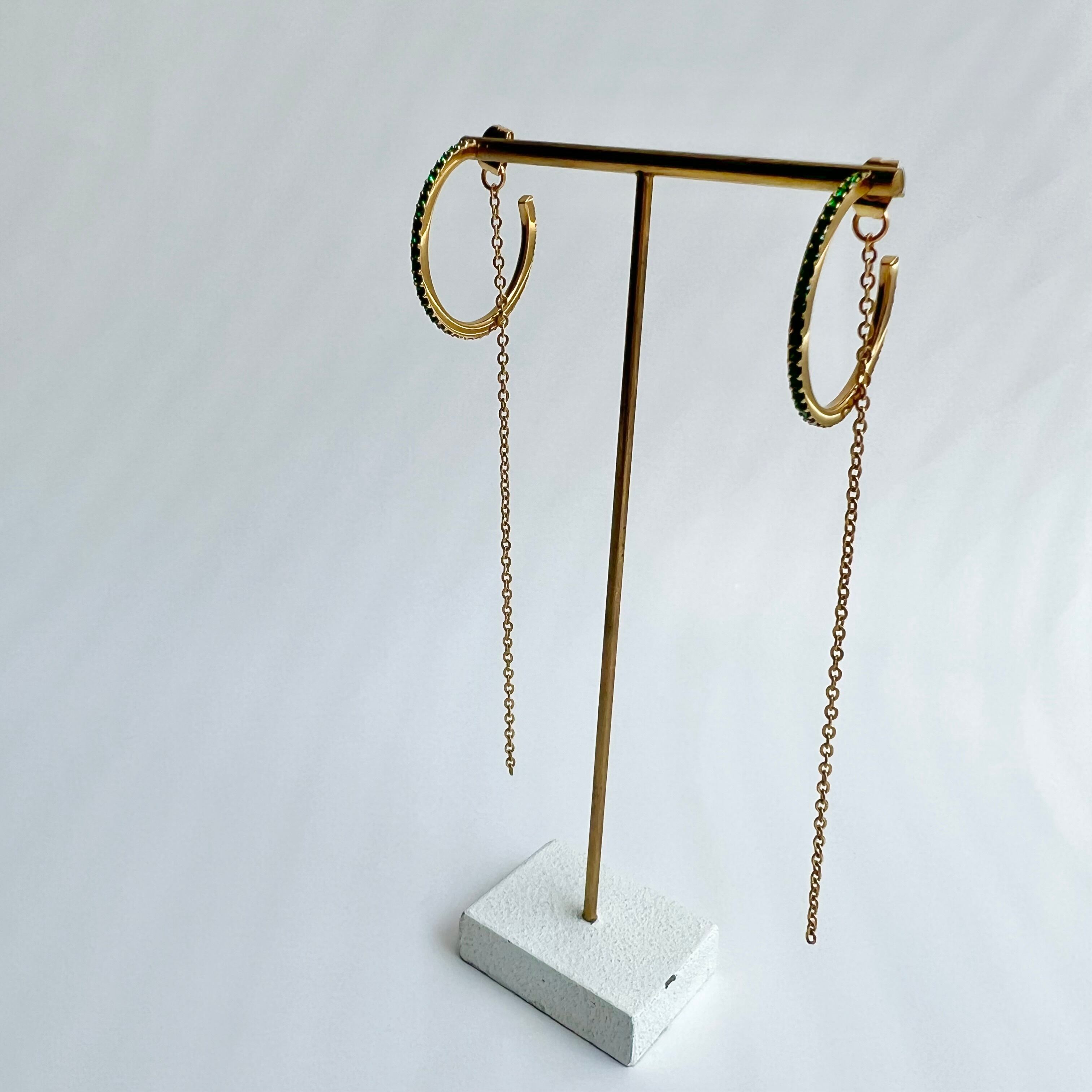 <グリーン> ジルコニアフープ×ロングチェーンピアス