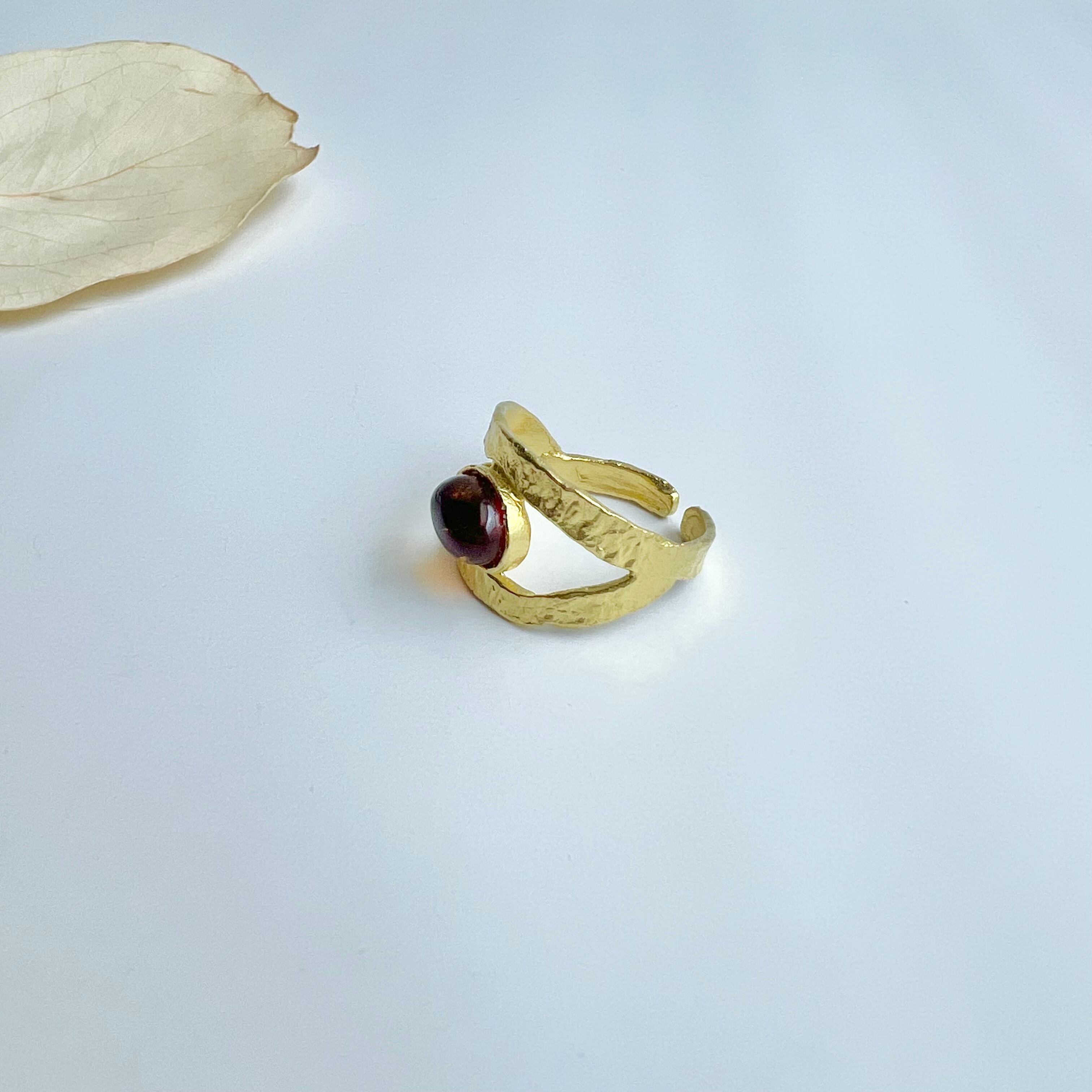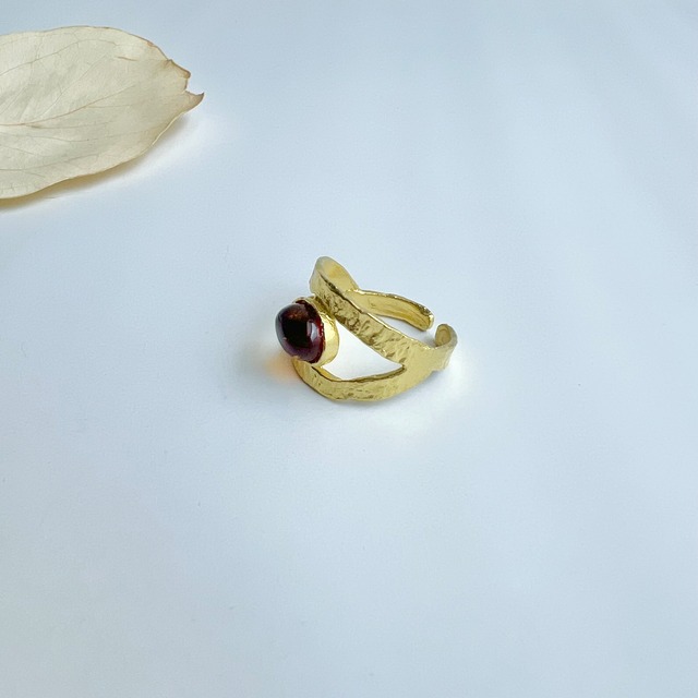 テクスチャーの真鍮リングに、