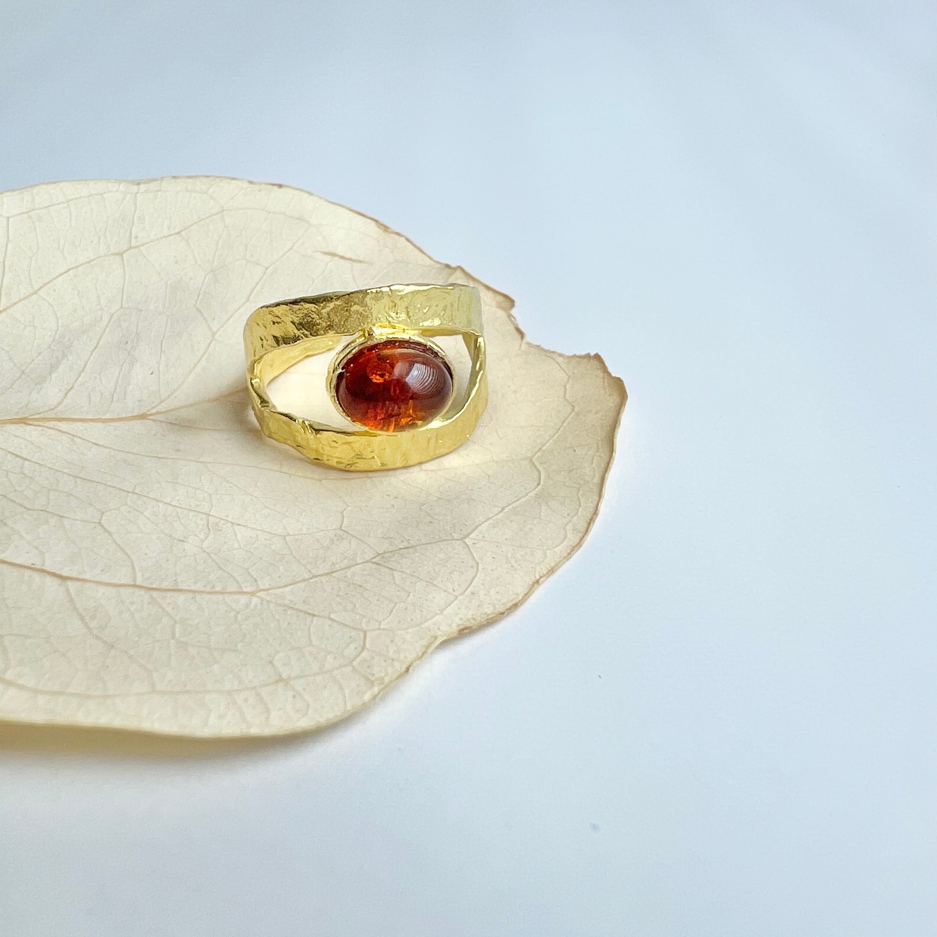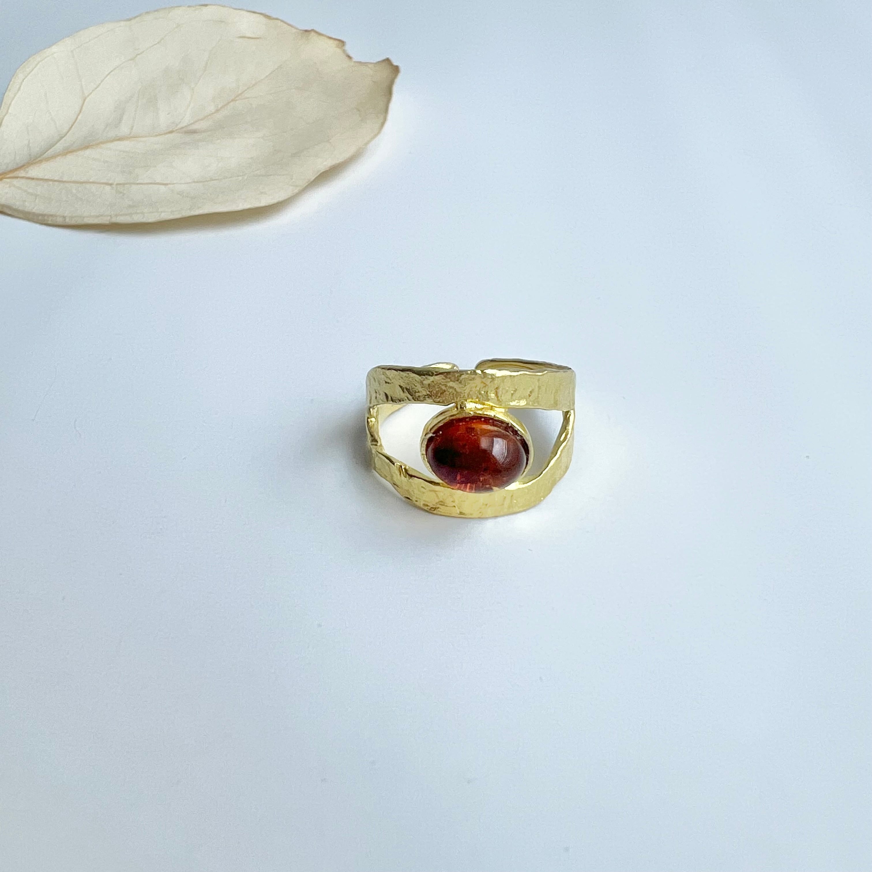 琥珀 アンバー真鍮リング
