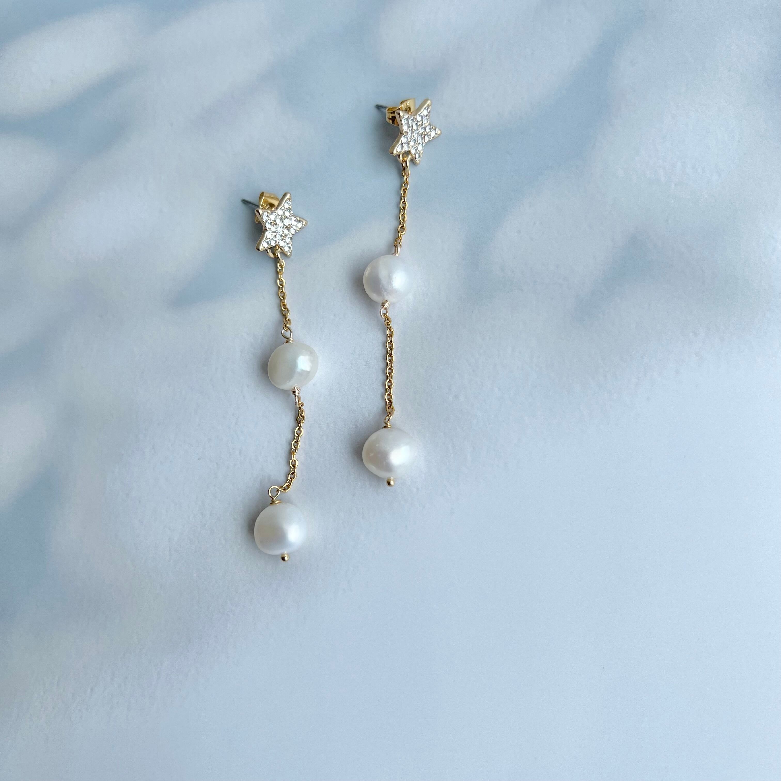 \\雑誌掲載//スター淡水パールロングピアス・イヤリング