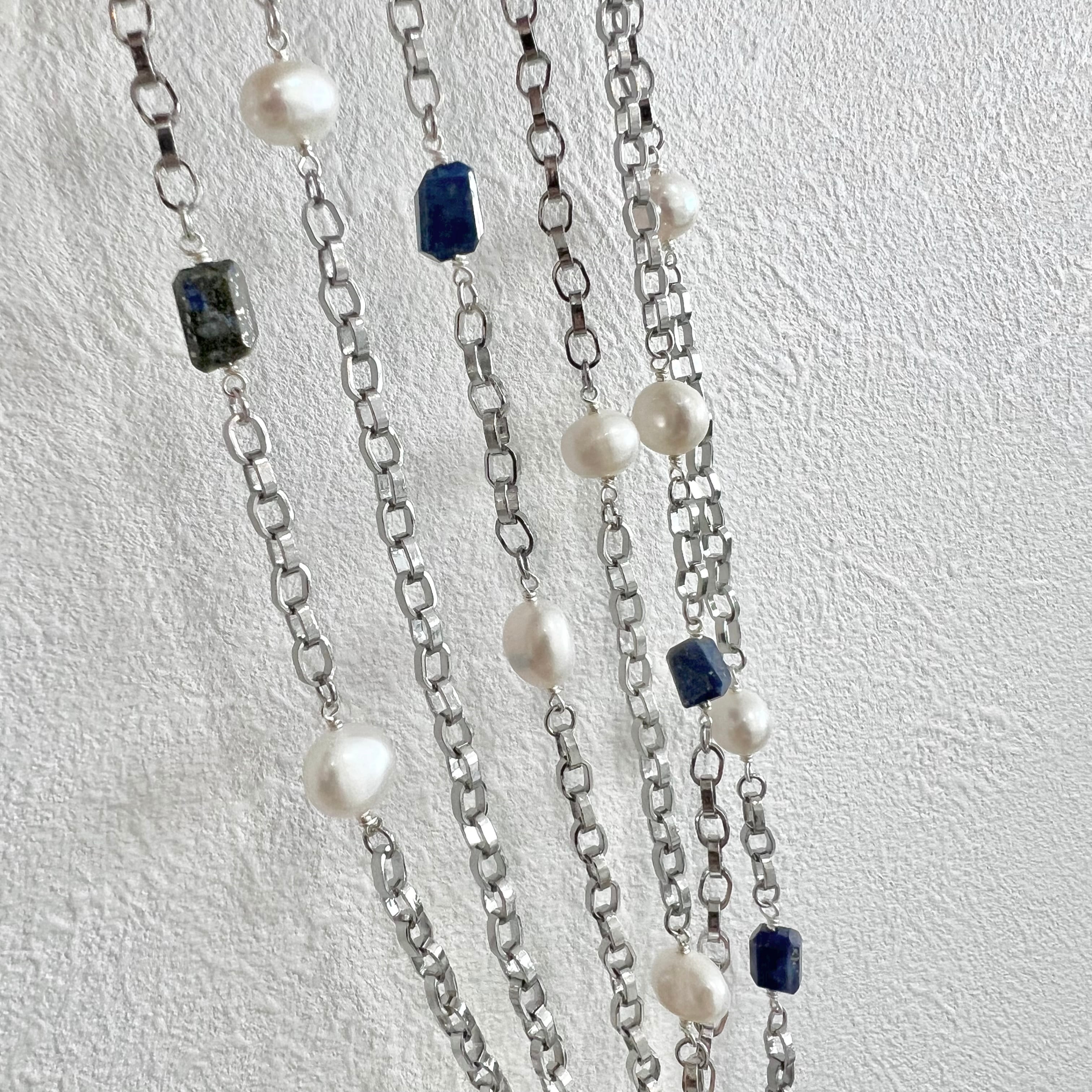 \\なにわ男子着用//ラピスラズリ&淡水パールチェーンネックレス