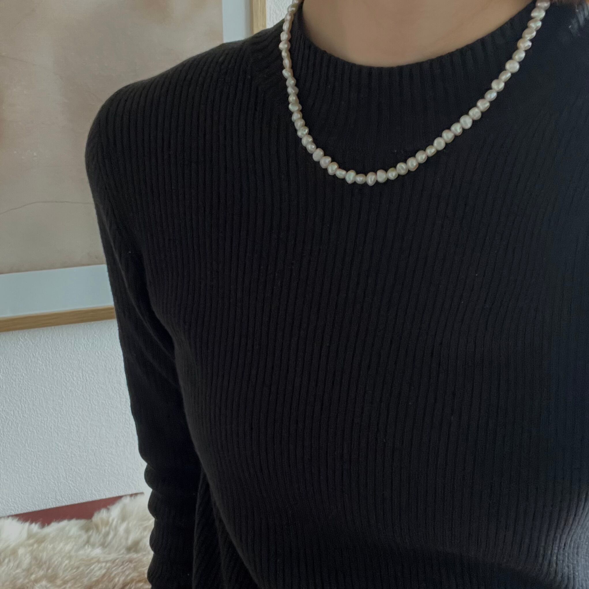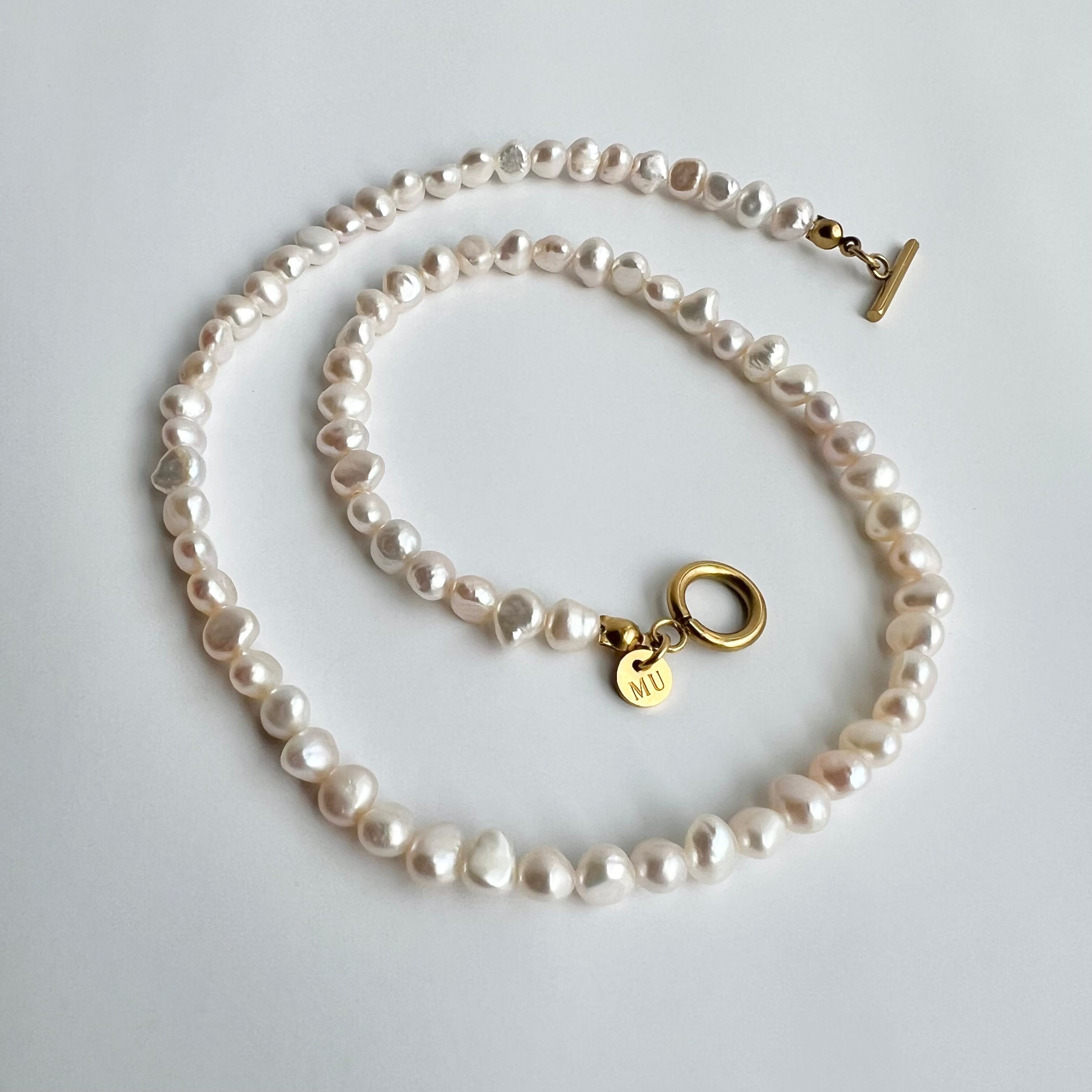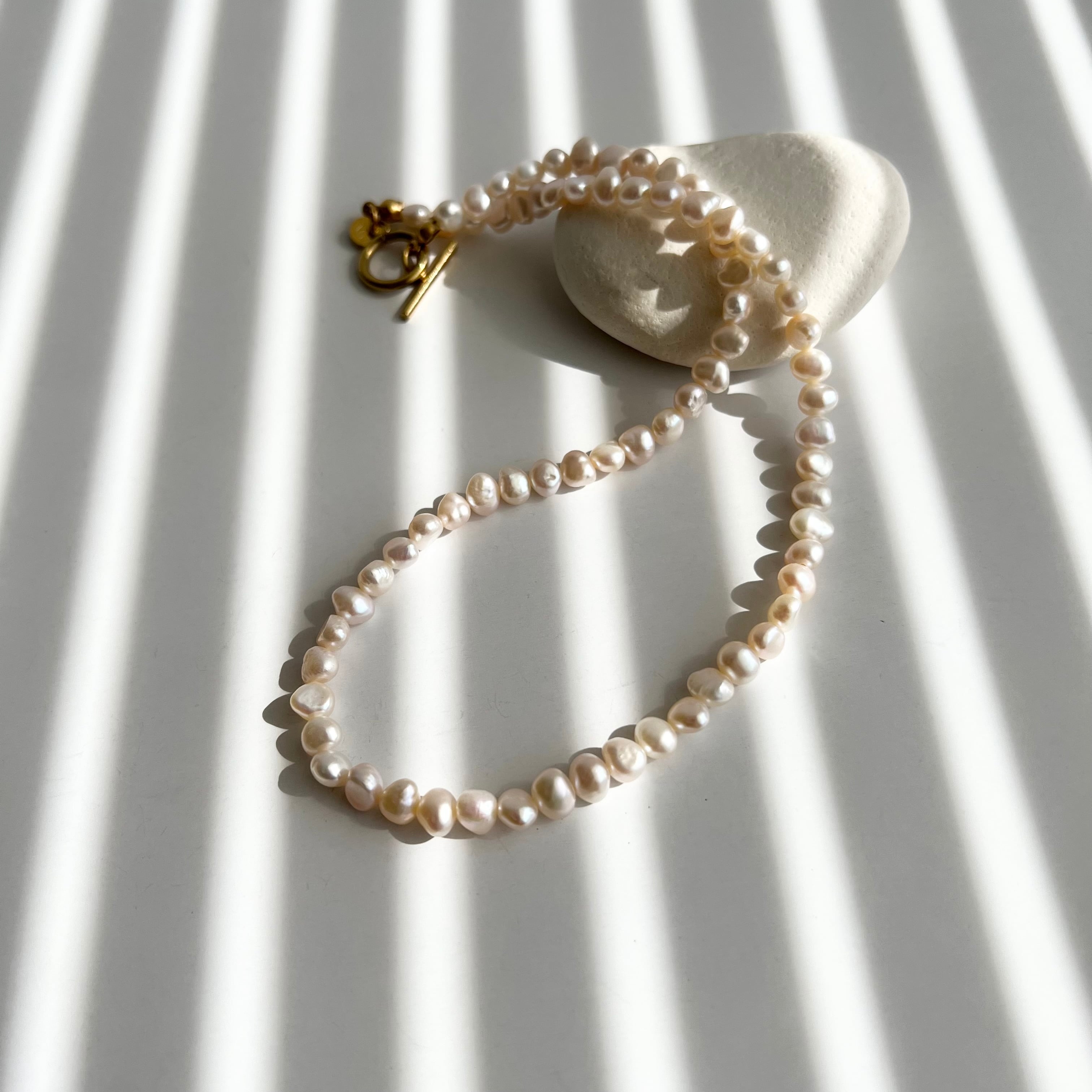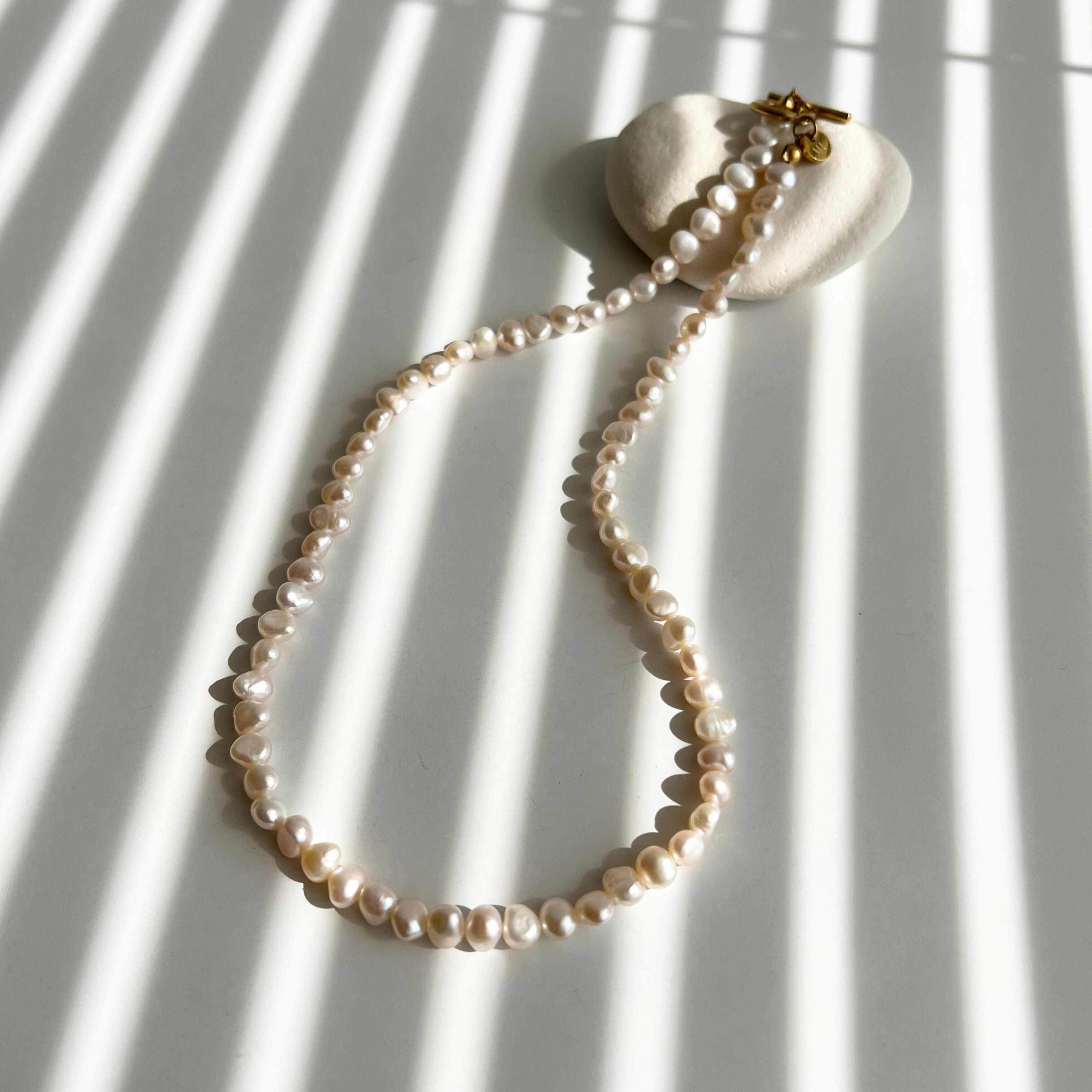 ひと粒ひと粒個性を宿した淡水パールのショートネックレス。