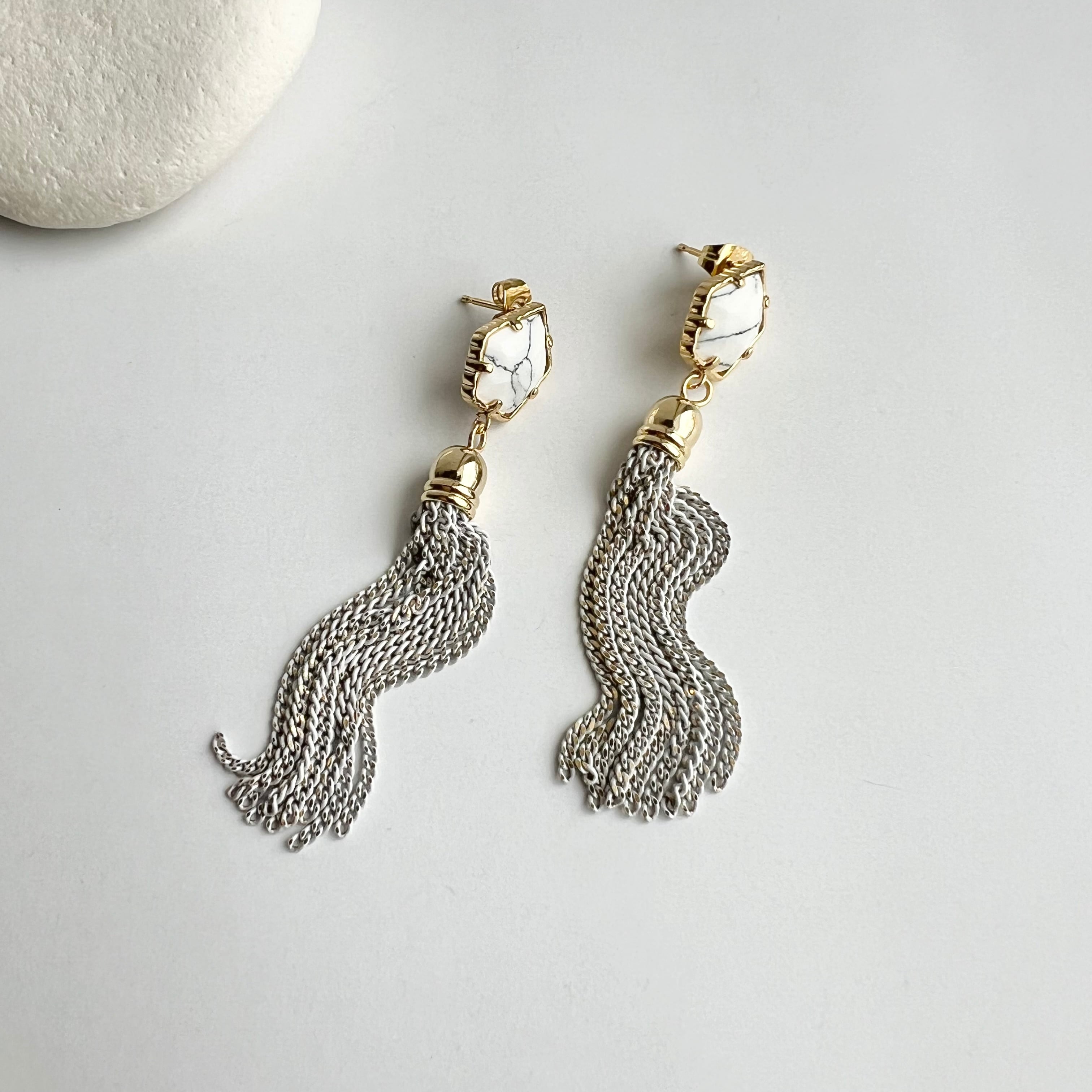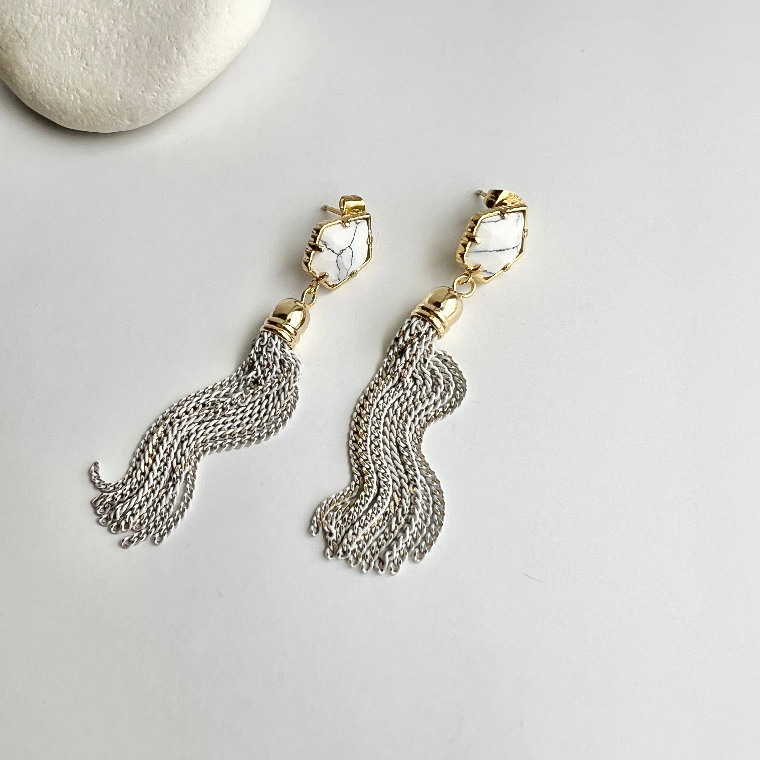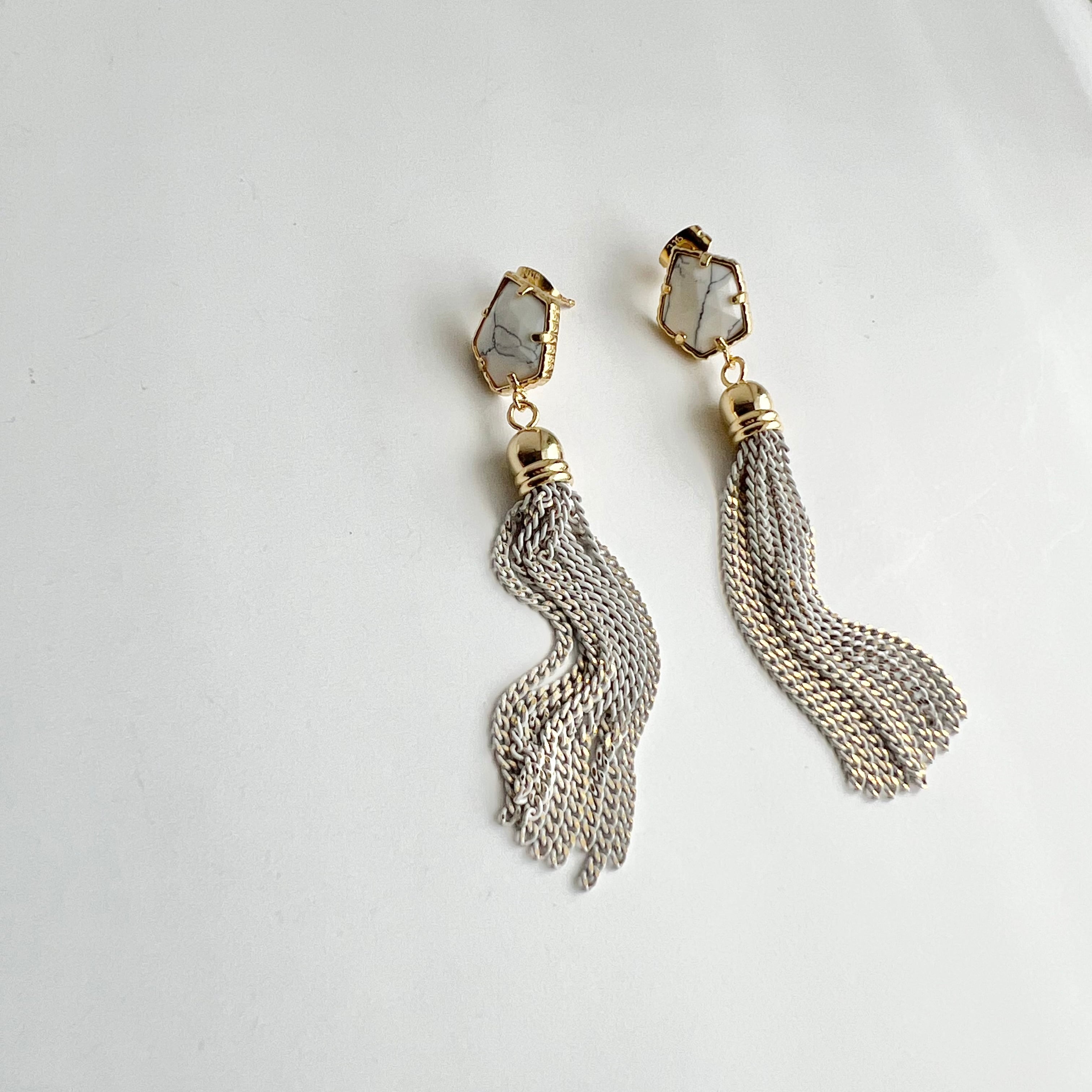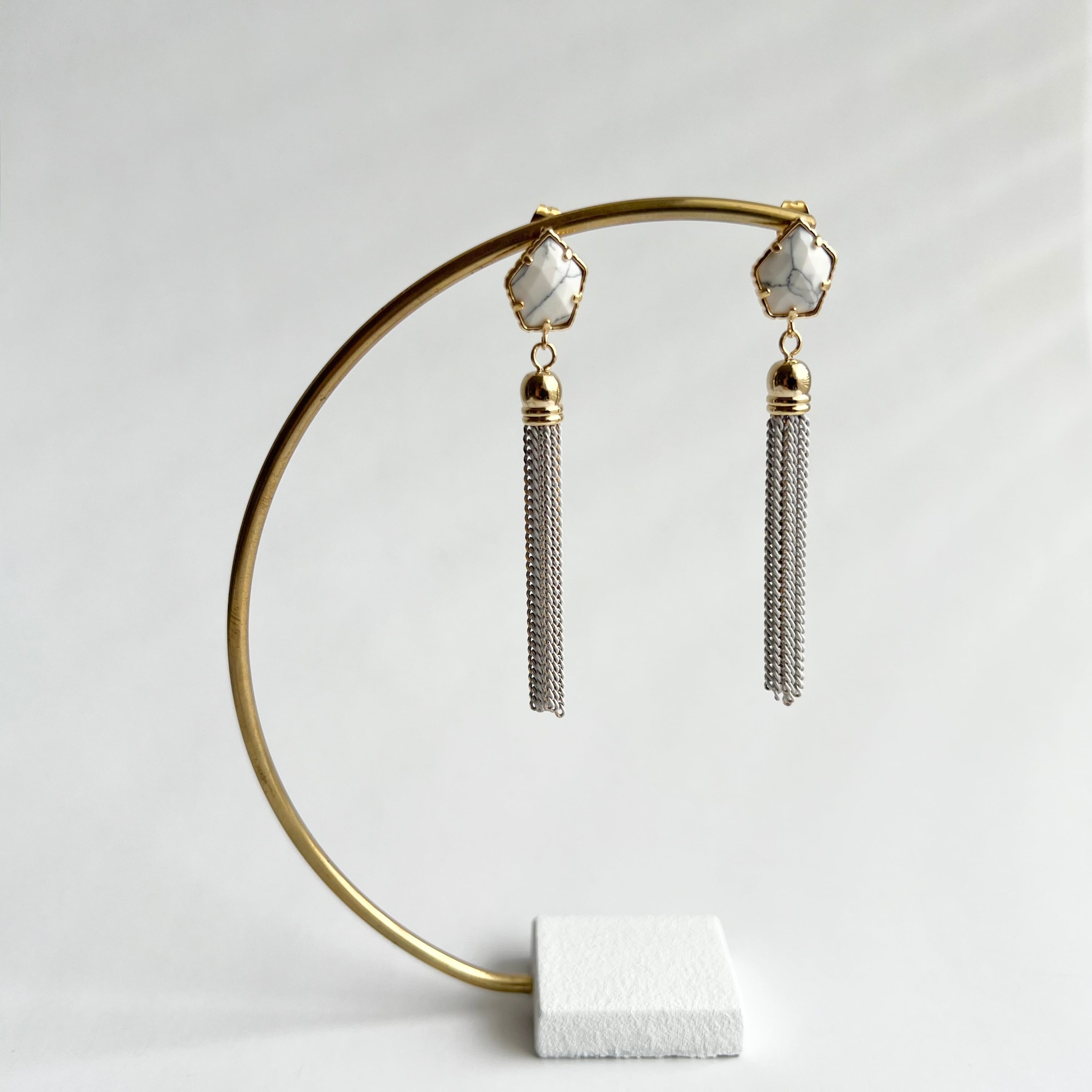 ホワイトのチェーンタッセルがしゃらりと揺れる。