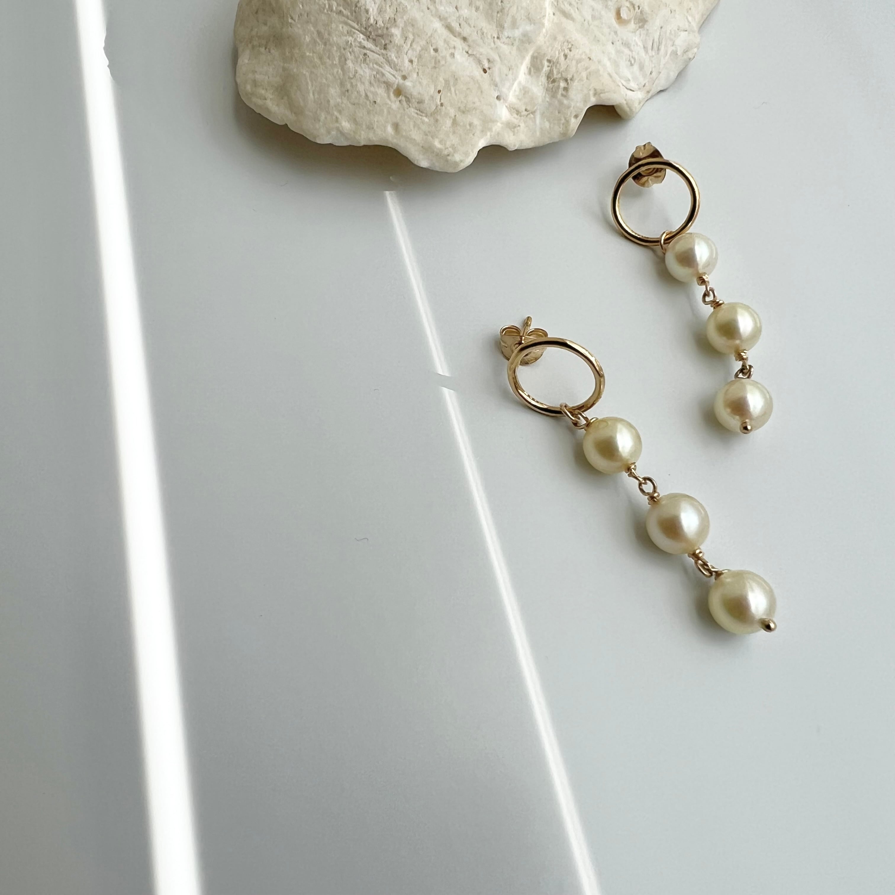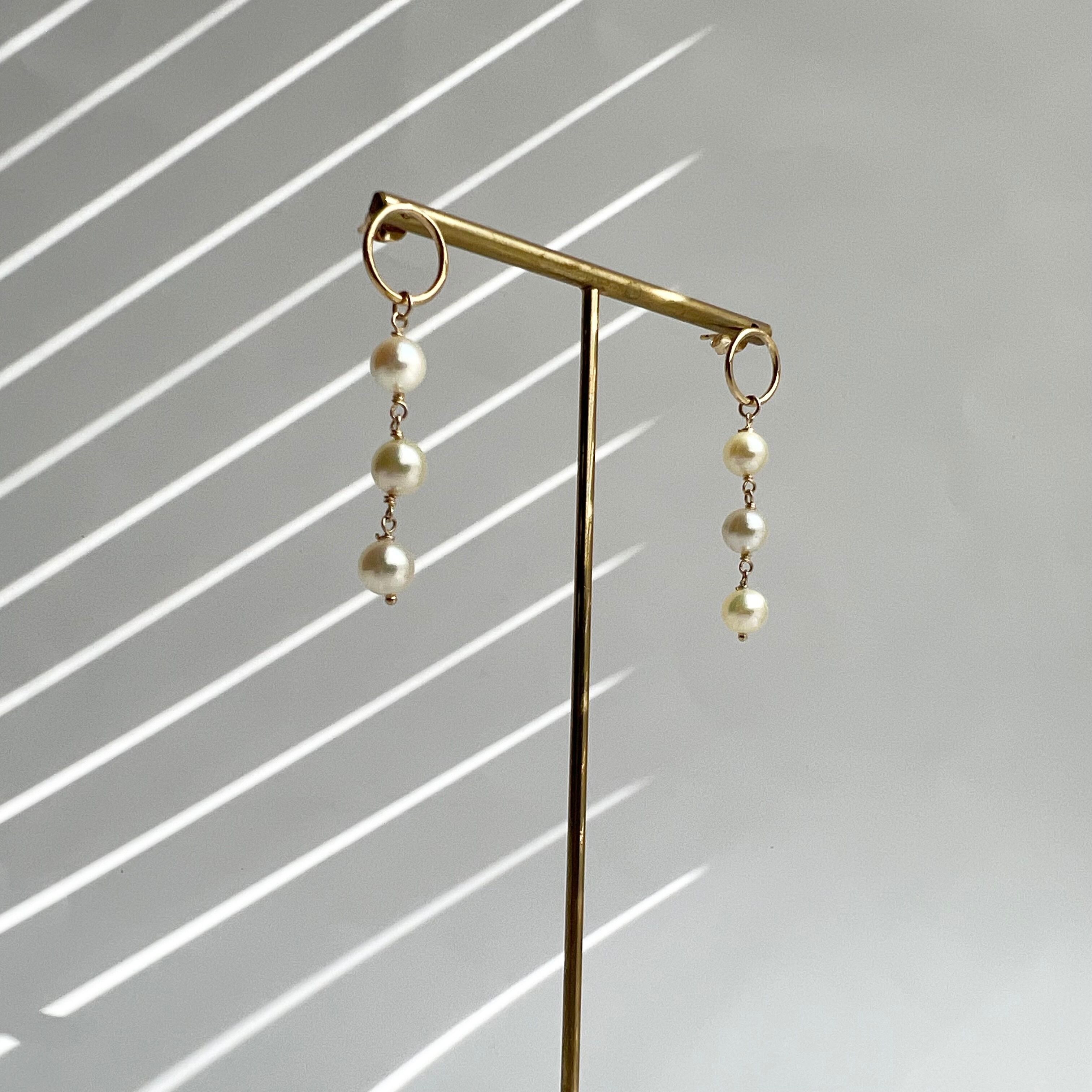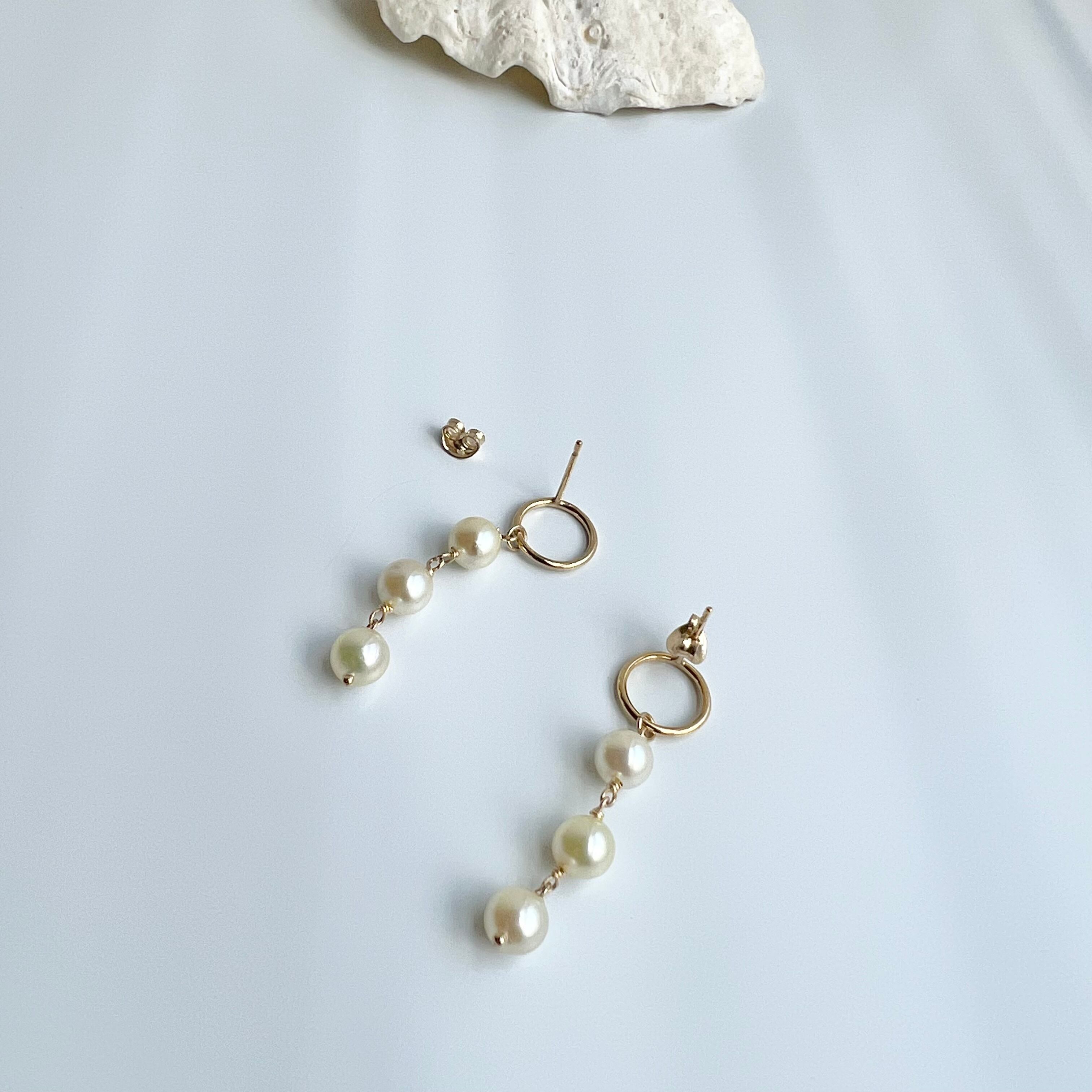 【URURU】Three Akoya Pearl 14KGF Circle Pierce / 3粒あこや真珠