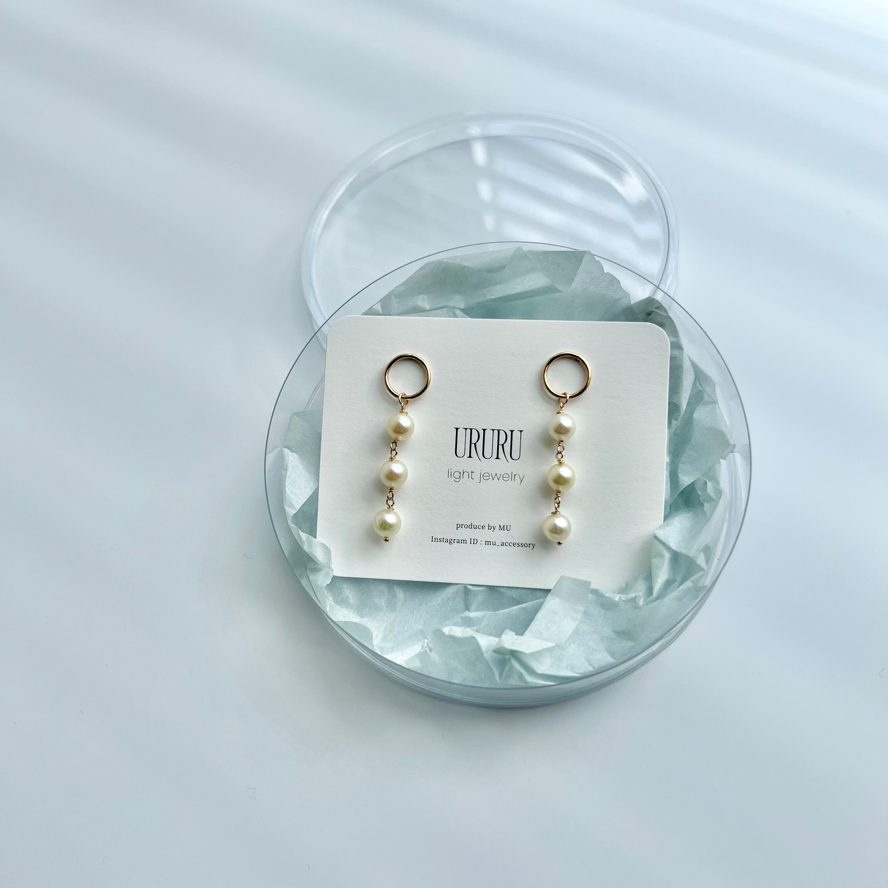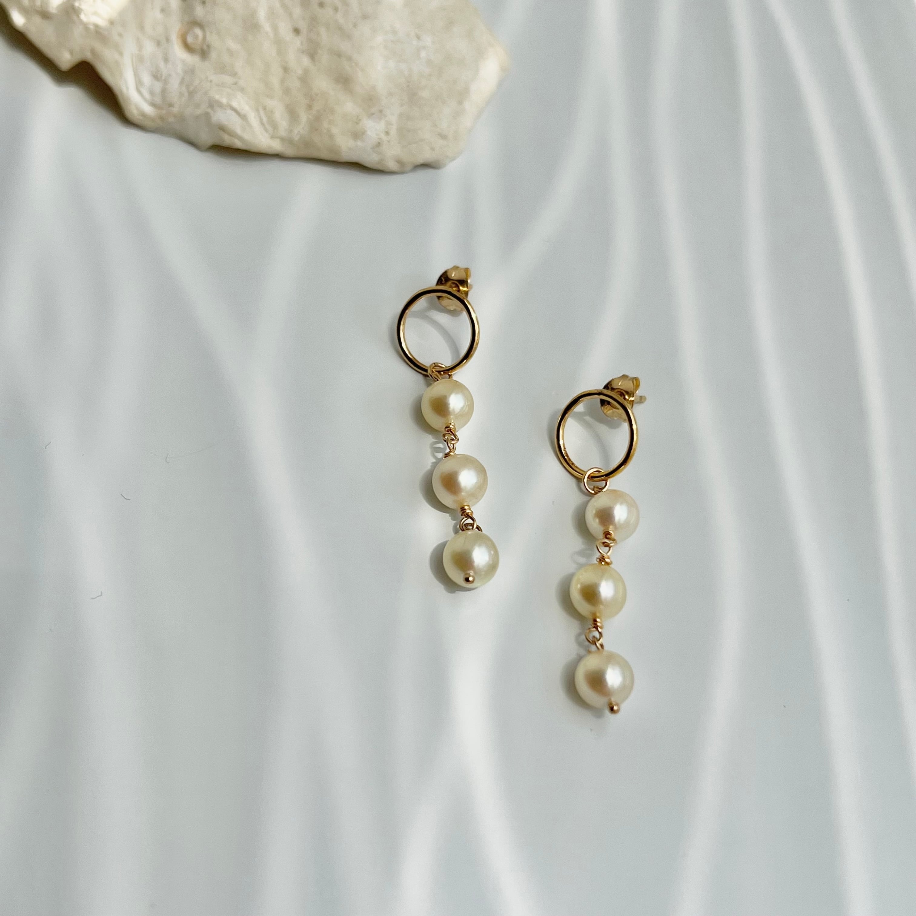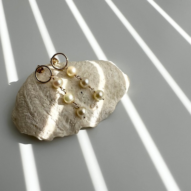 【URURU】Three Akoya Pearl 14KGF Circle Pierce / 3粒あこや真珠