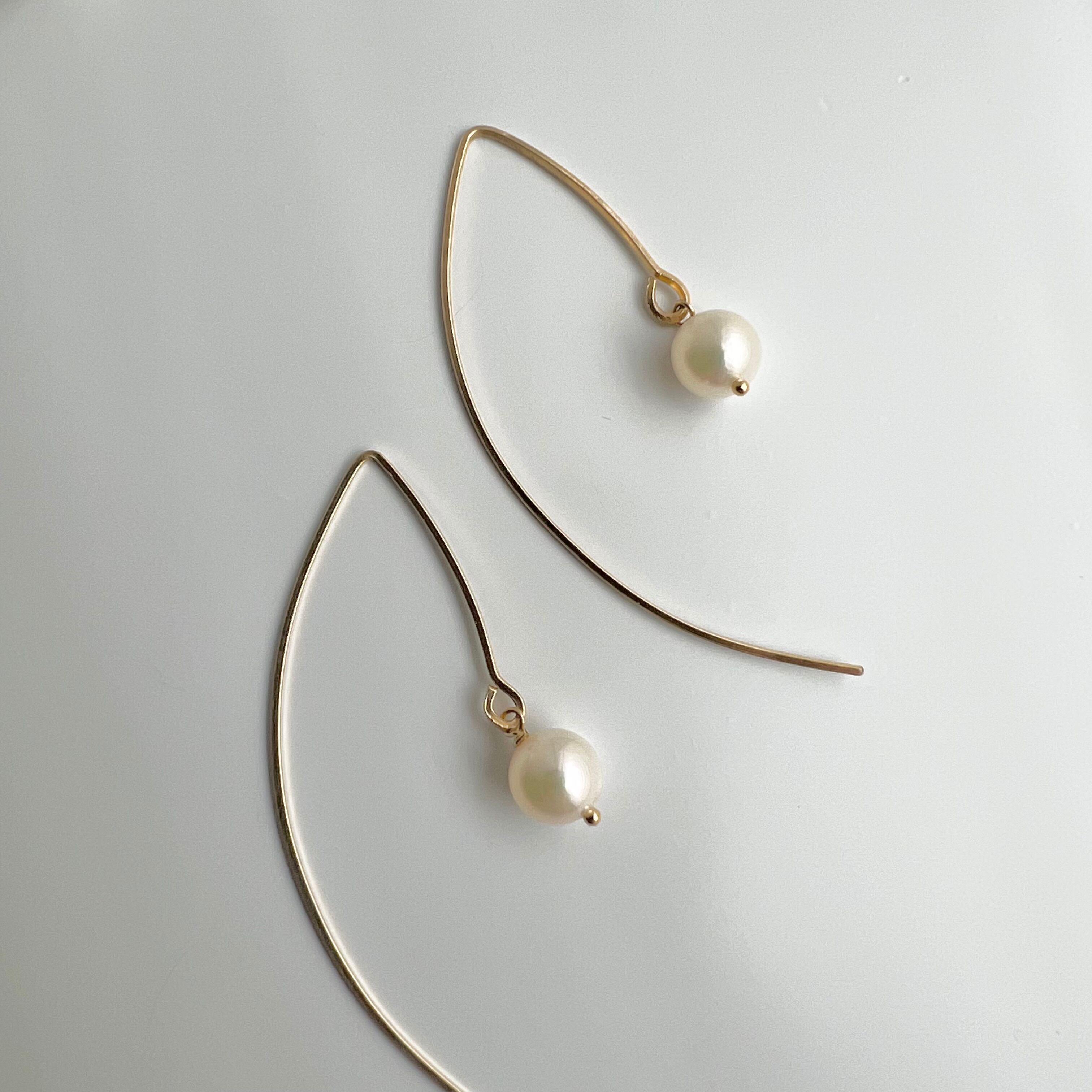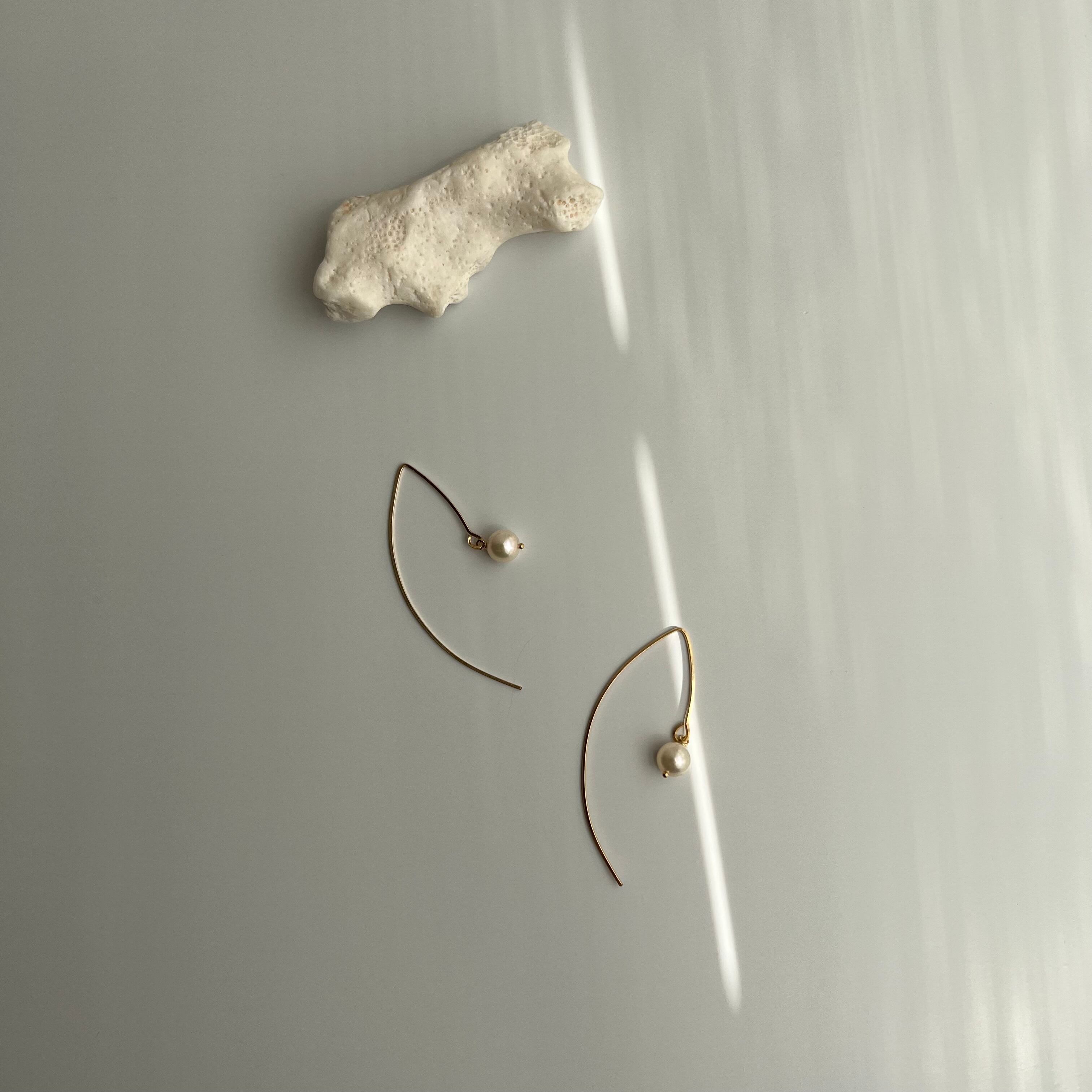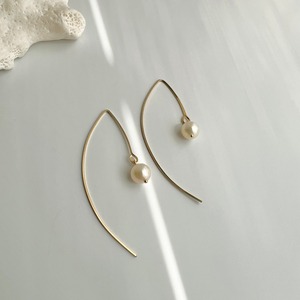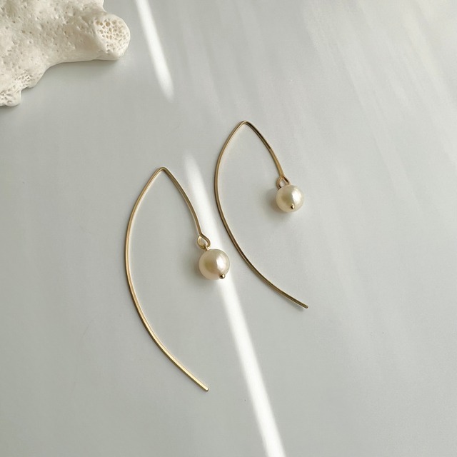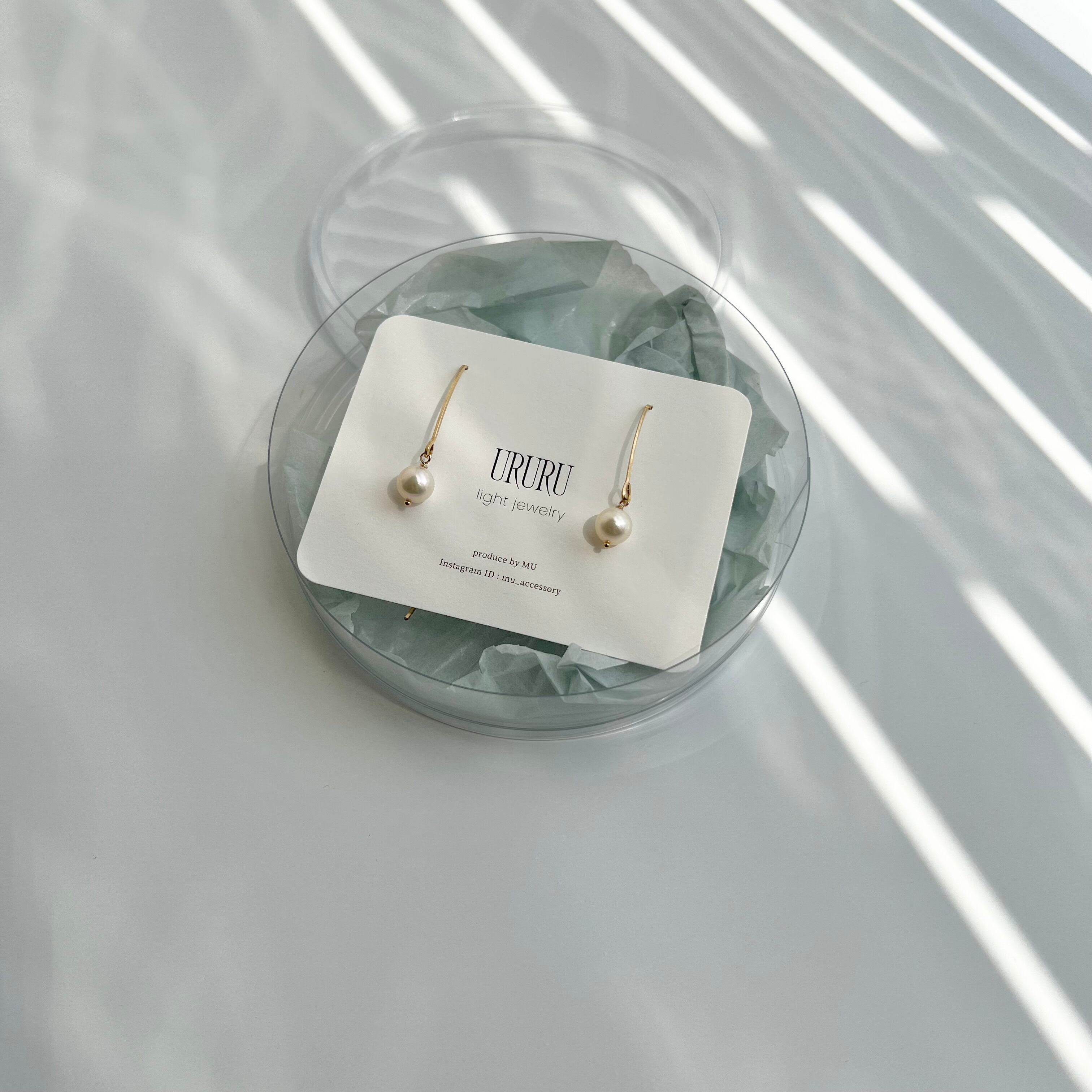 【URURU】Akoya Pearl 14KGF Square Wire Pierce / あこや真珠スクエアフック