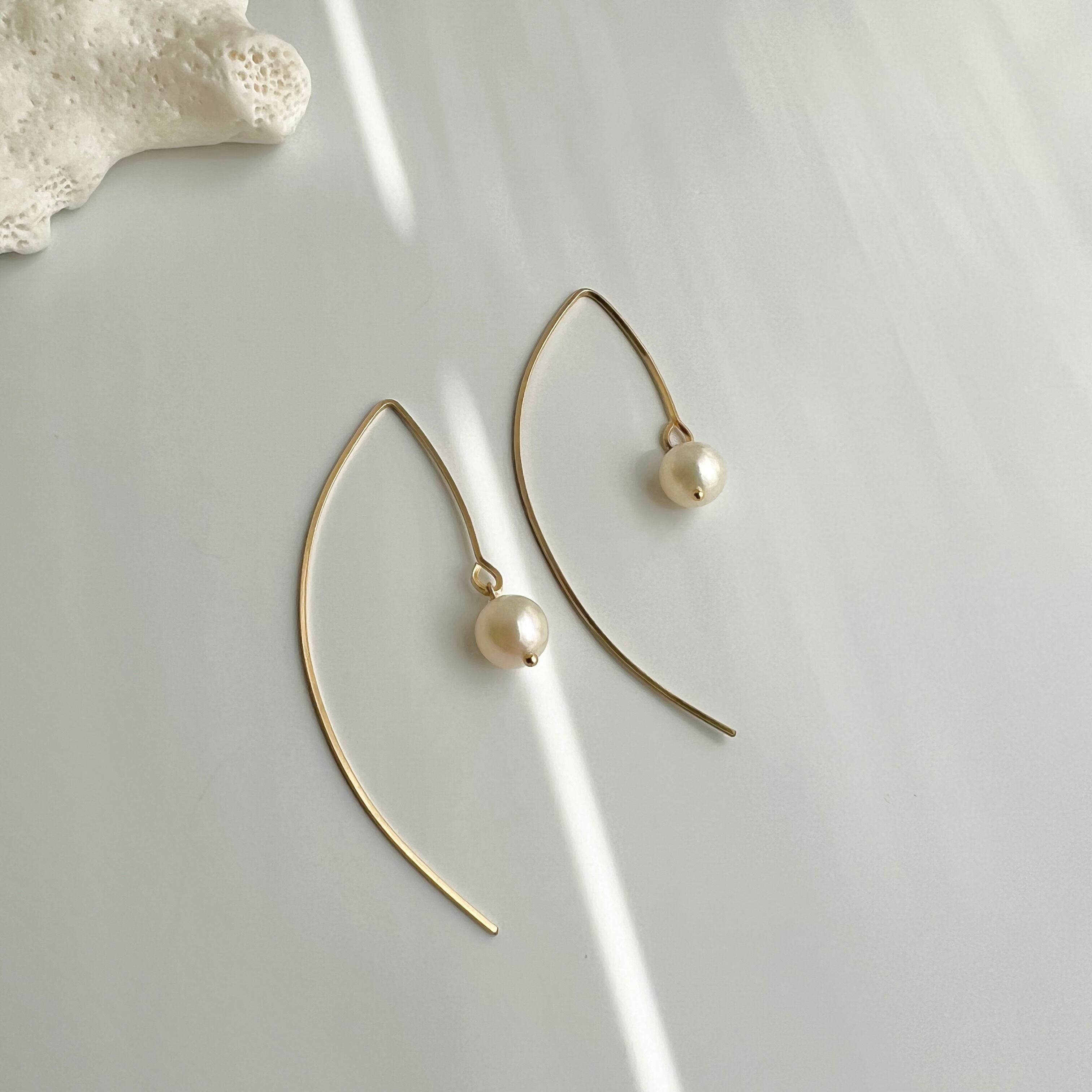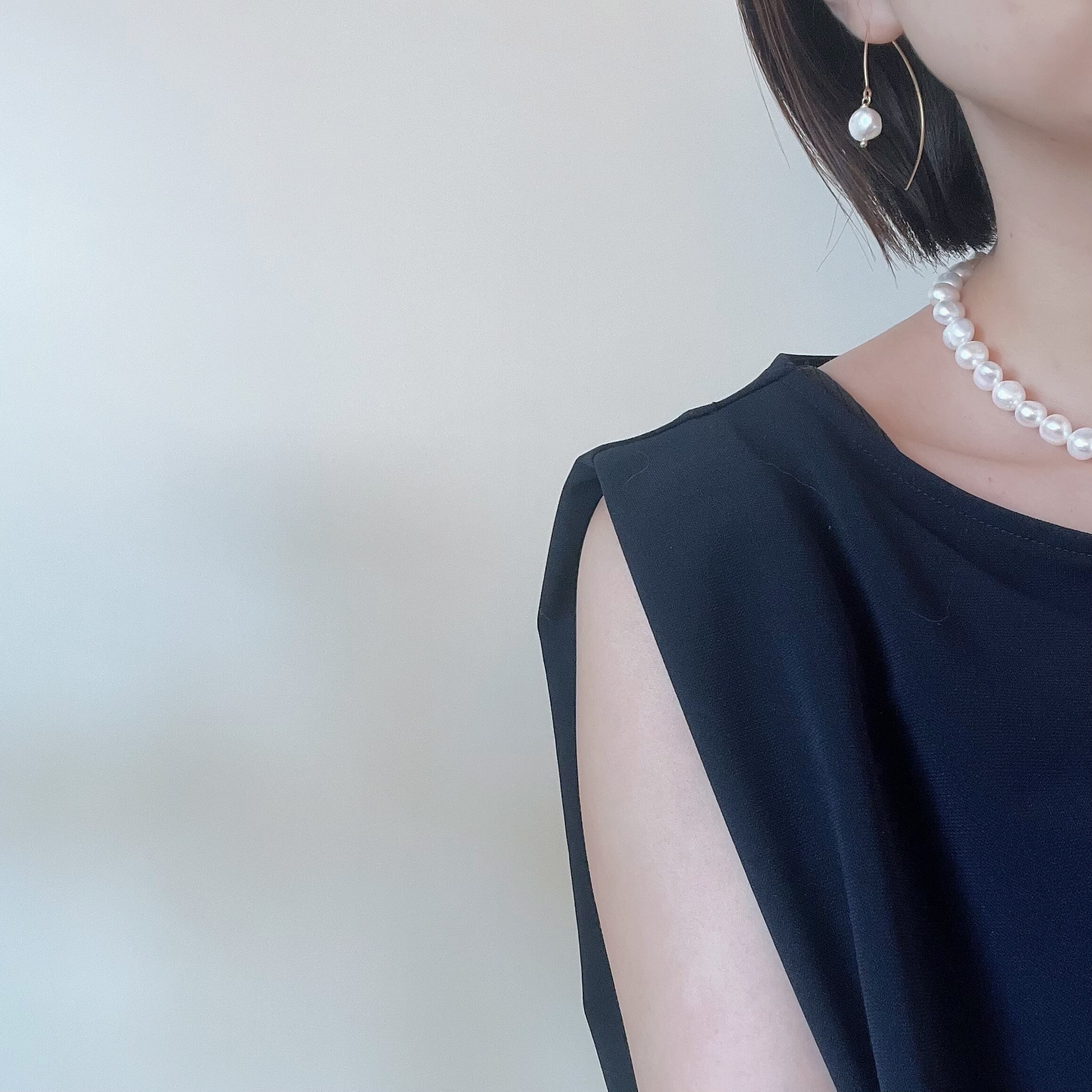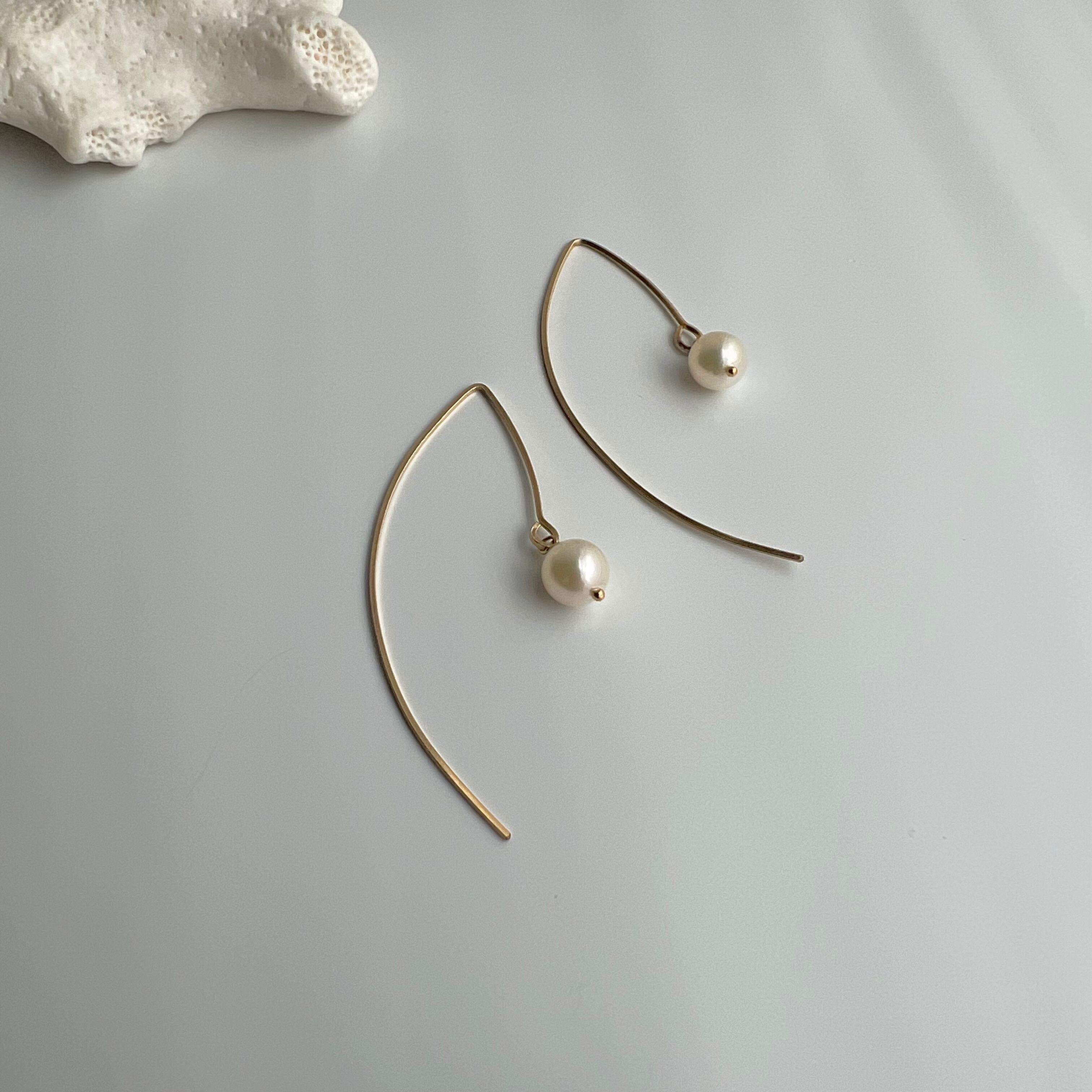 【URURU】Akoya Pearl 14KGF Square Wire Pierce / あこや真珠スクエアフック