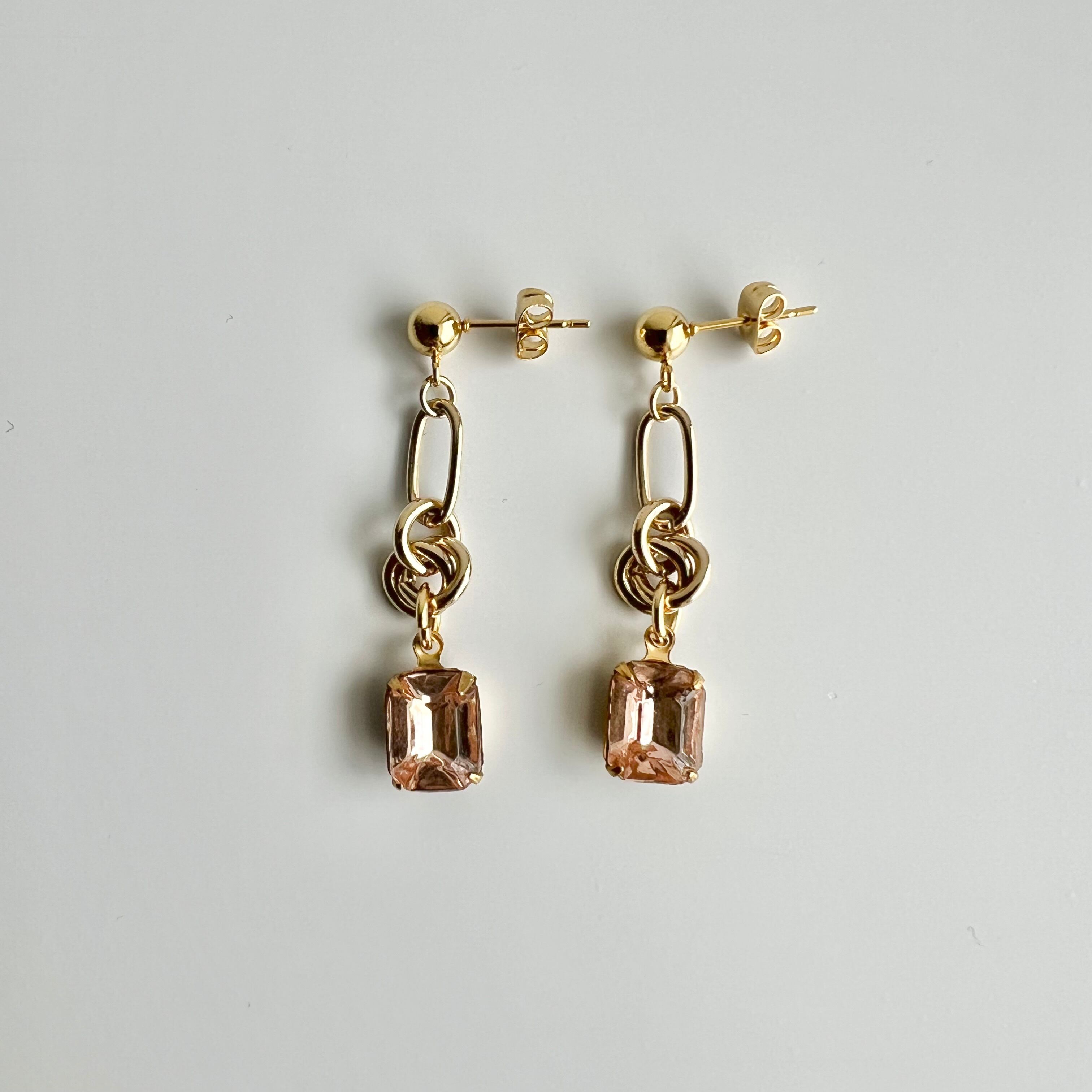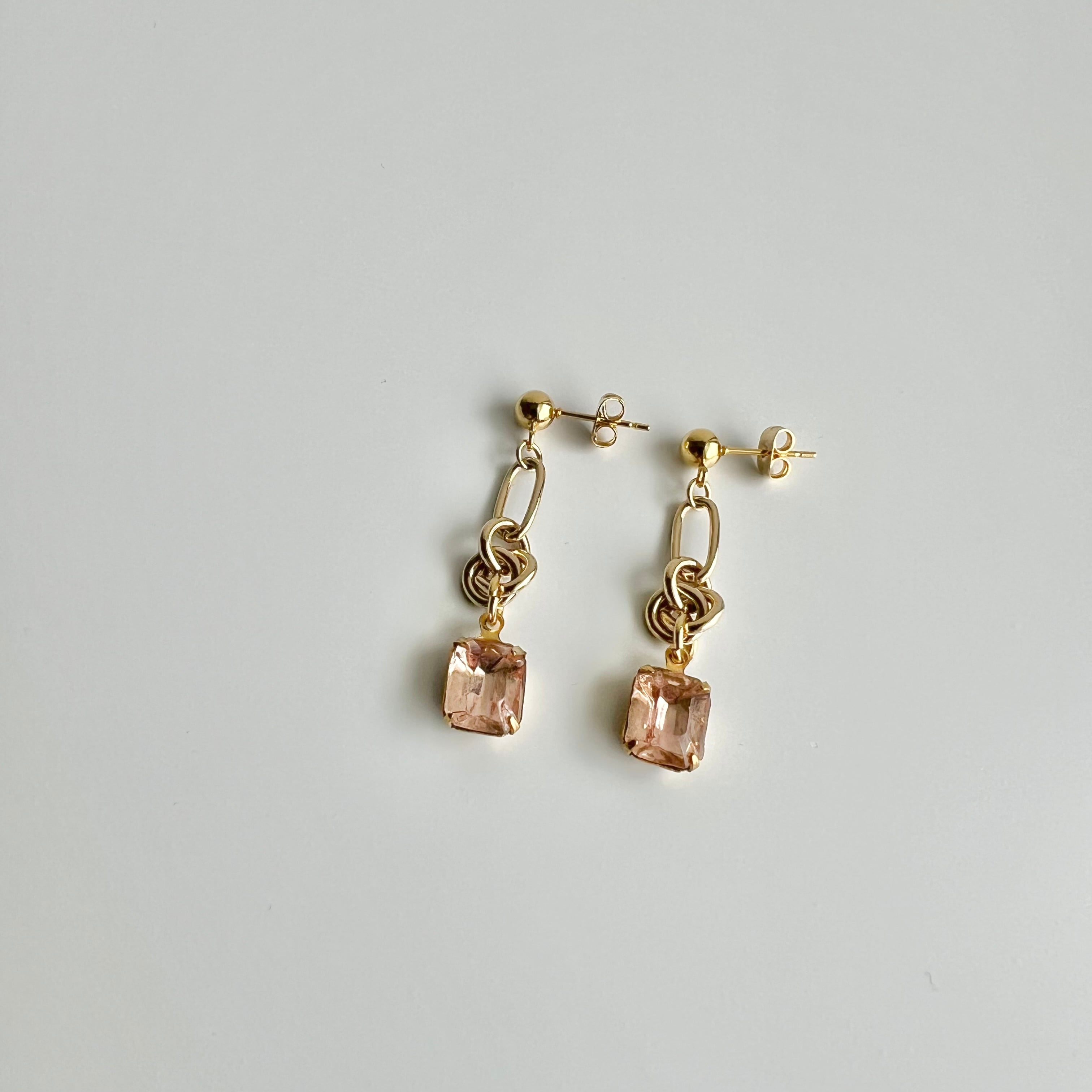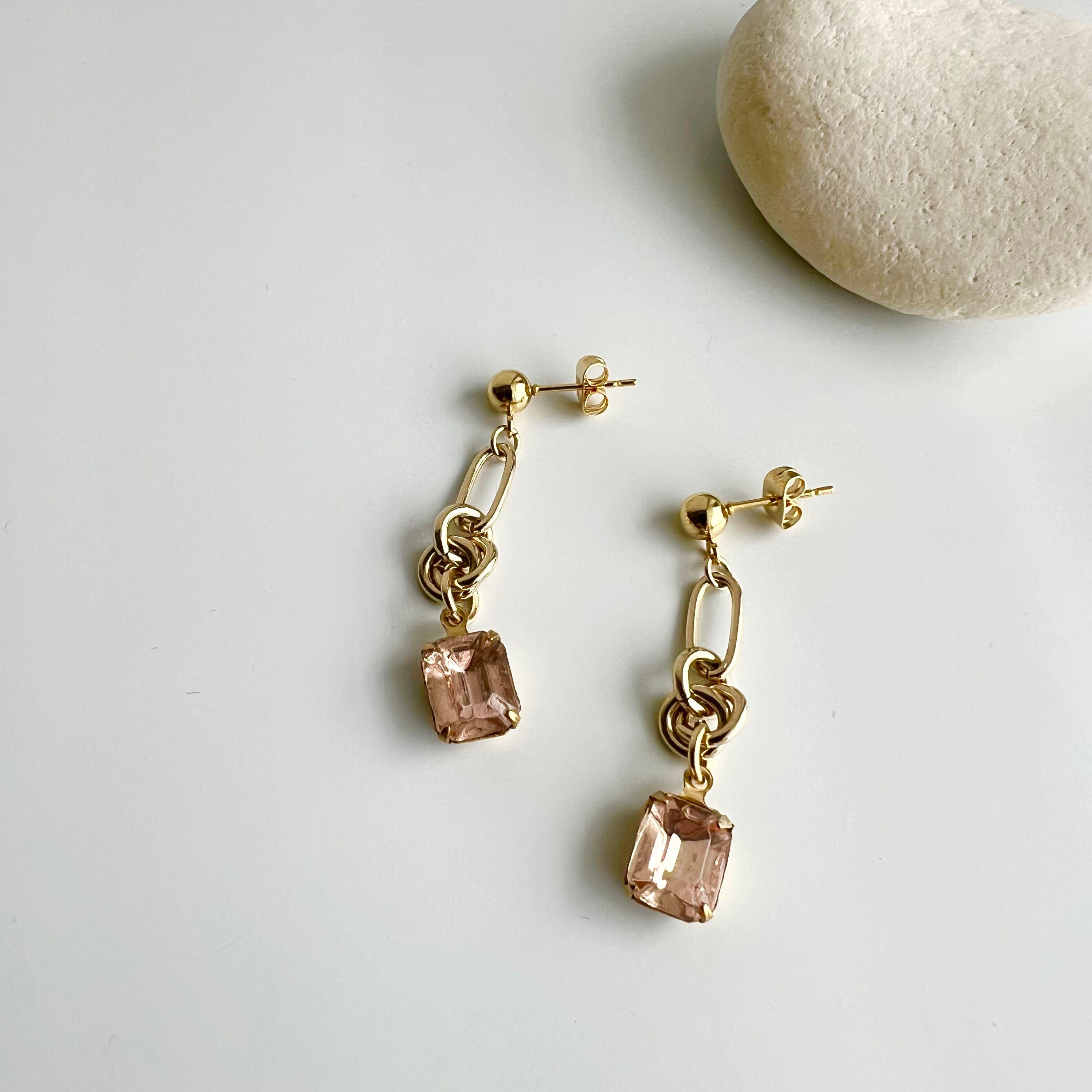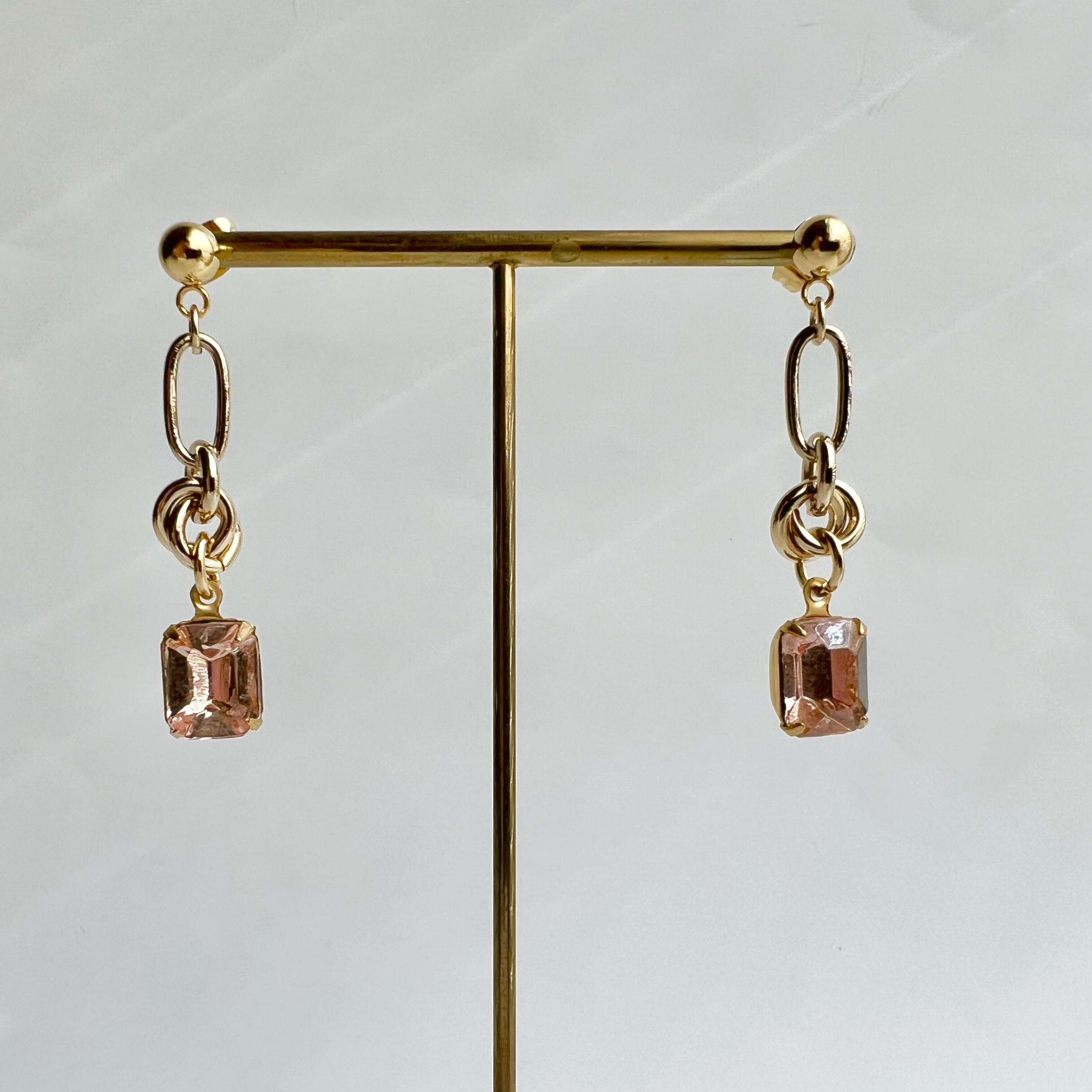 〈ピンク〉ヴィンテージデザインチェーンピアス・イヤリング