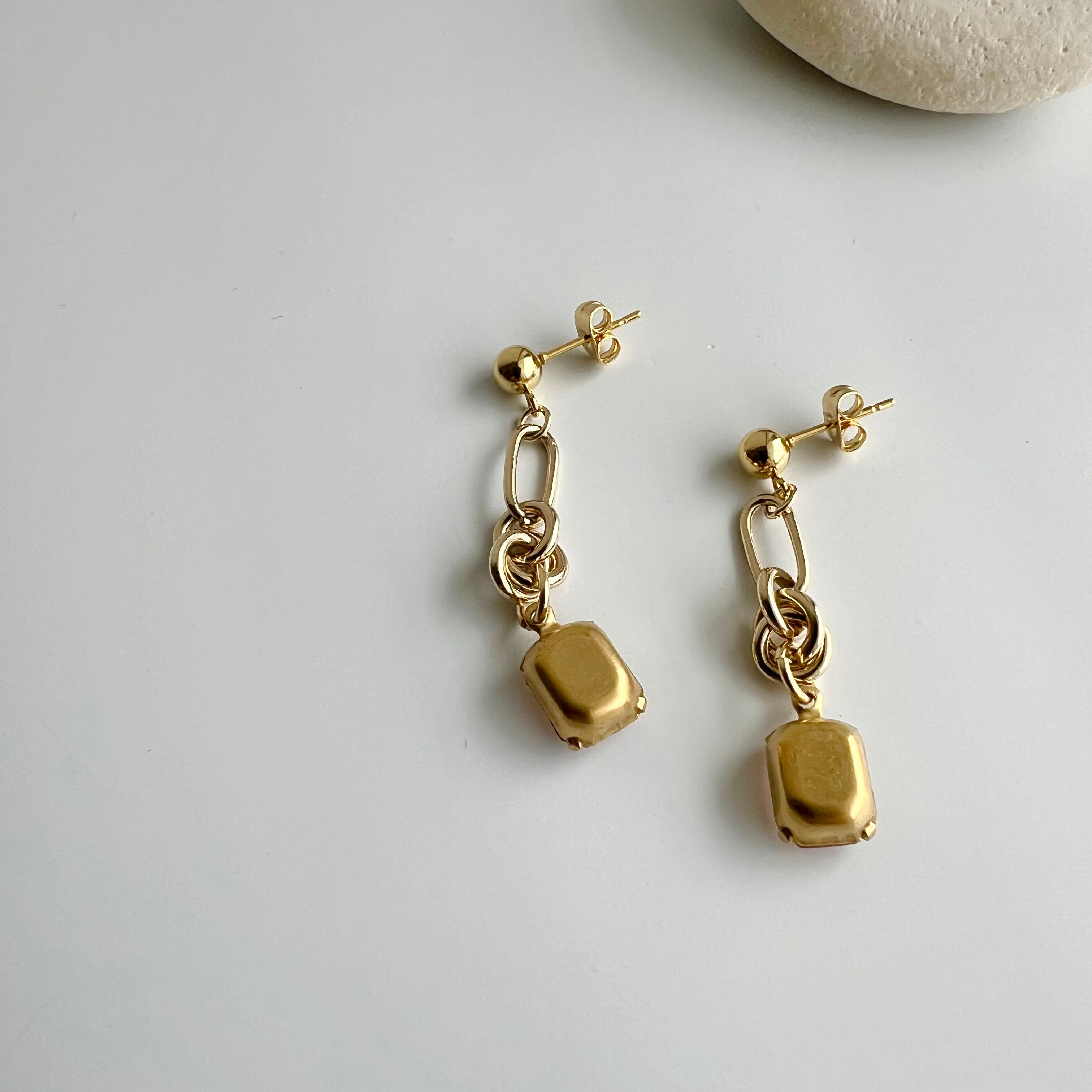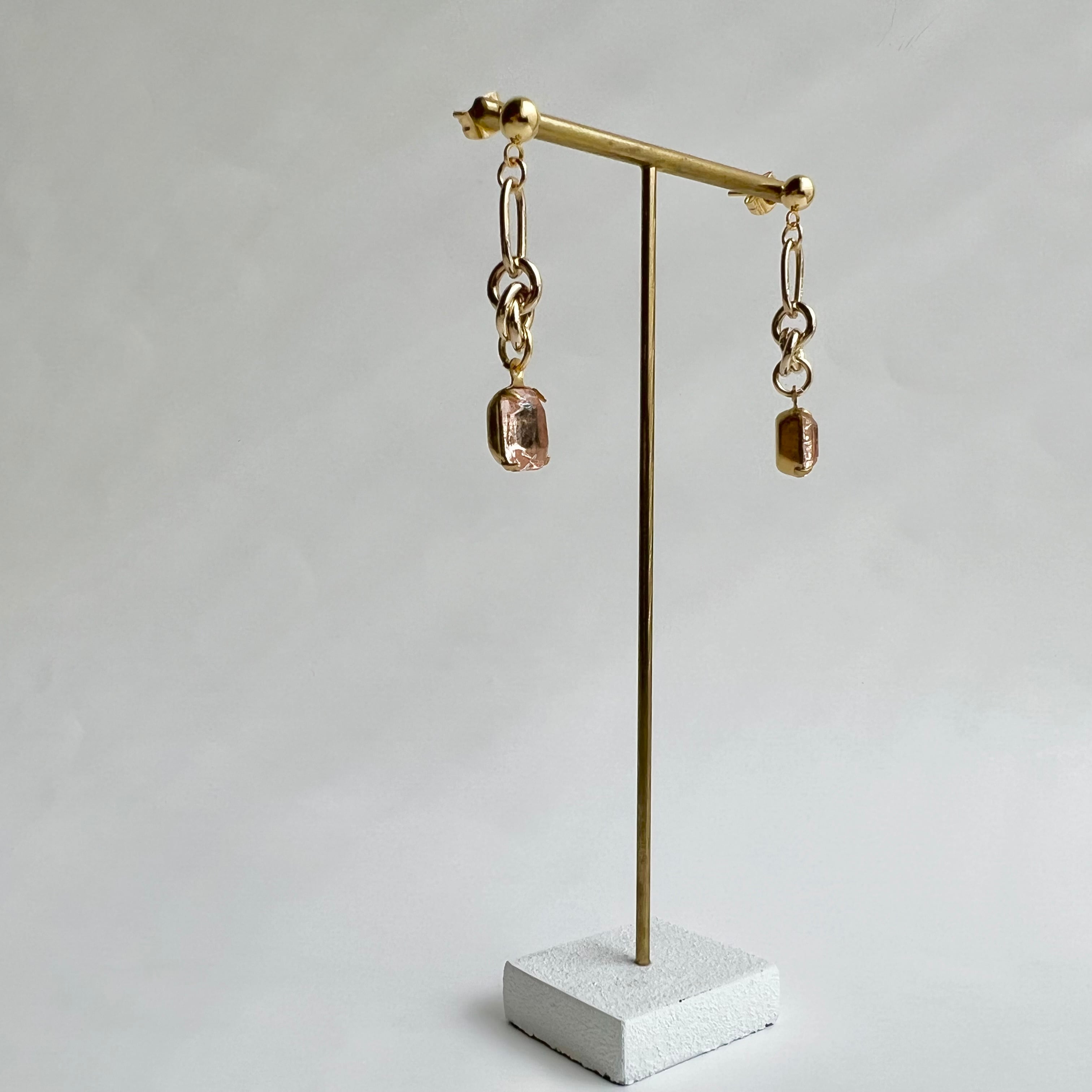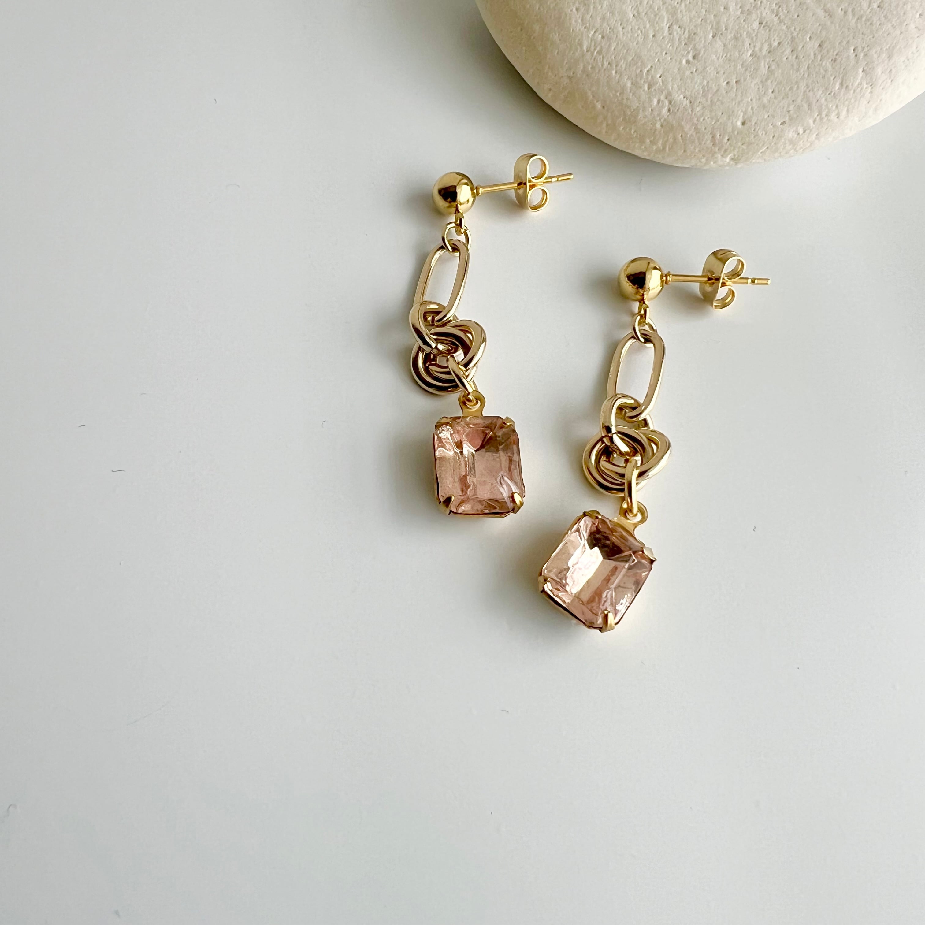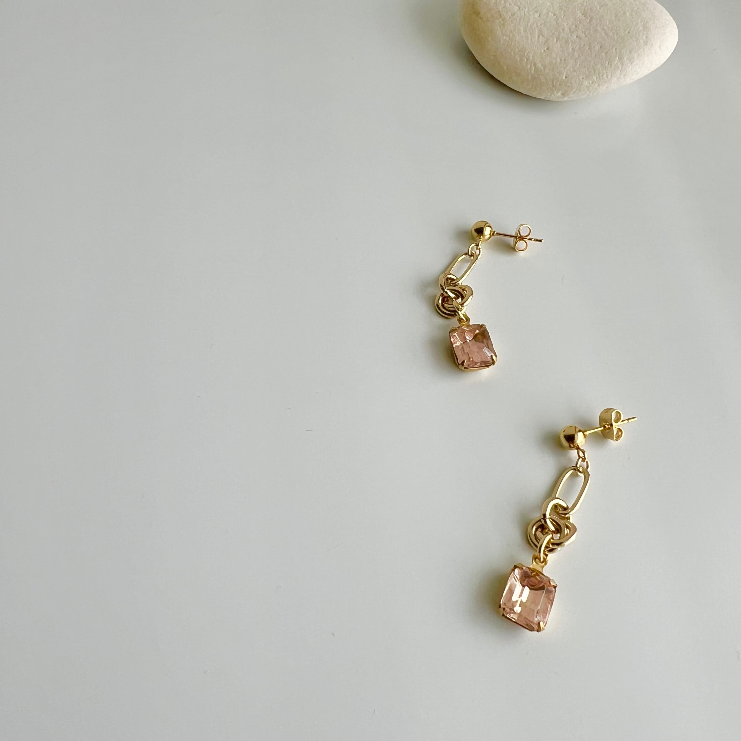 〈ピンク〉ヴィンテージデザインチェーンピアス・イヤリング