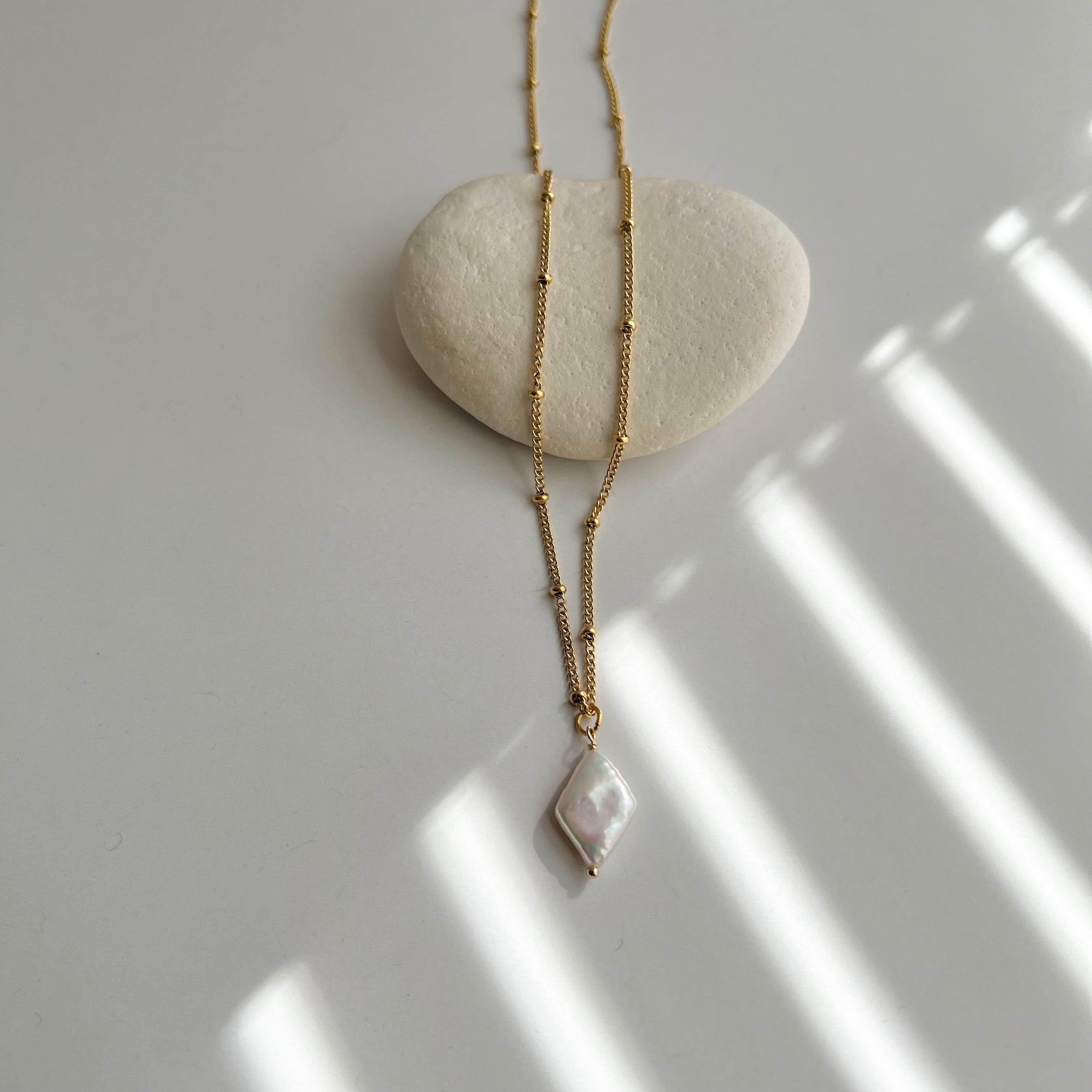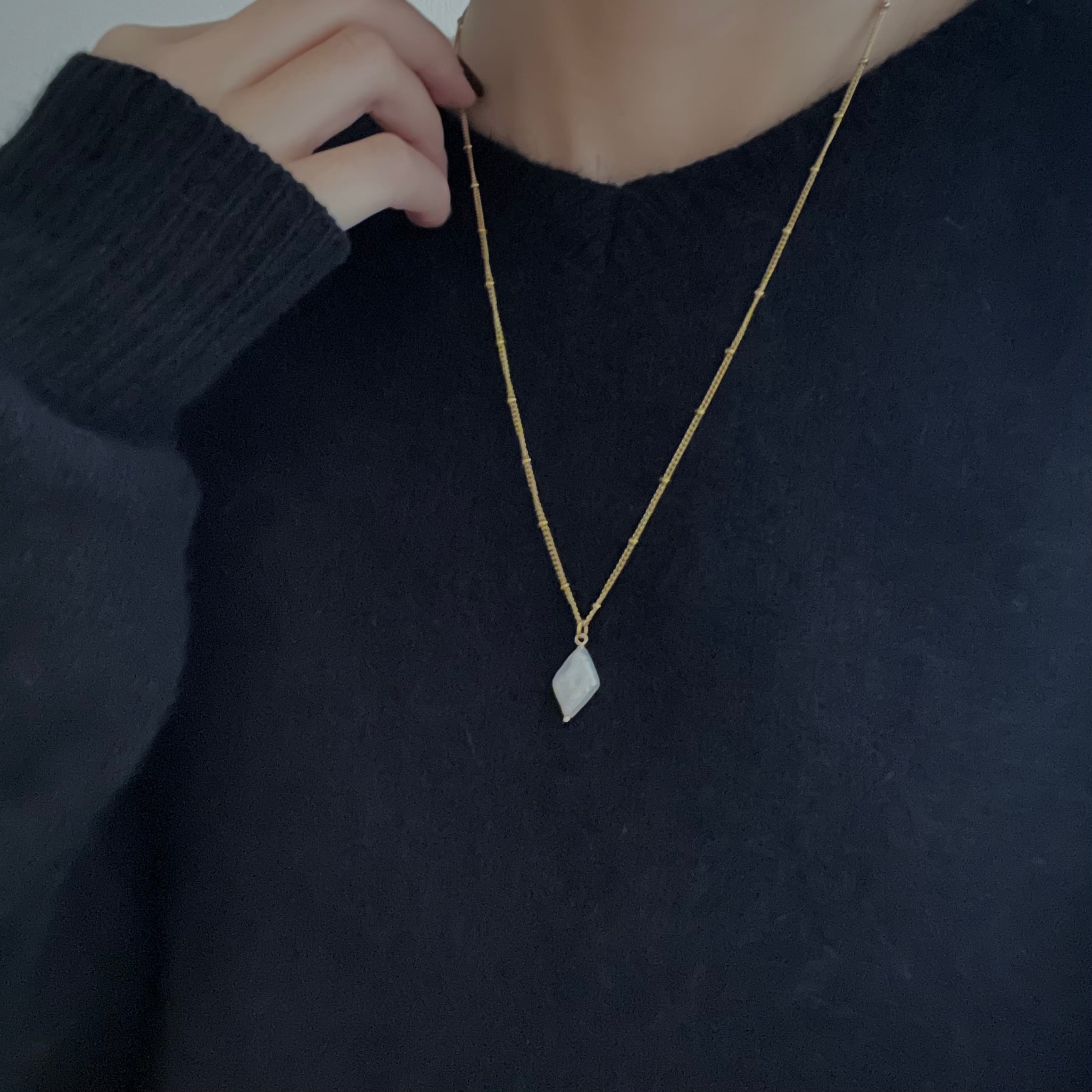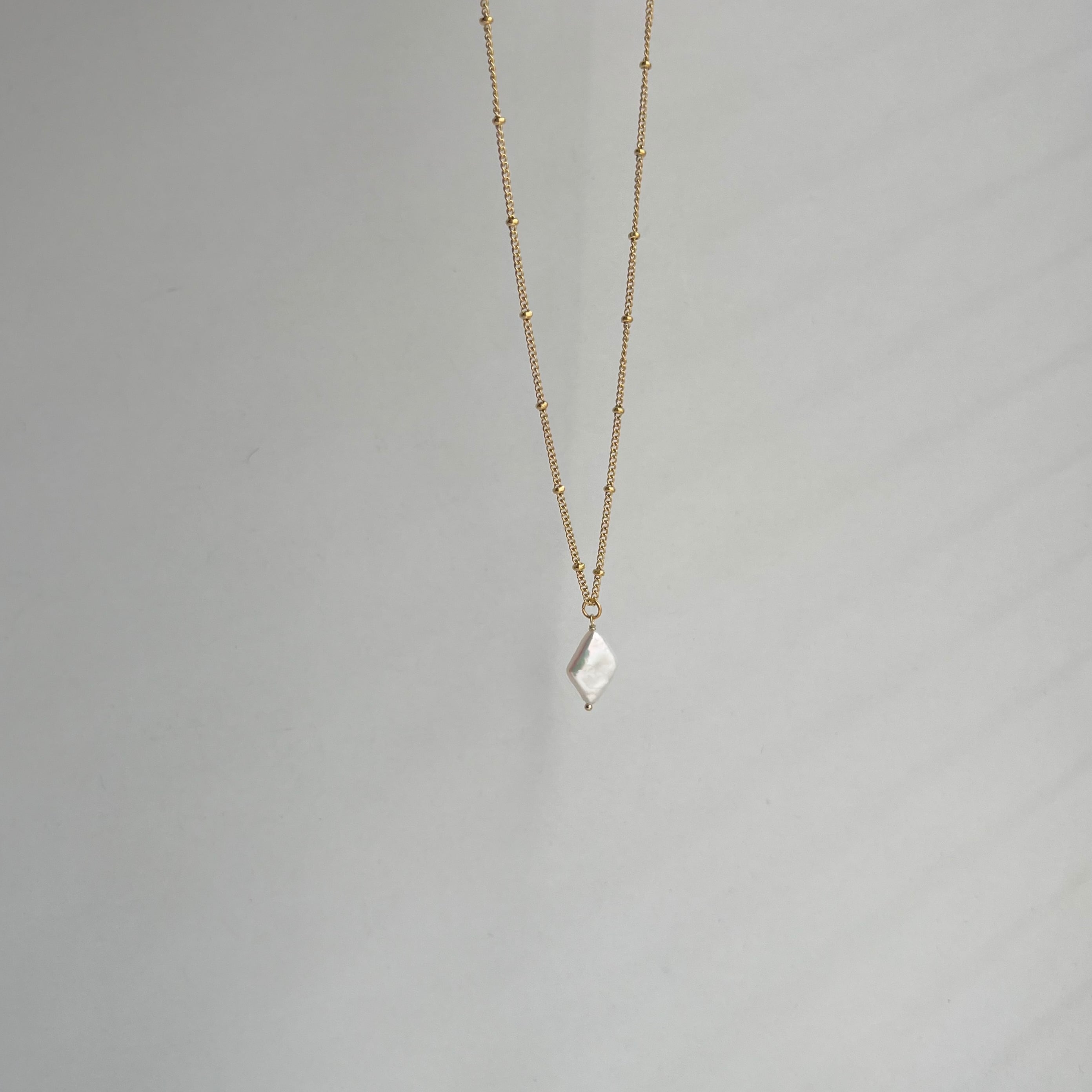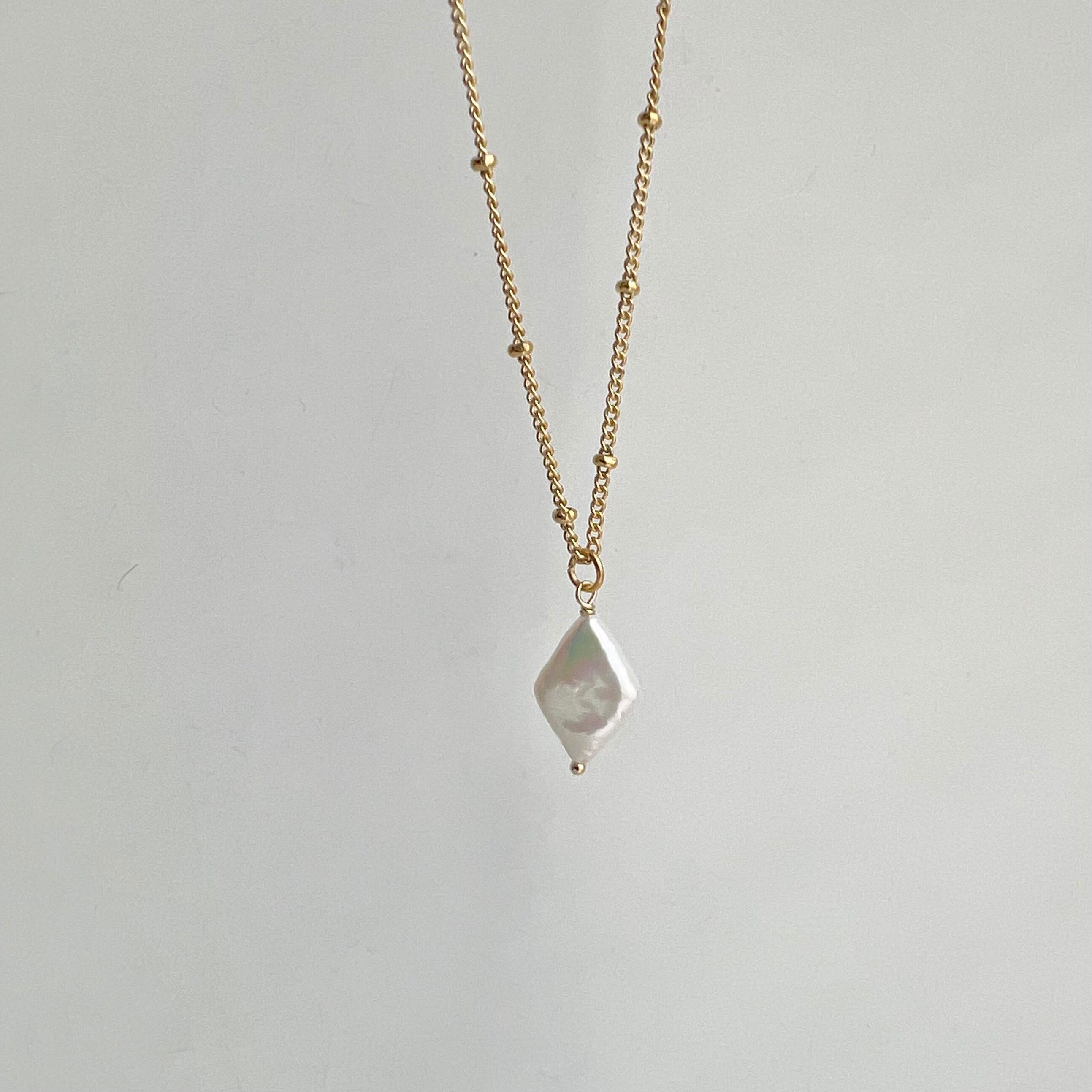 ダイヤ淡水パール×ステーションチェーンネックレス