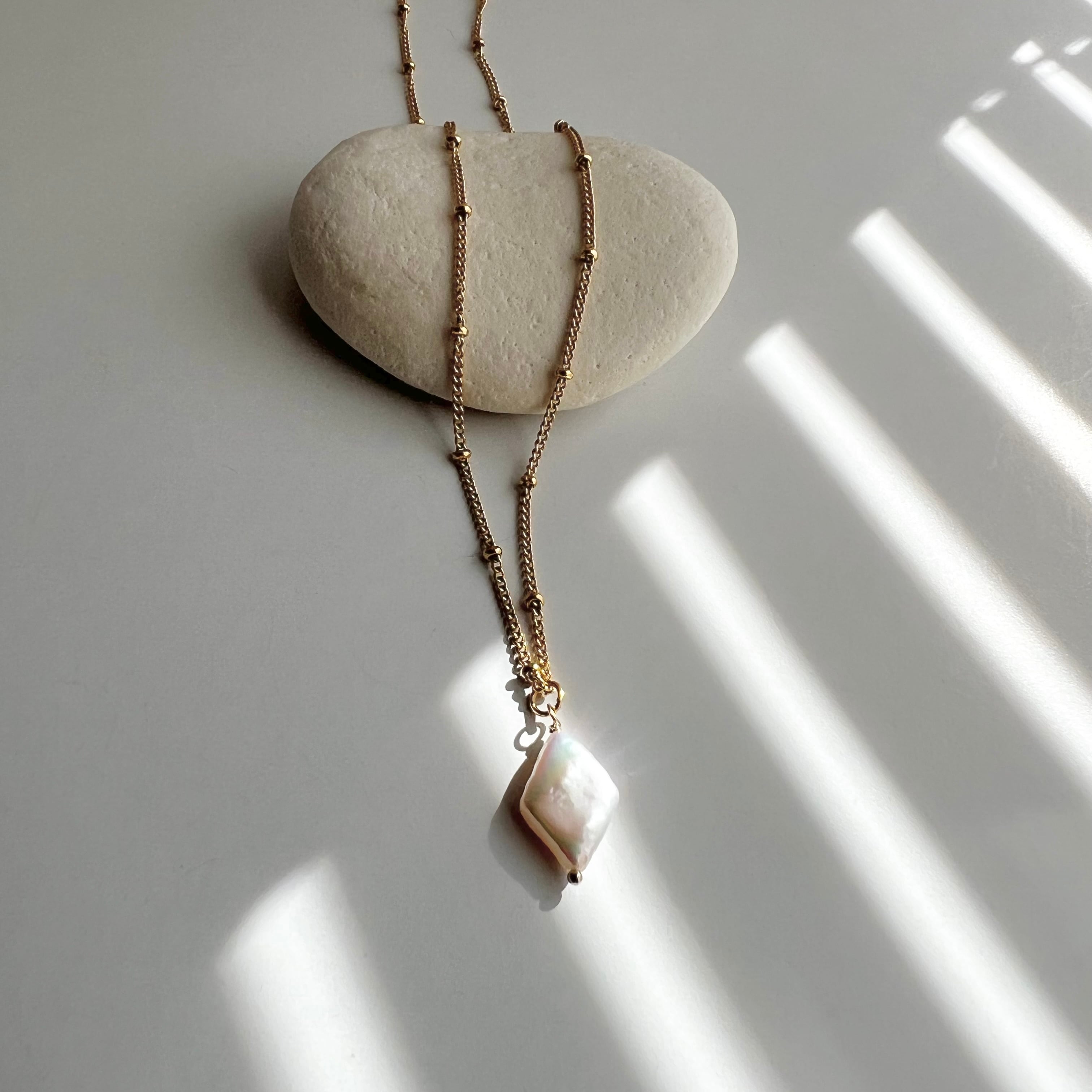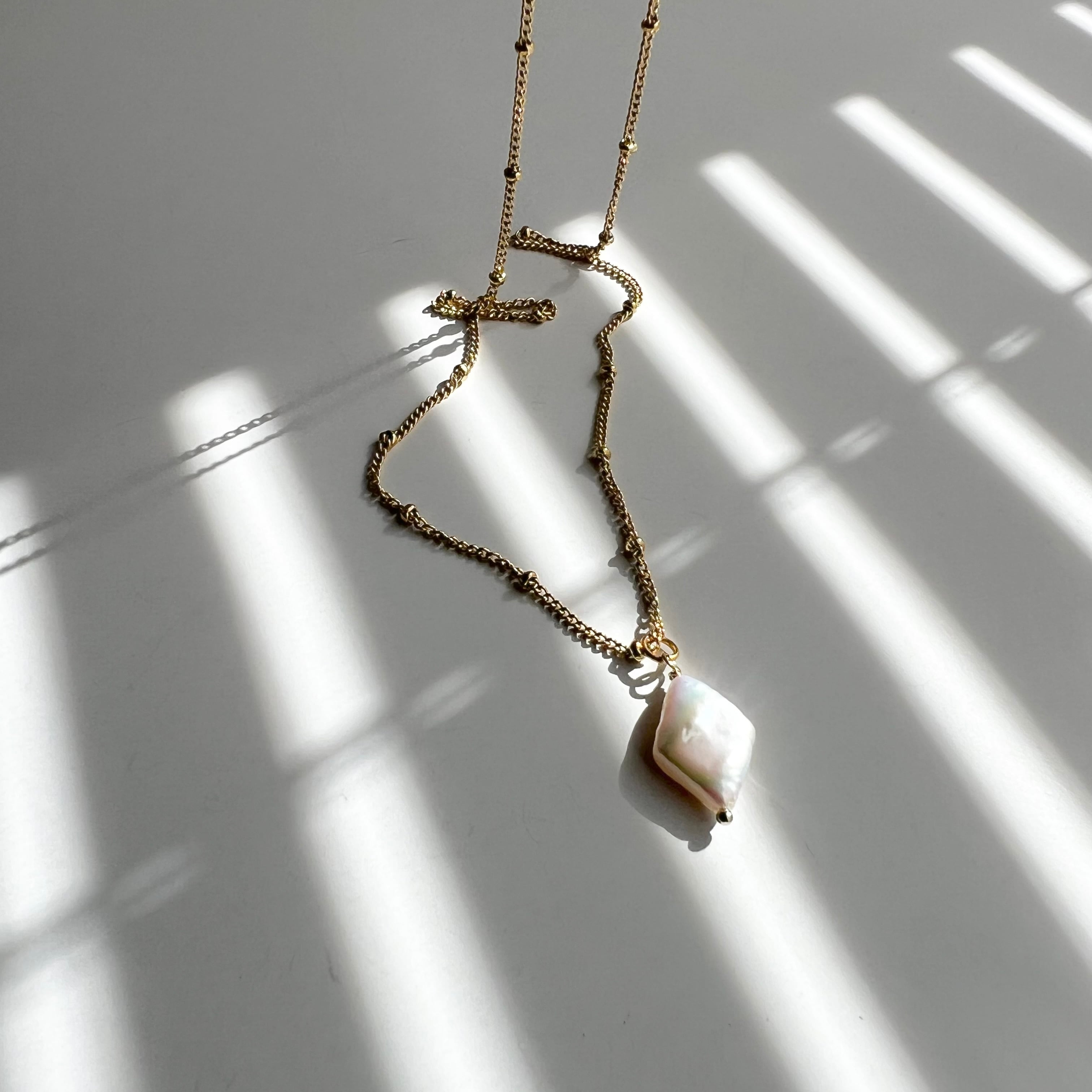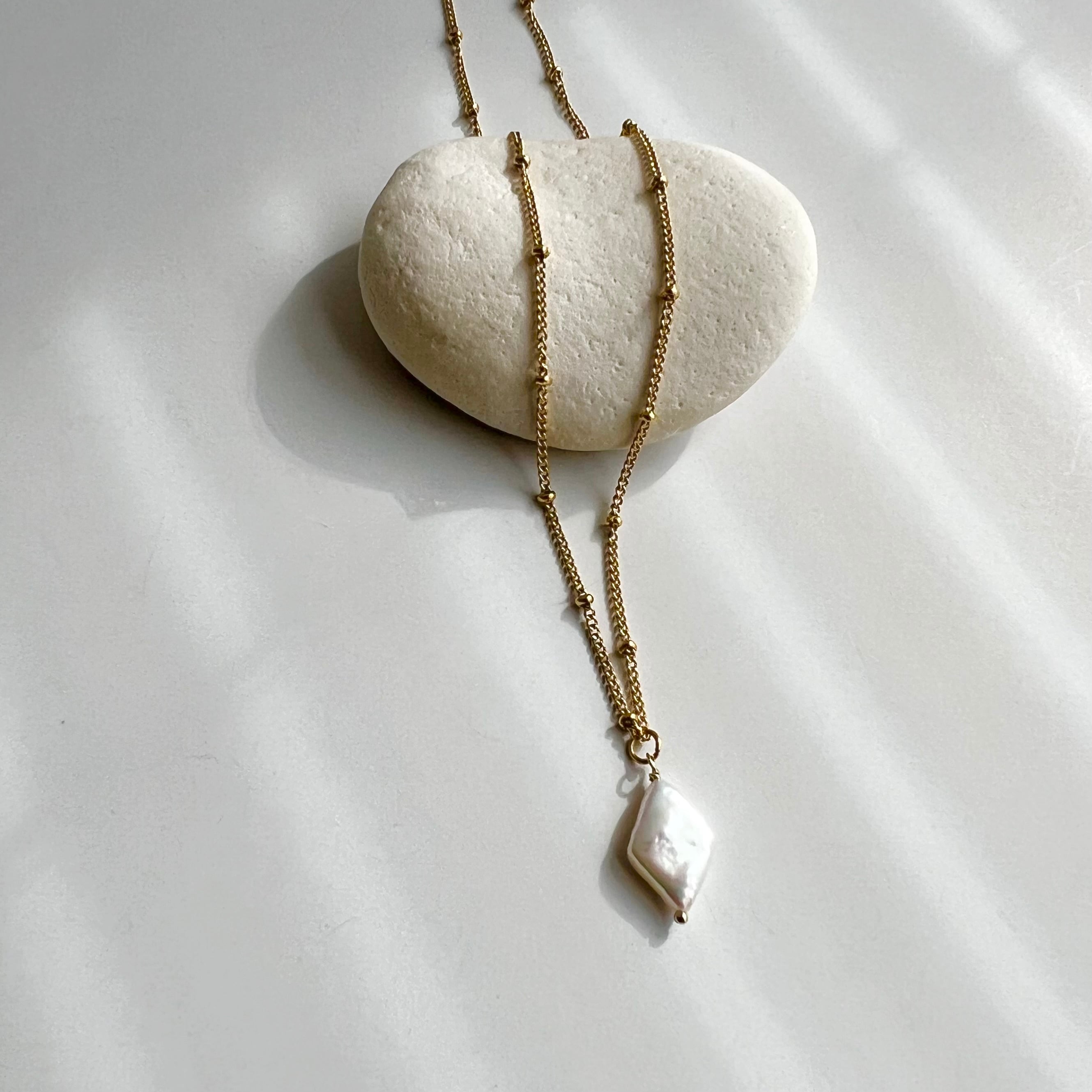 ダイヤ淡水パール×ステーションチェーンネックレス