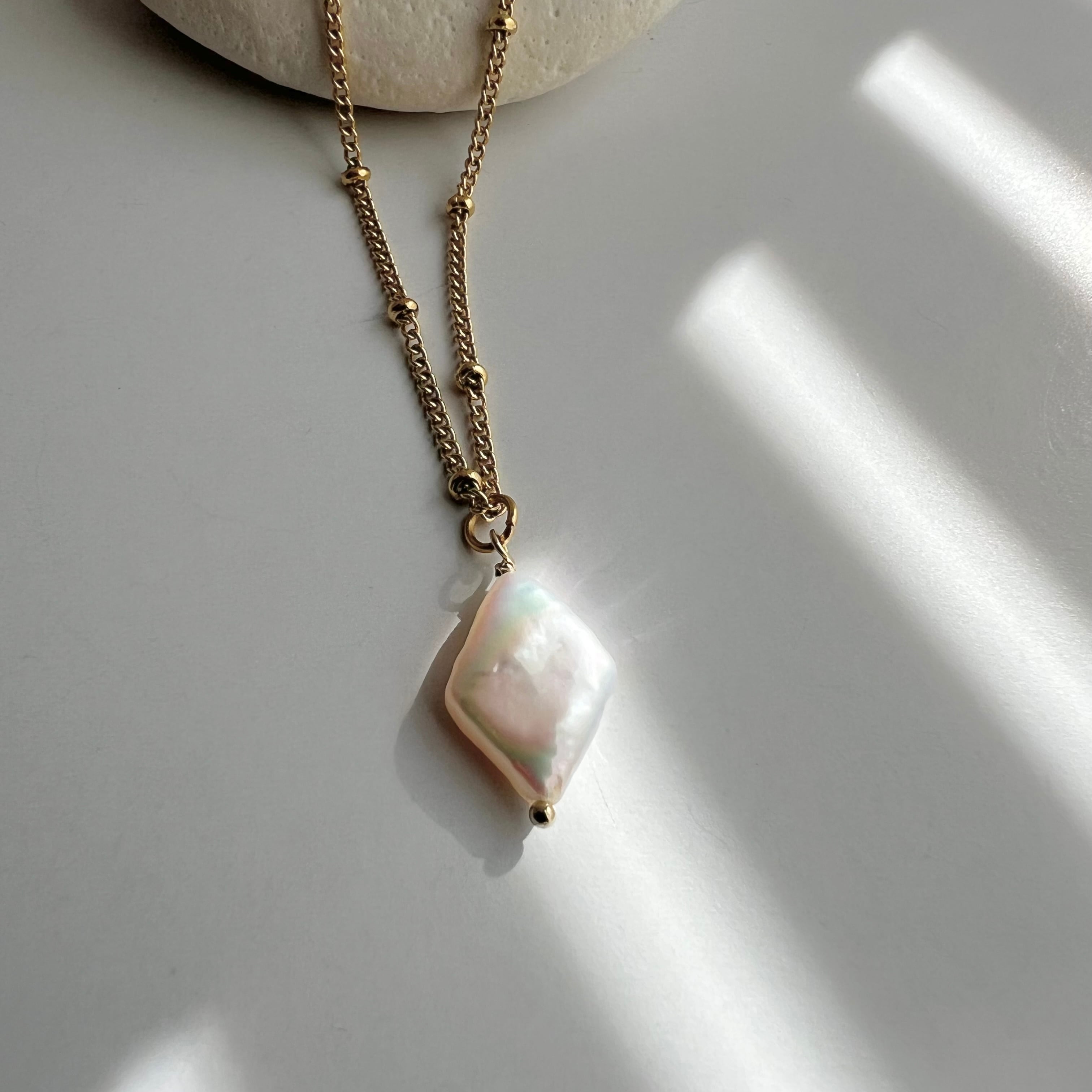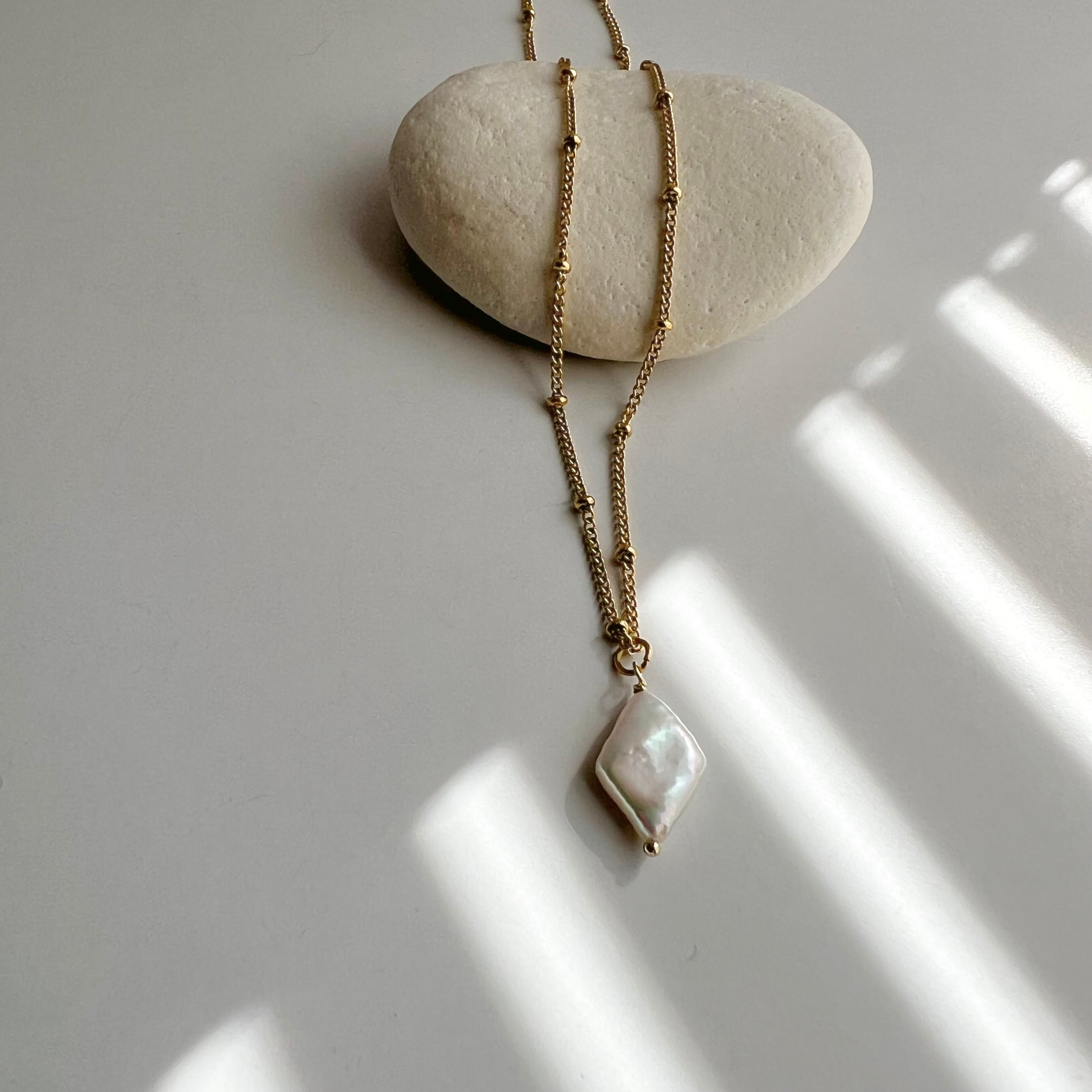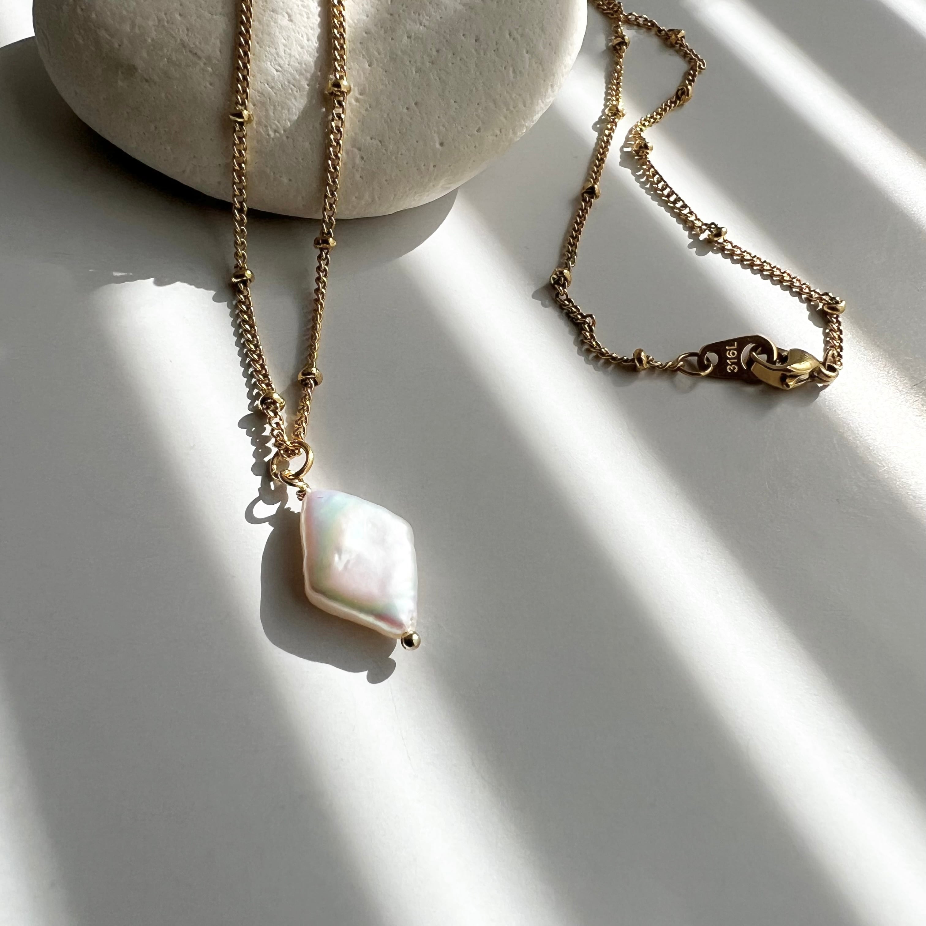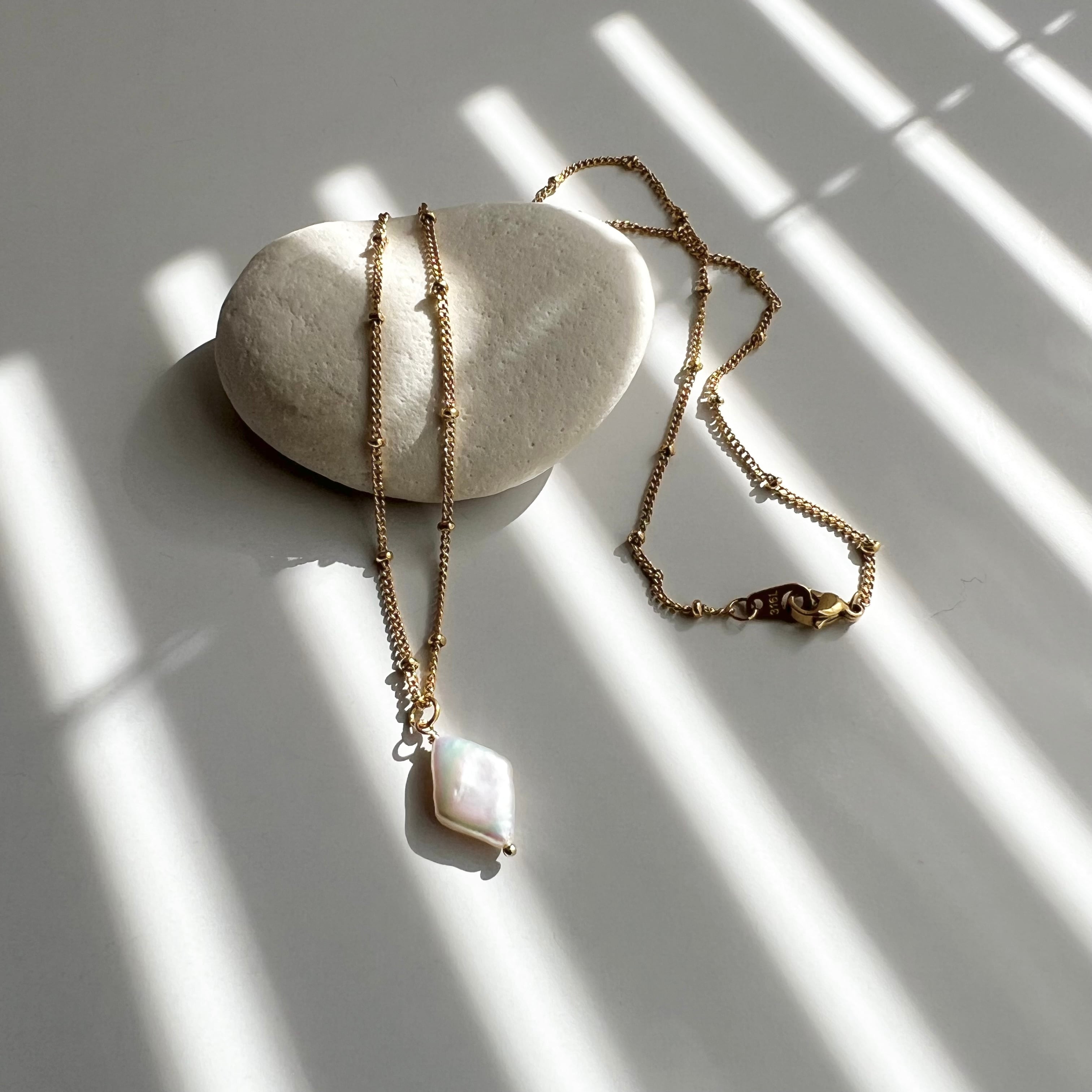 ダイヤ淡水パール×ステーションチェーンネックレス