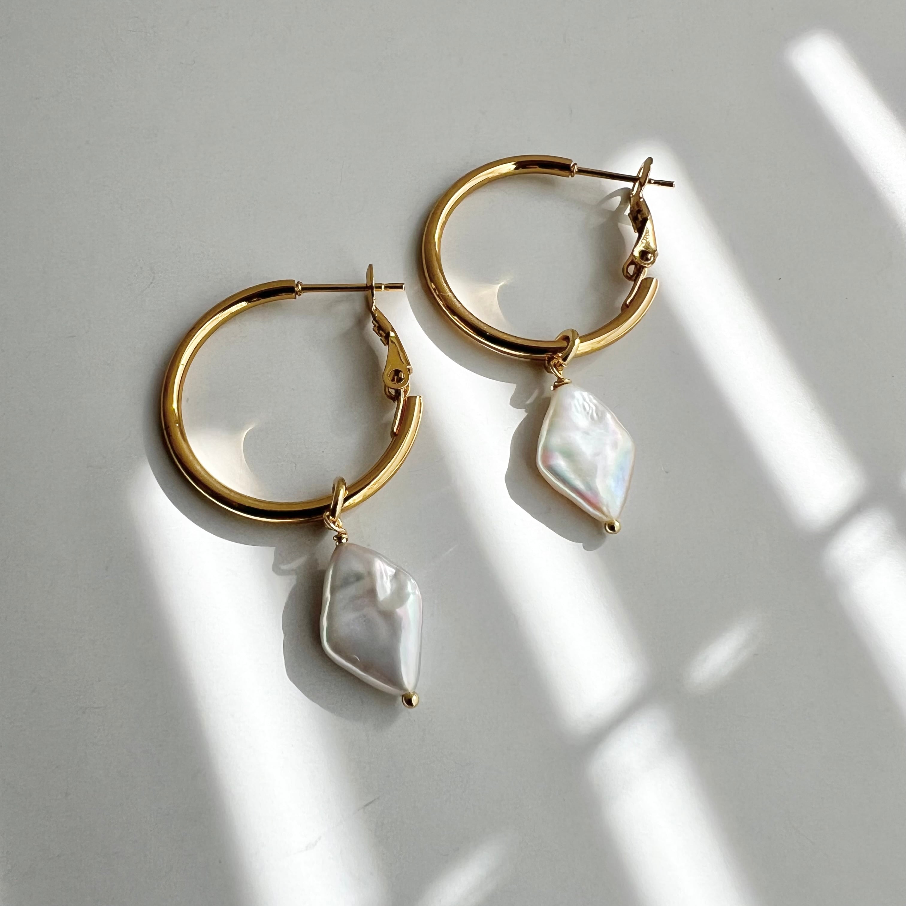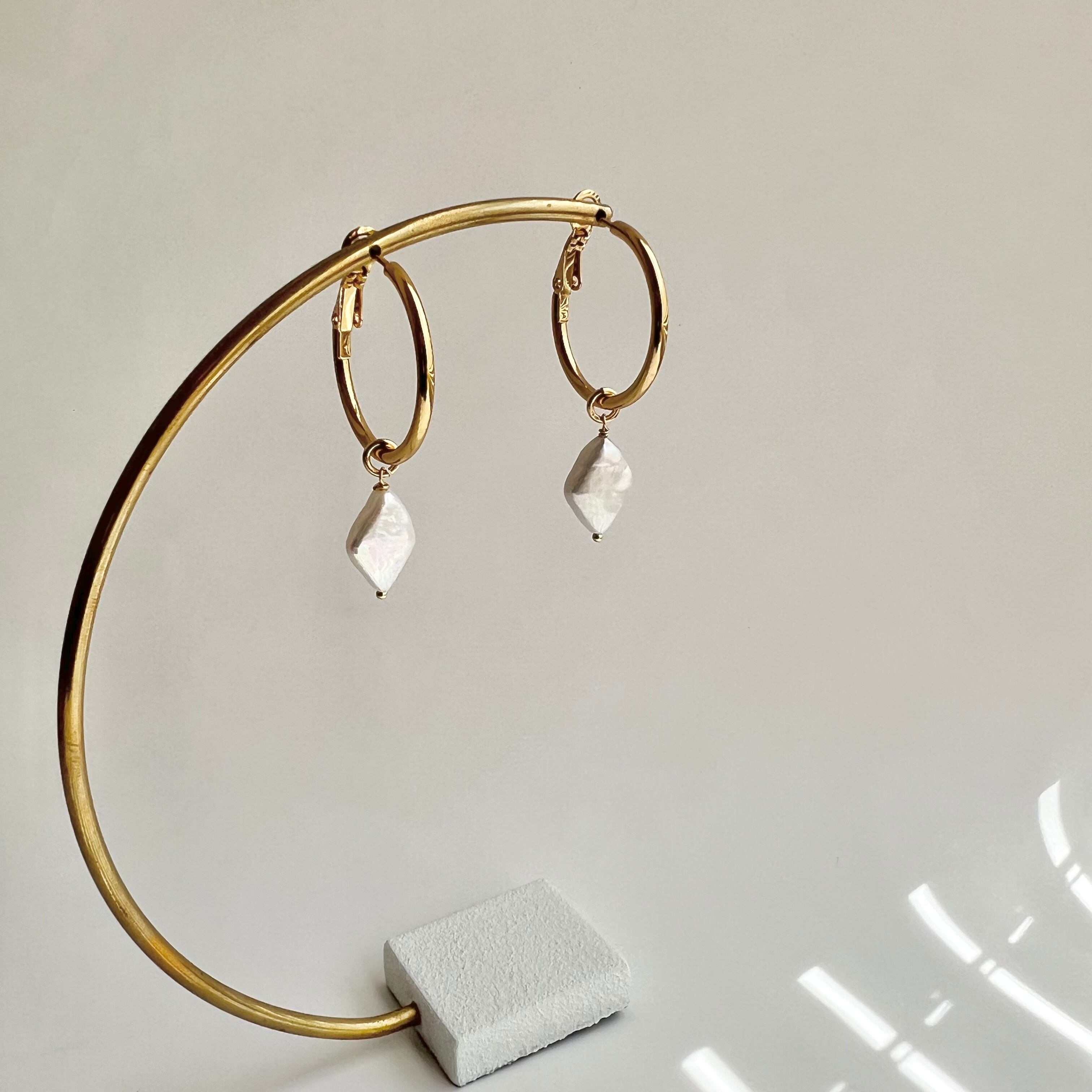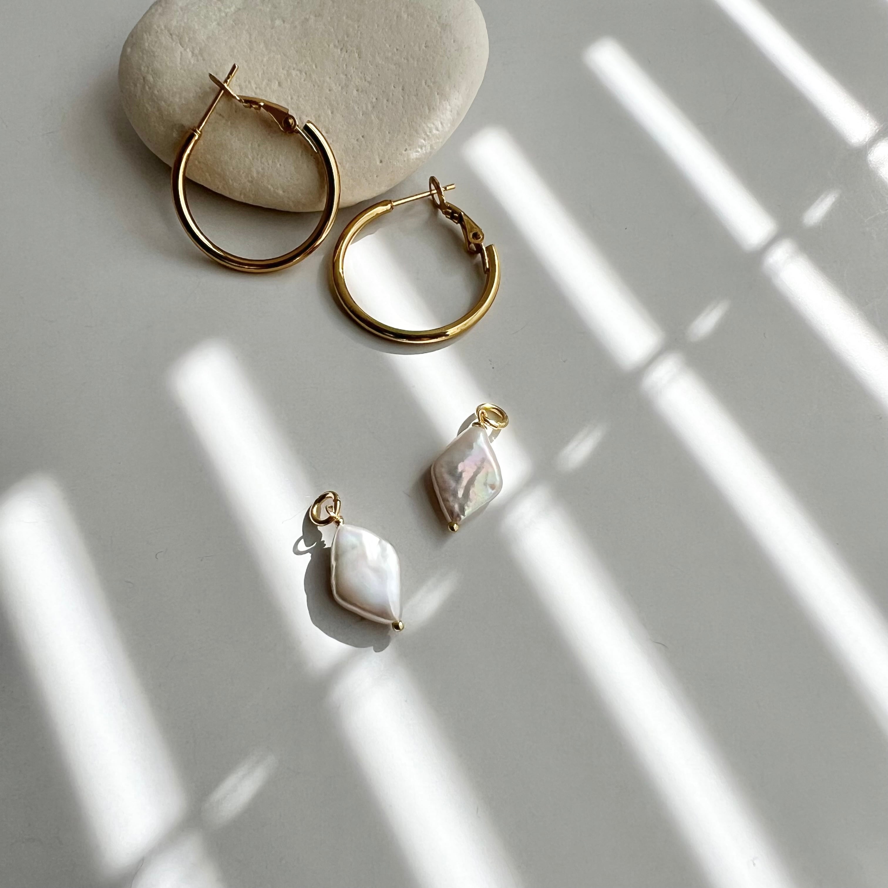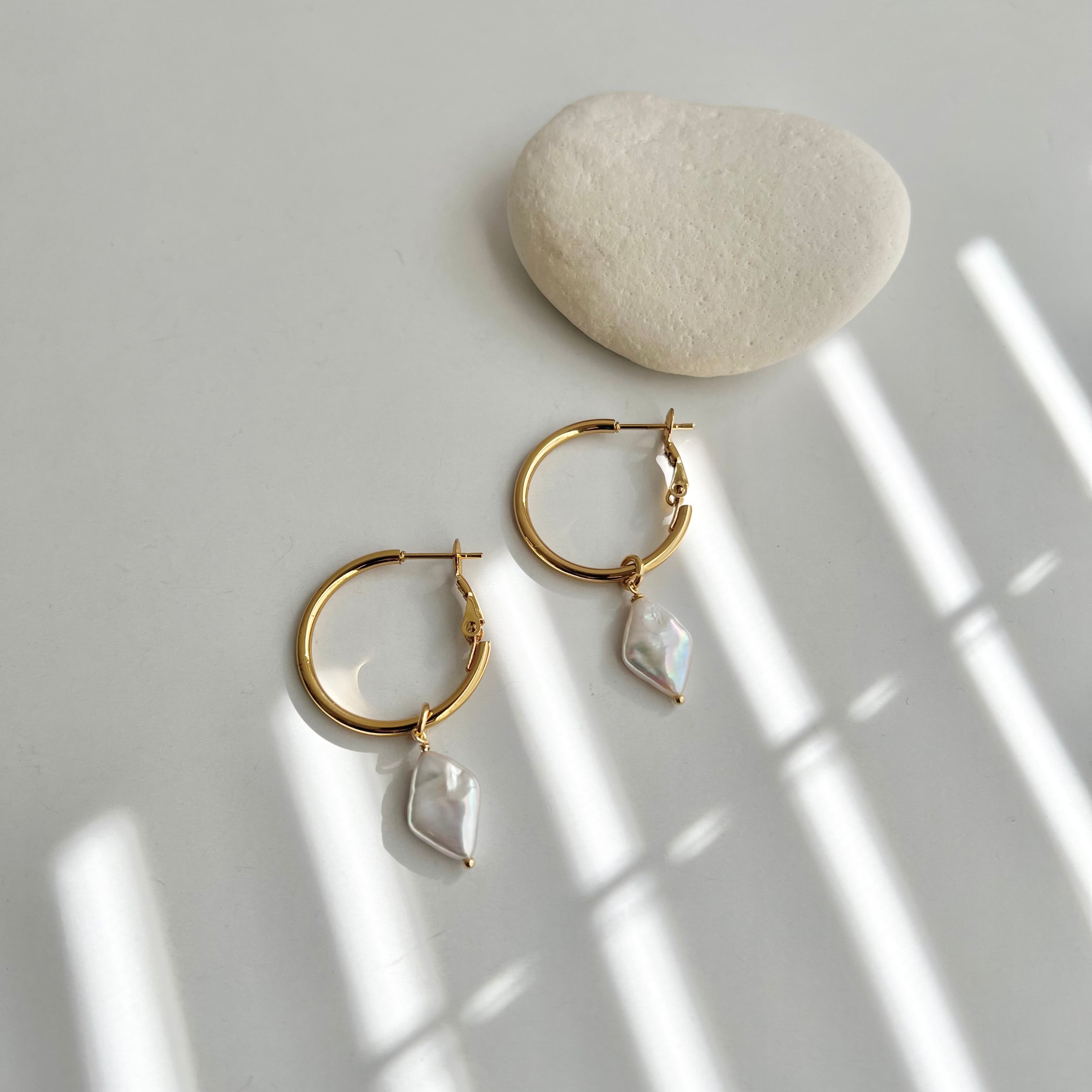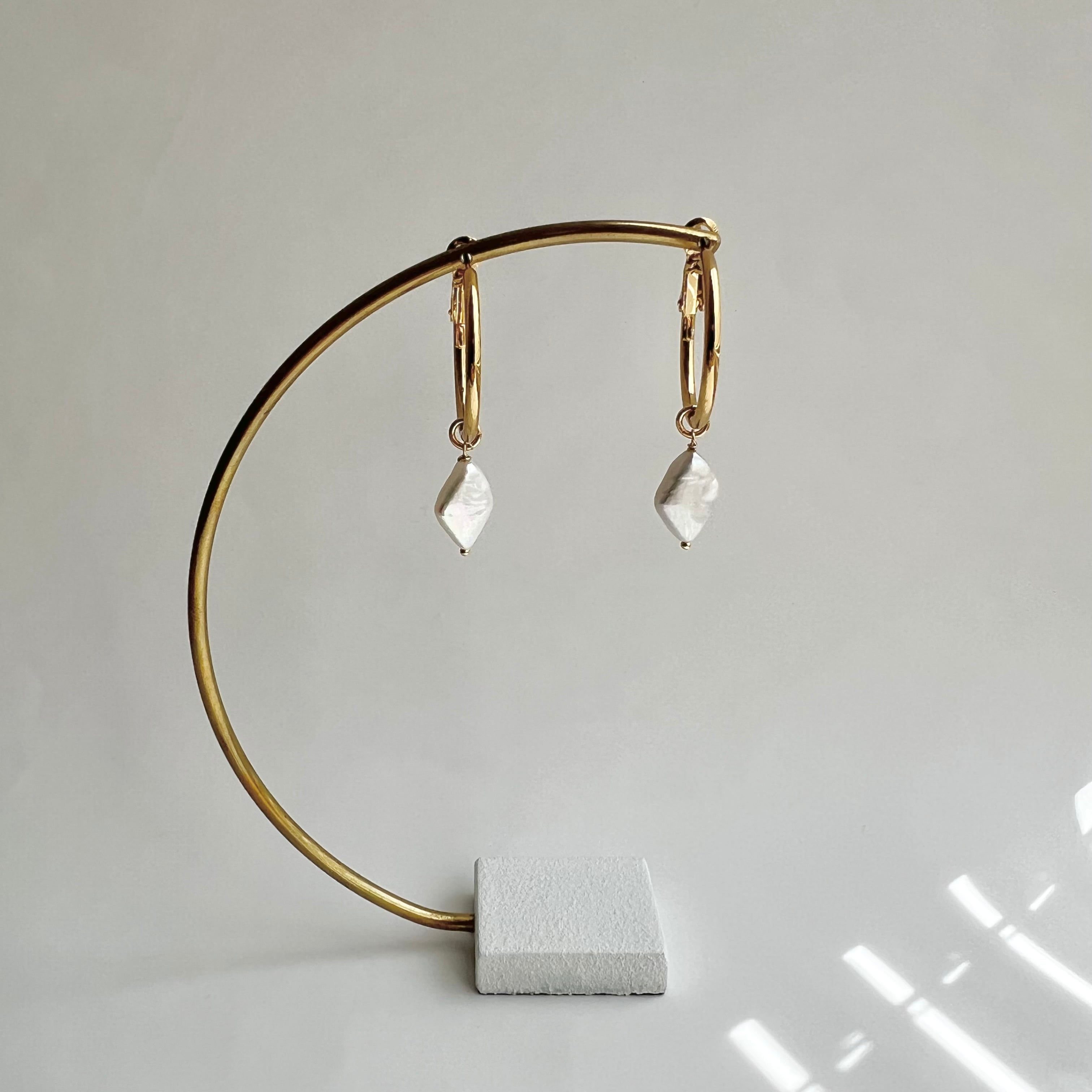 ダイヤ型の淡水パールのフープピアス/イヤリング。
