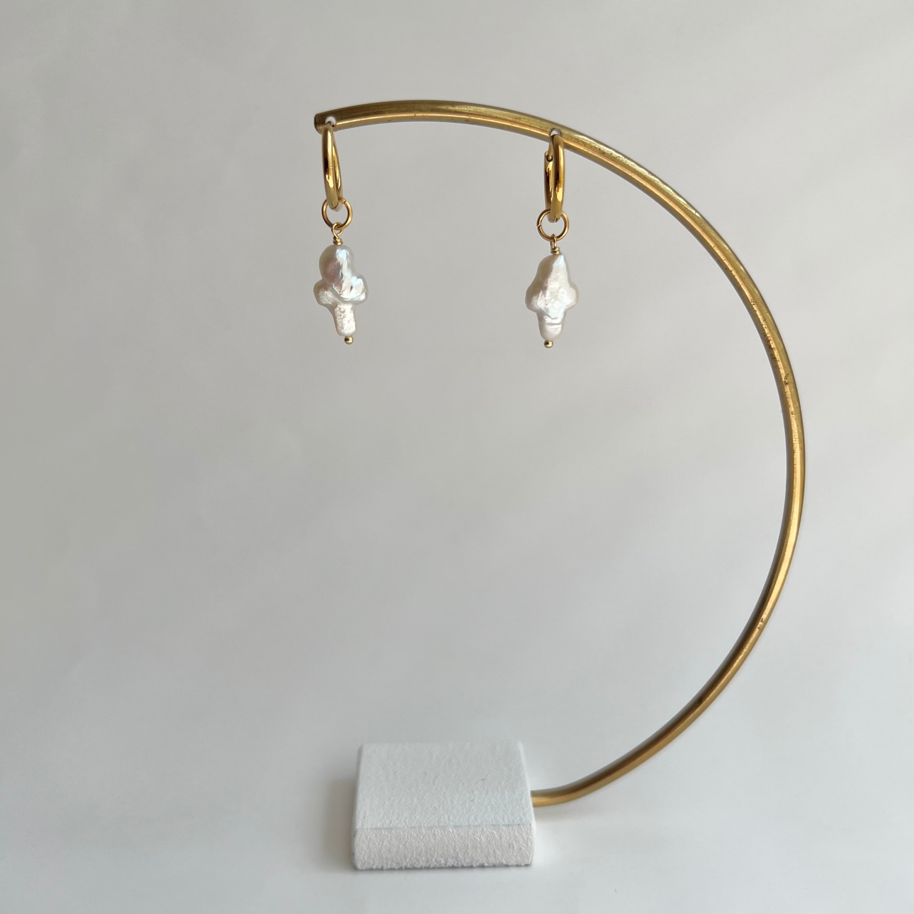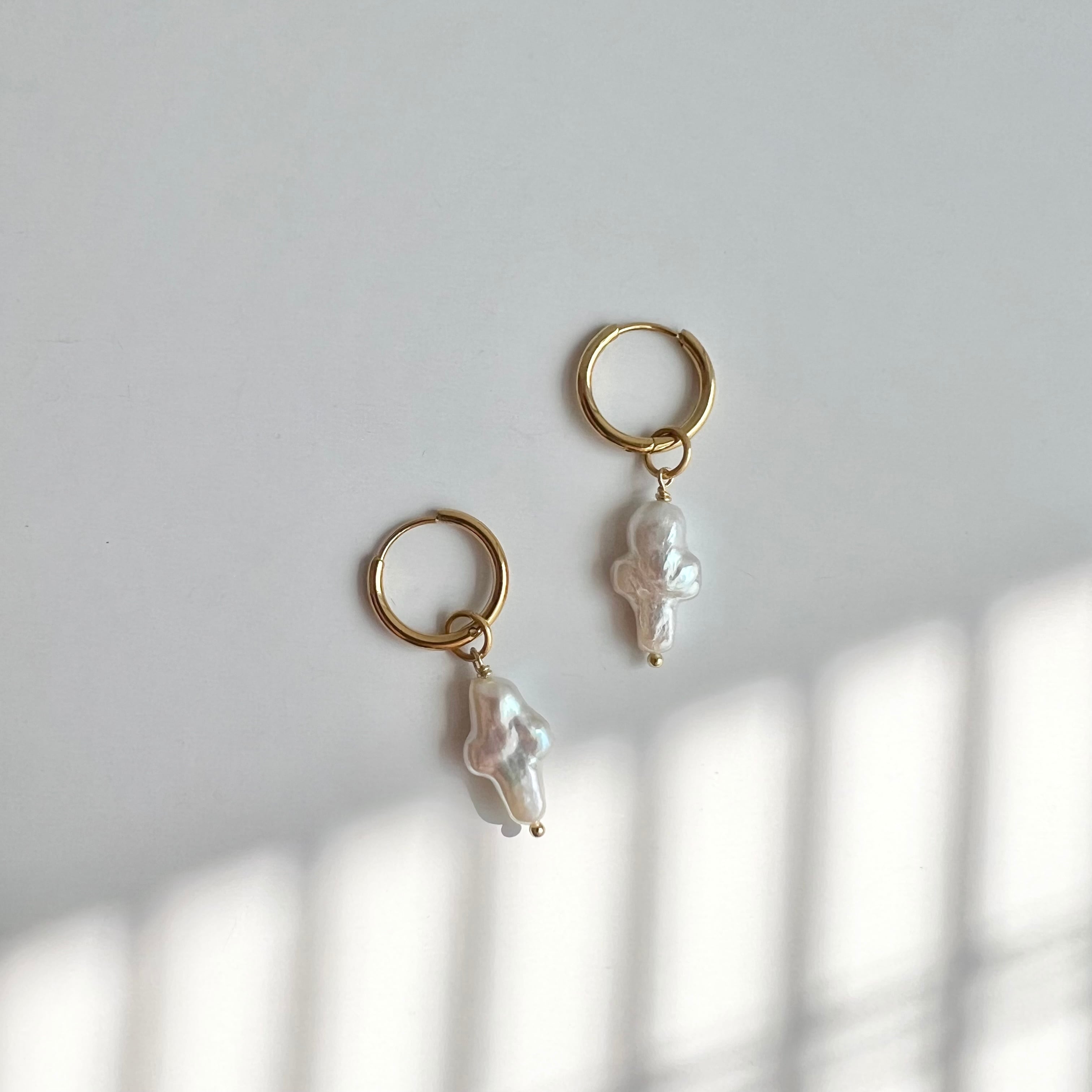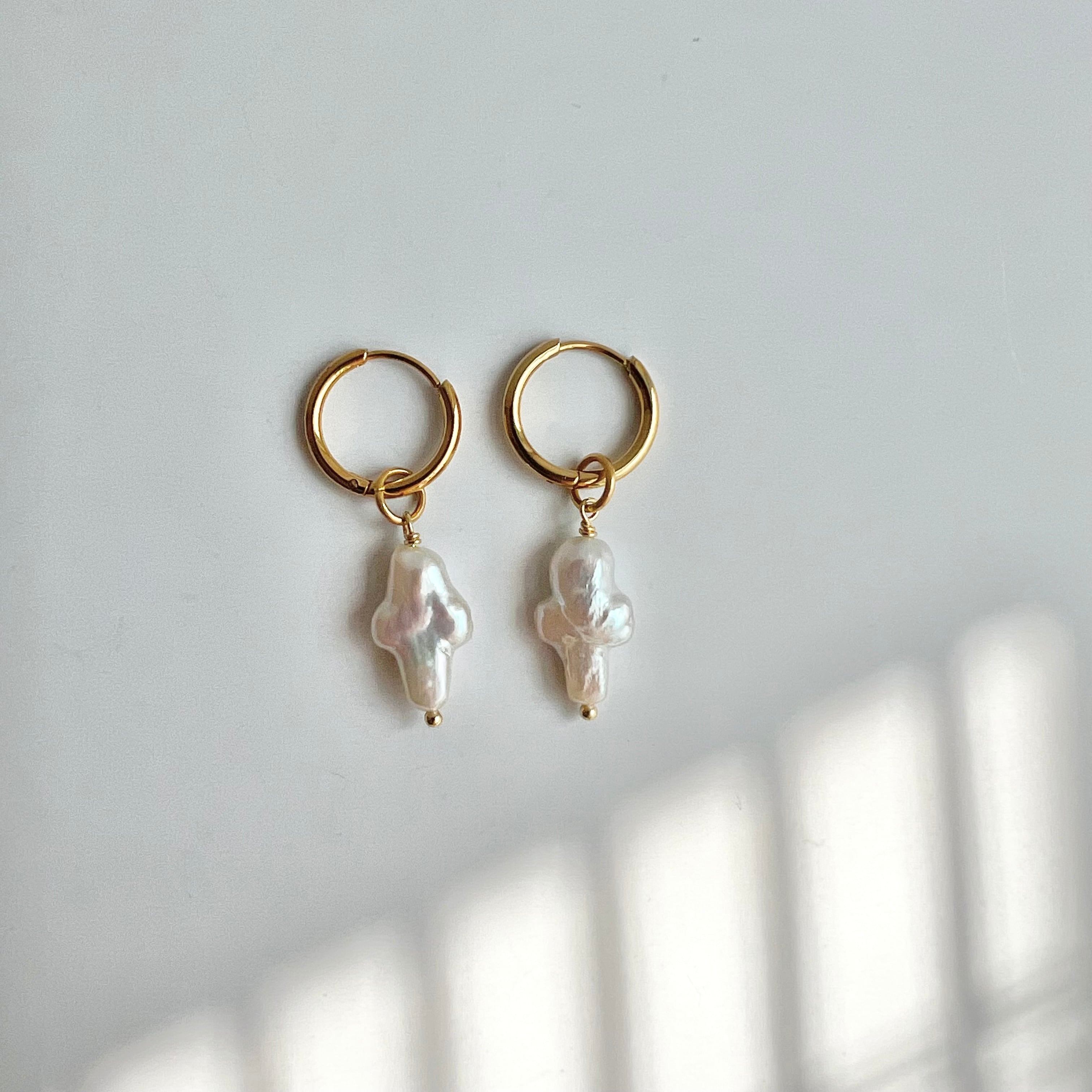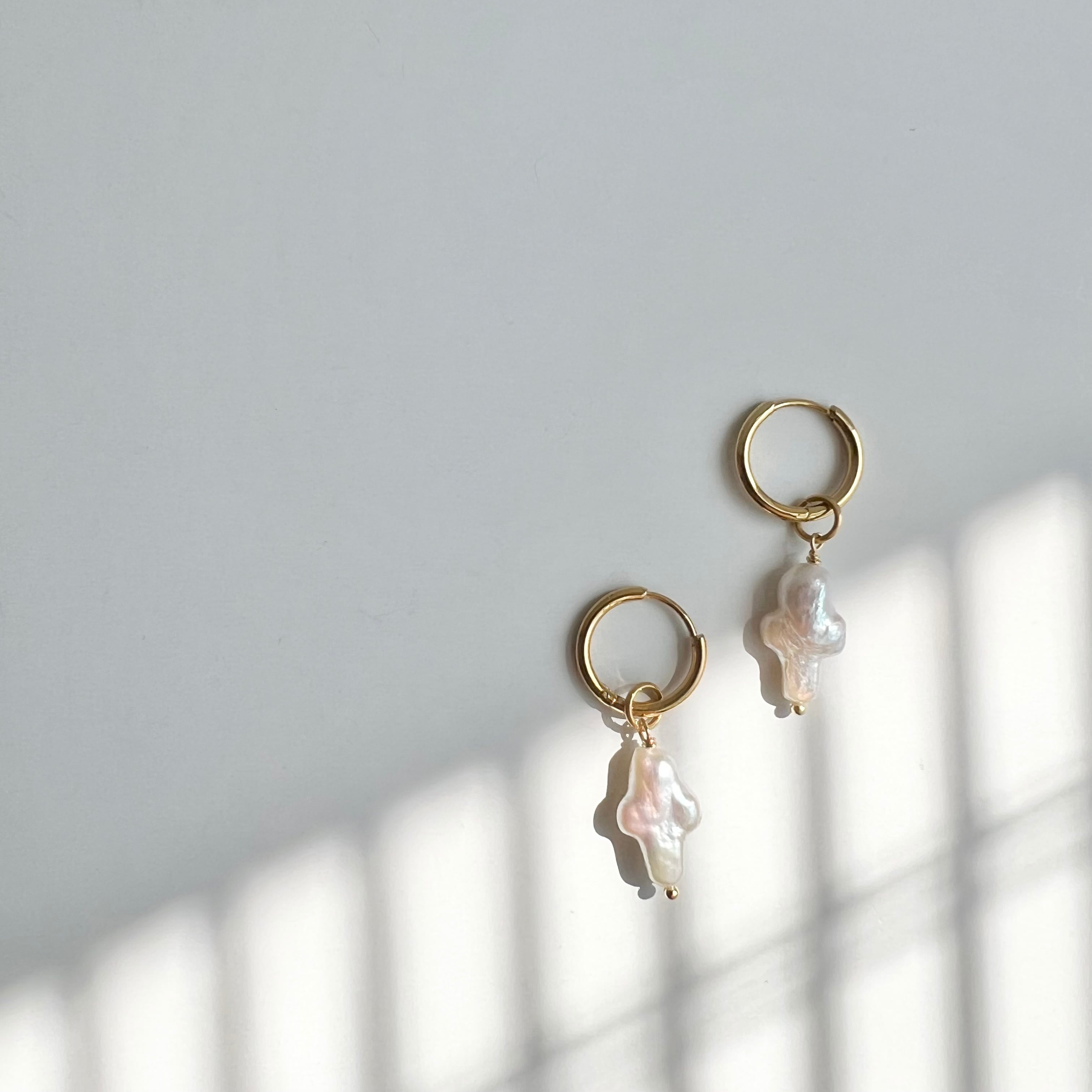 クロス淡水パール×ミニフープピアス ・イヤリング