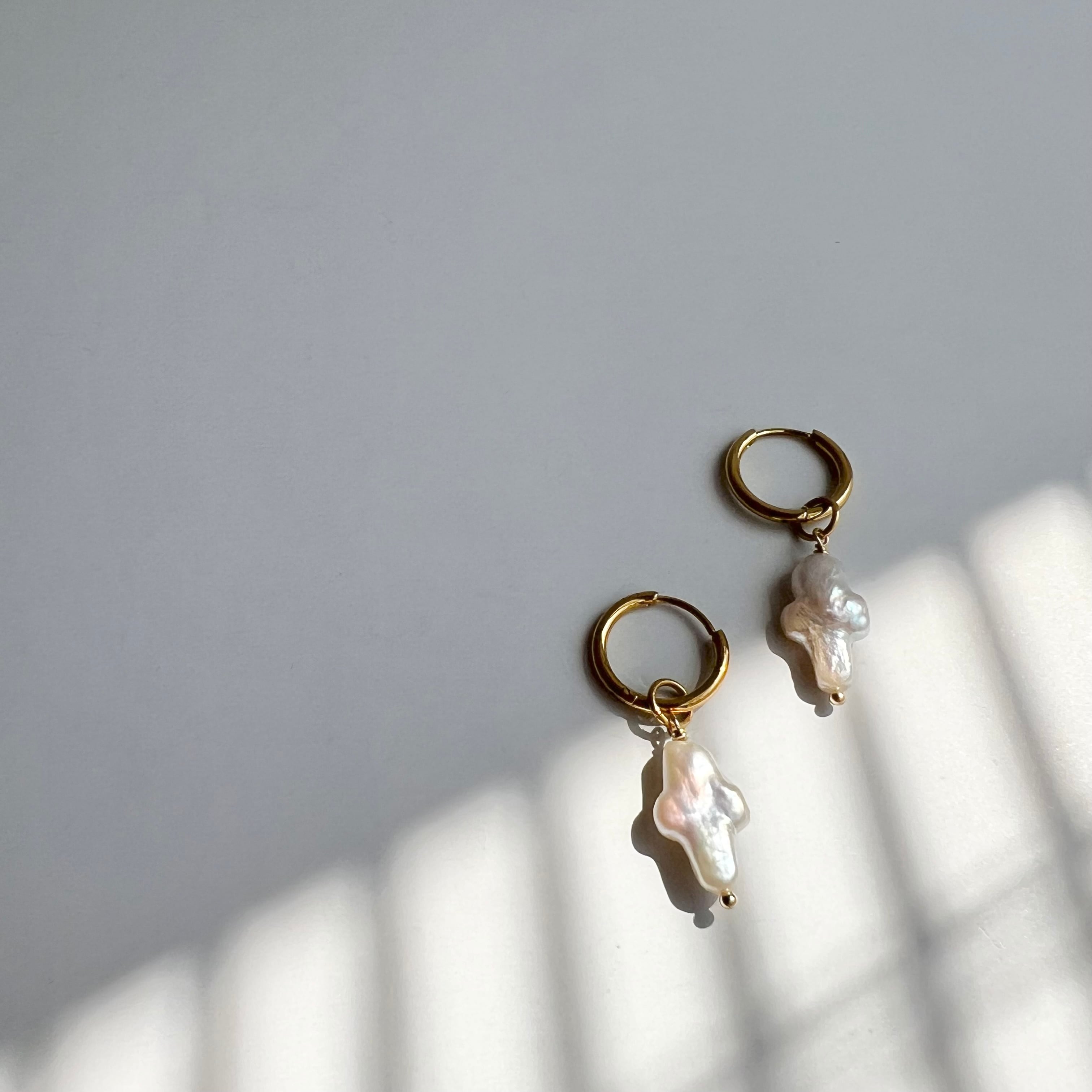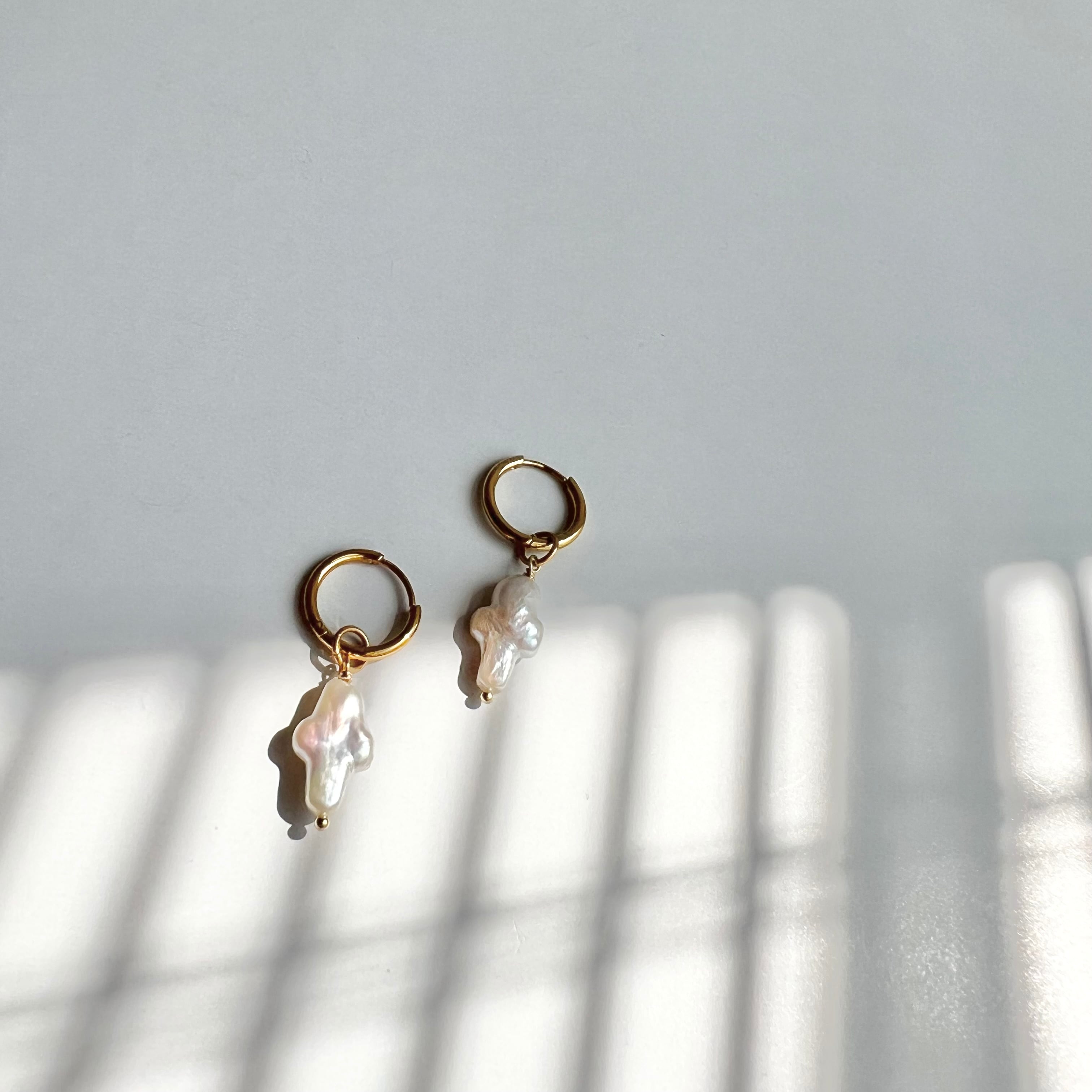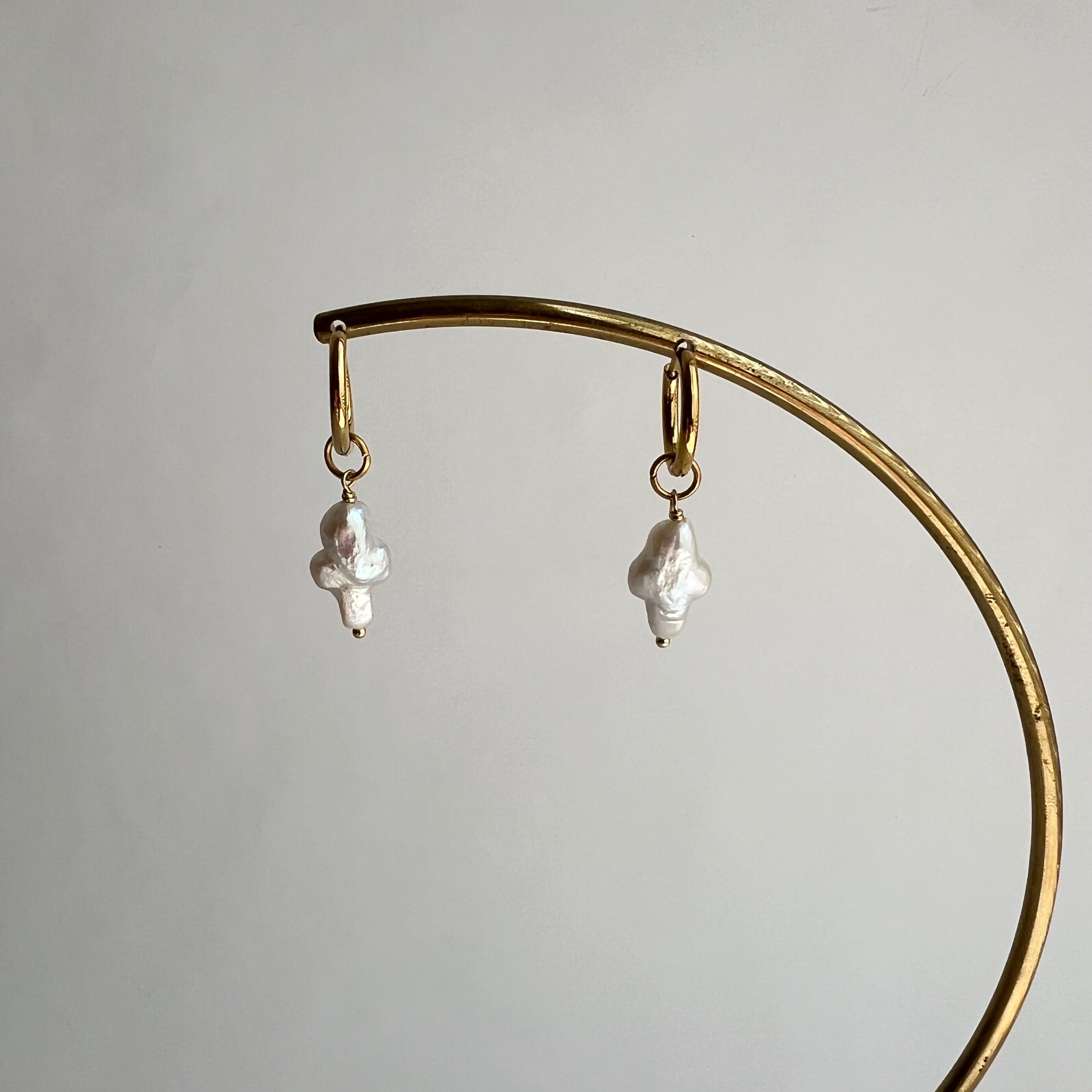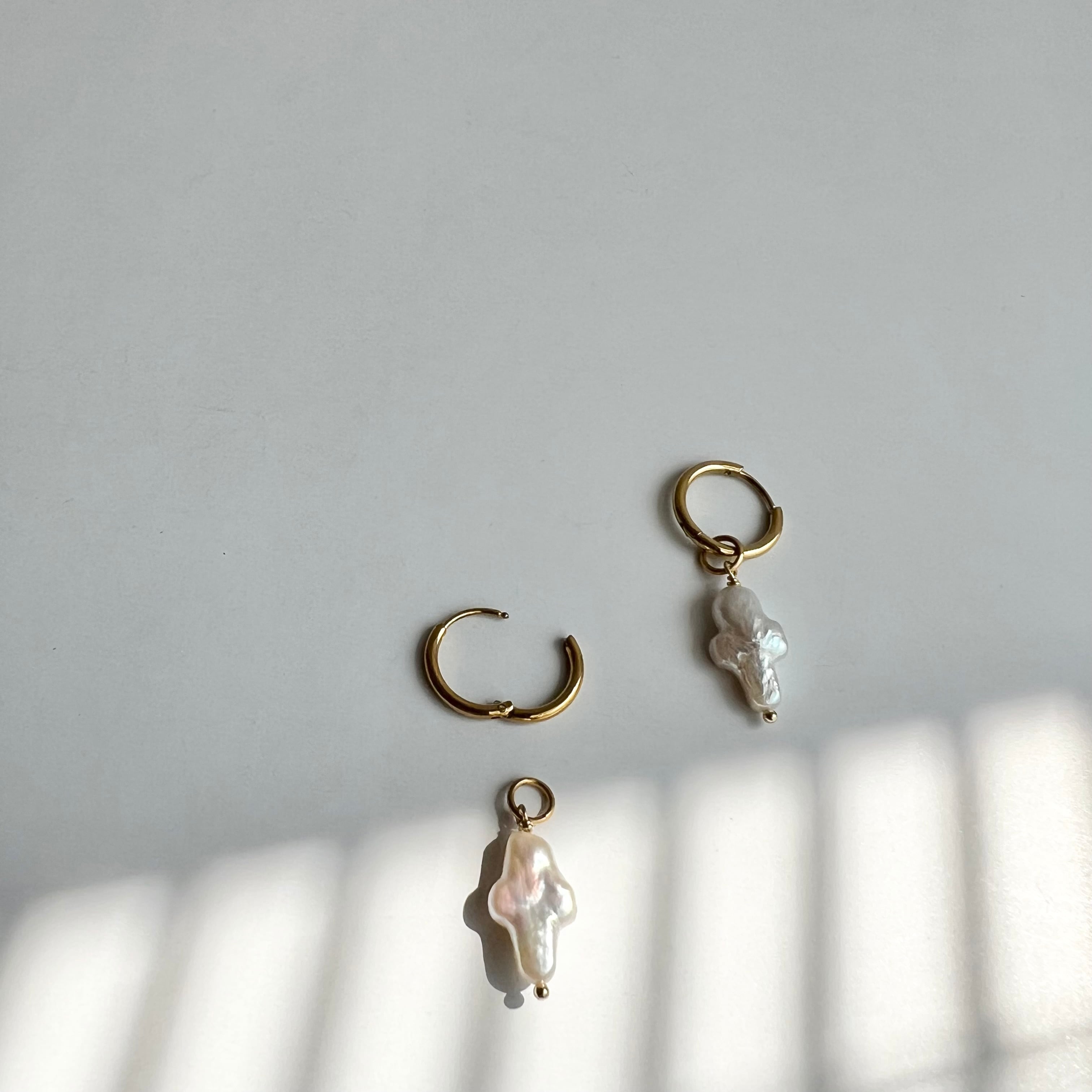 クロス淡水パール×ミニフープピアス ・イヤリング