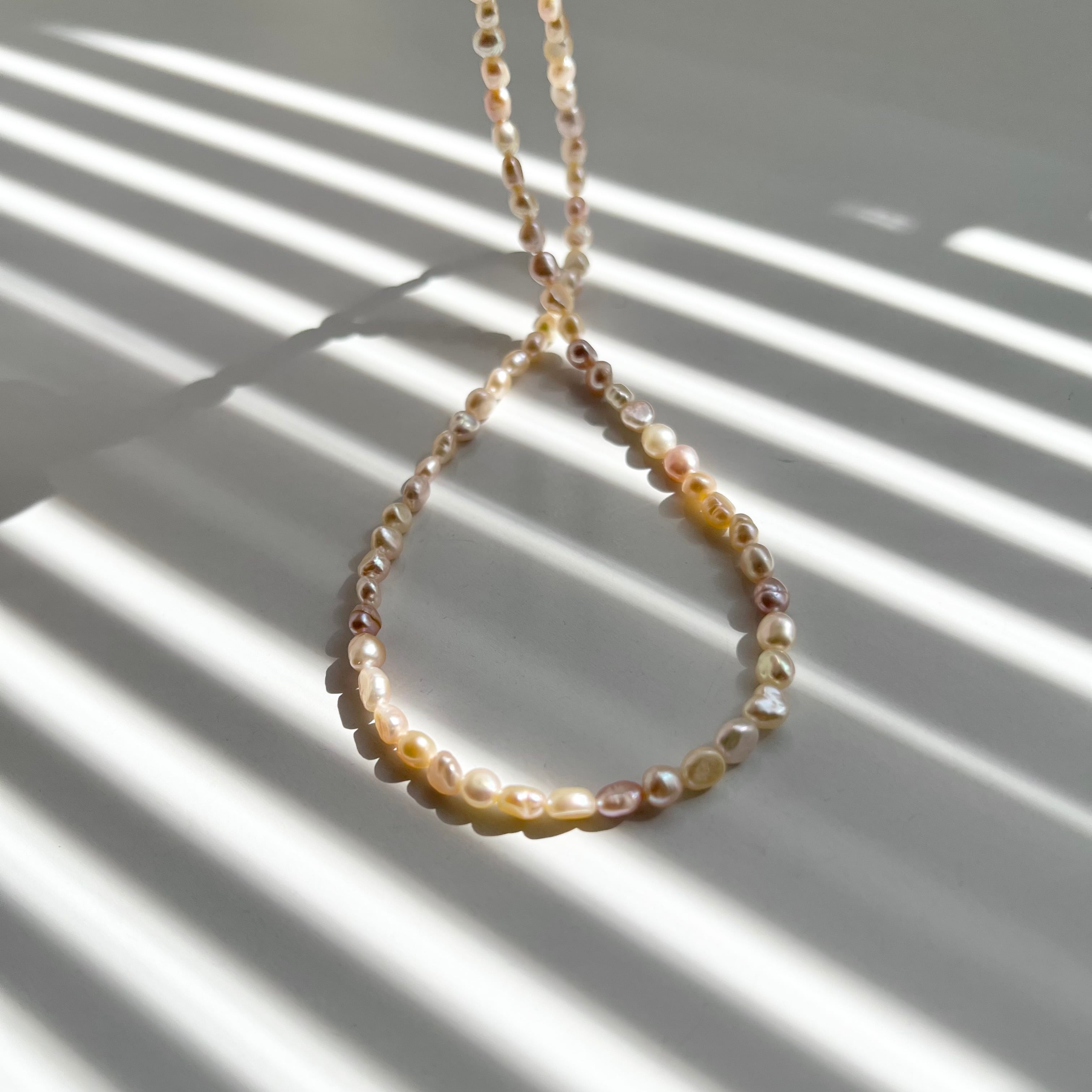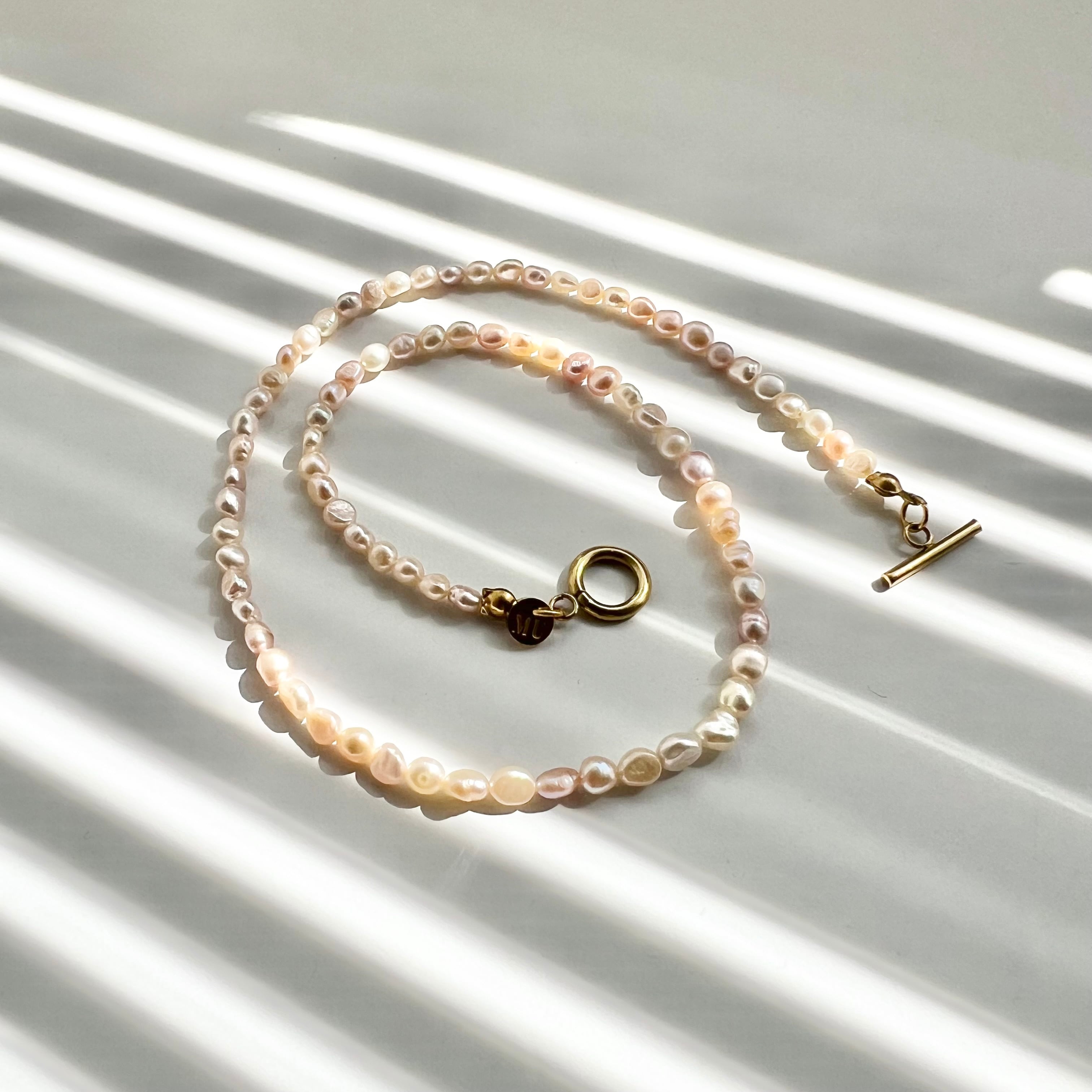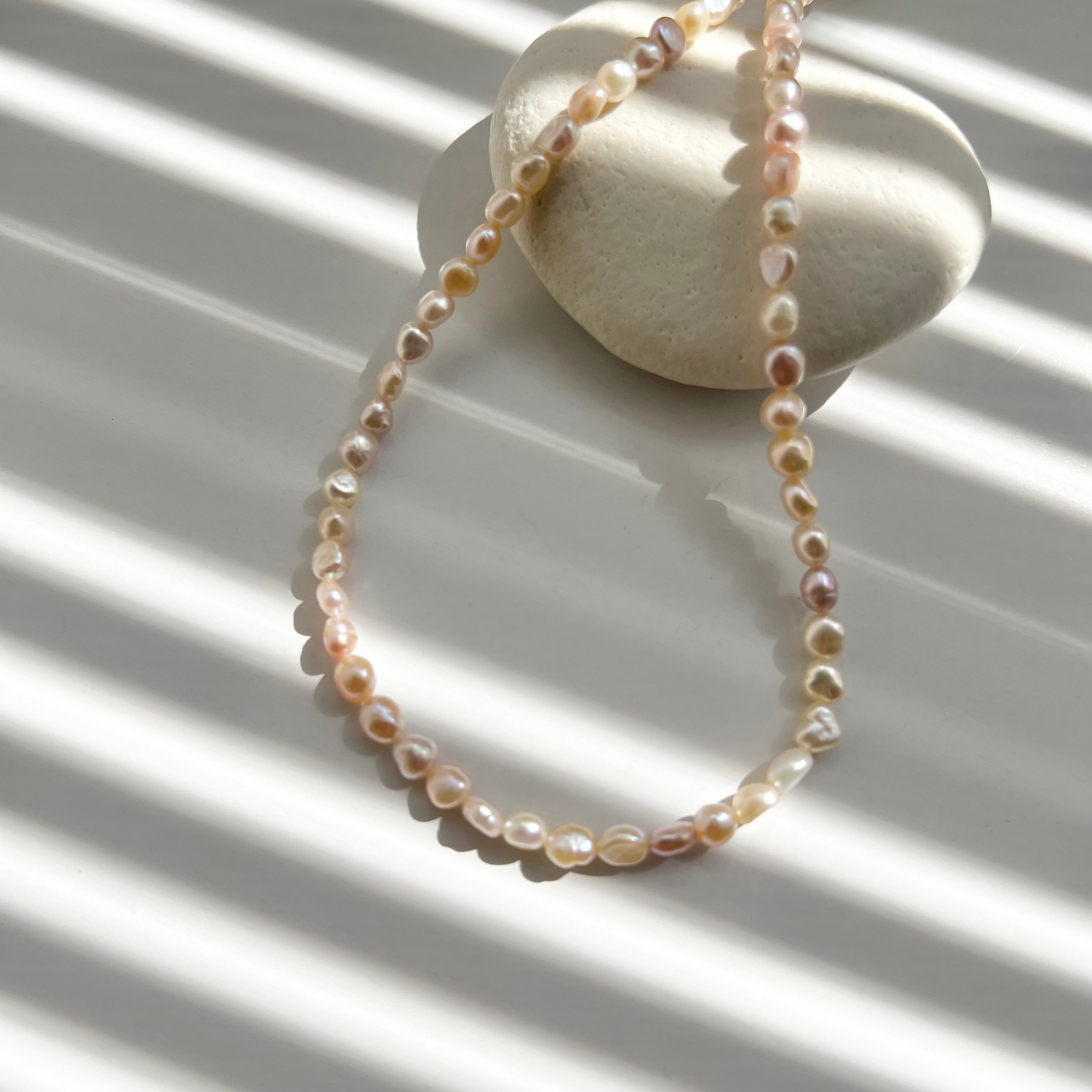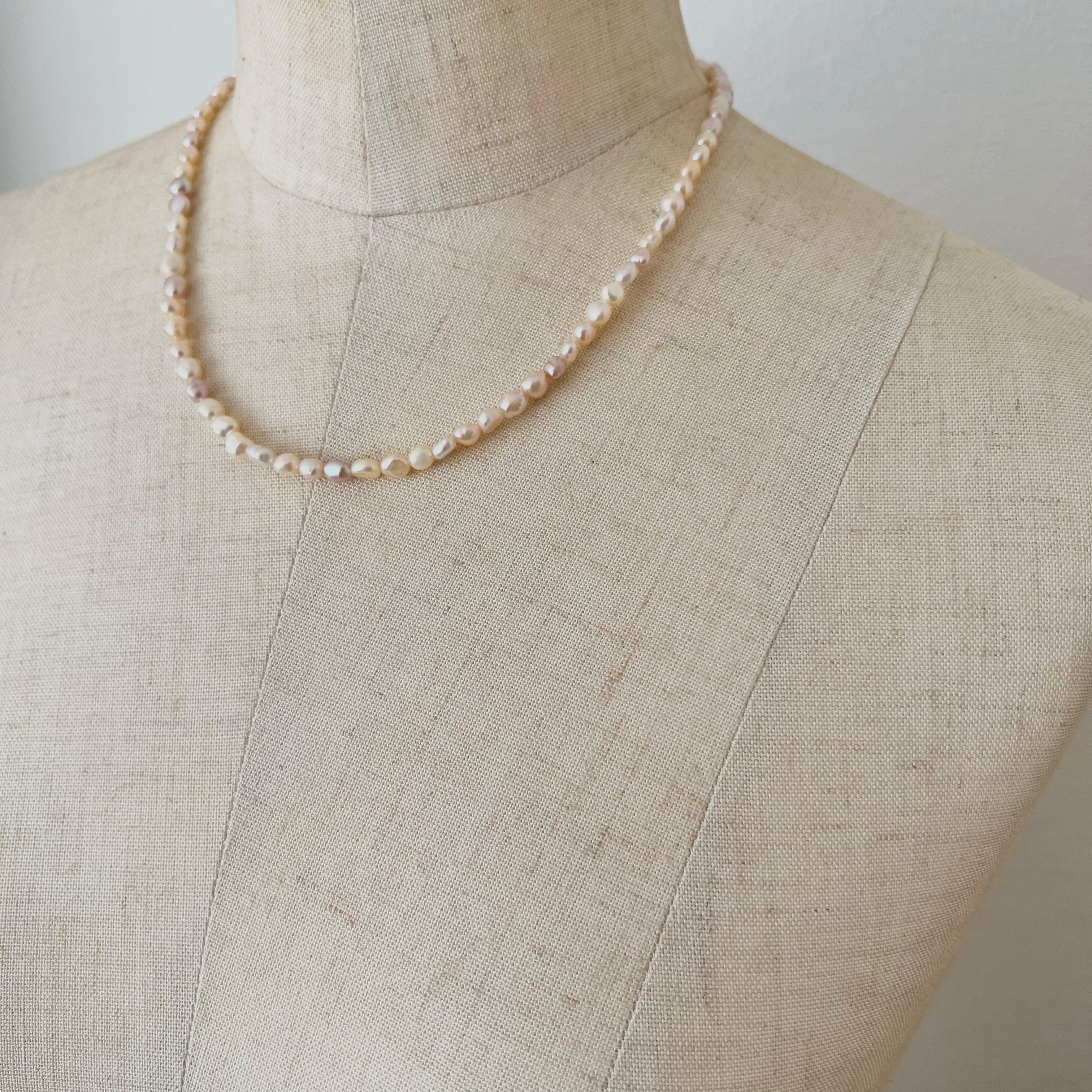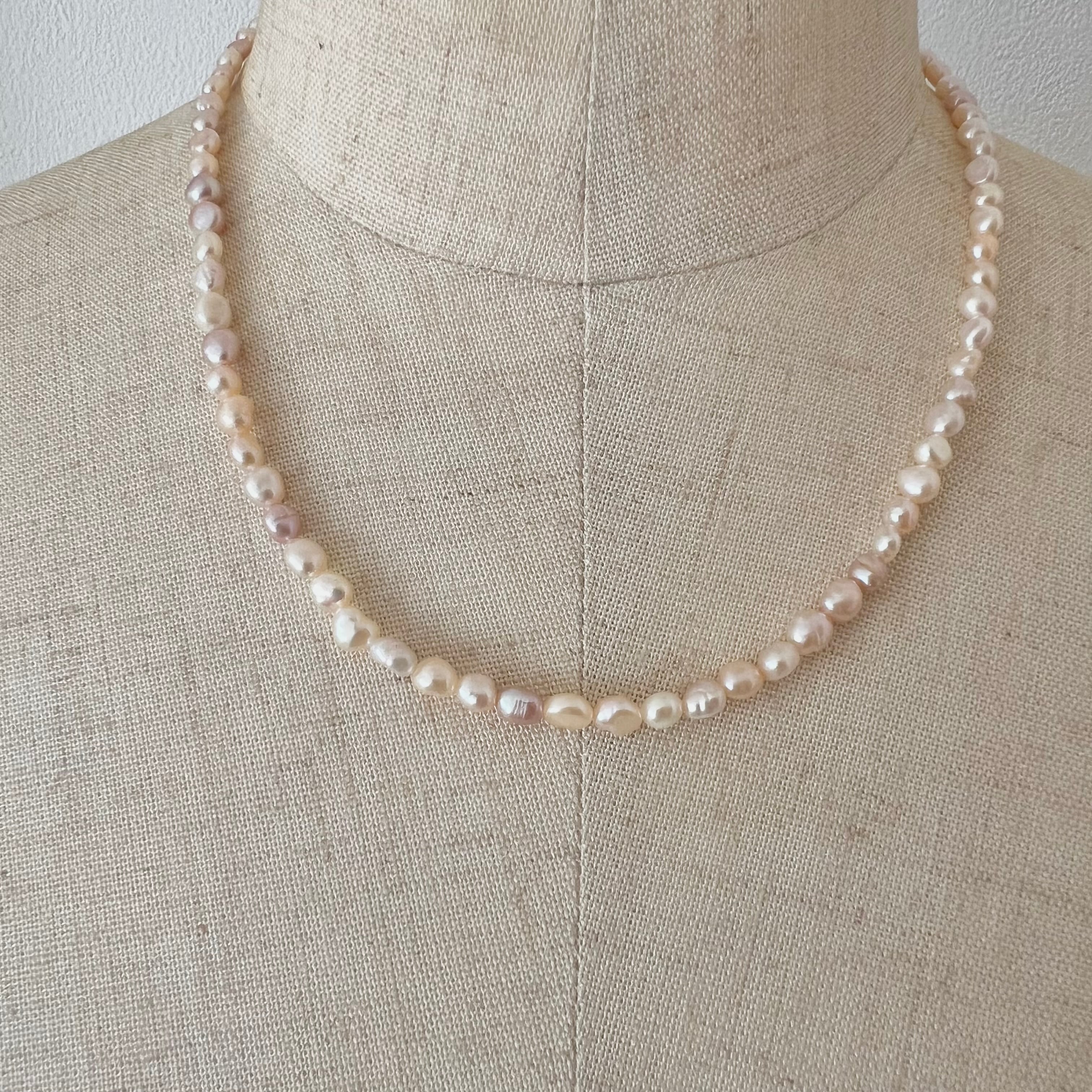 春らしい優しい色合いの淡水パールのショートネックレス。