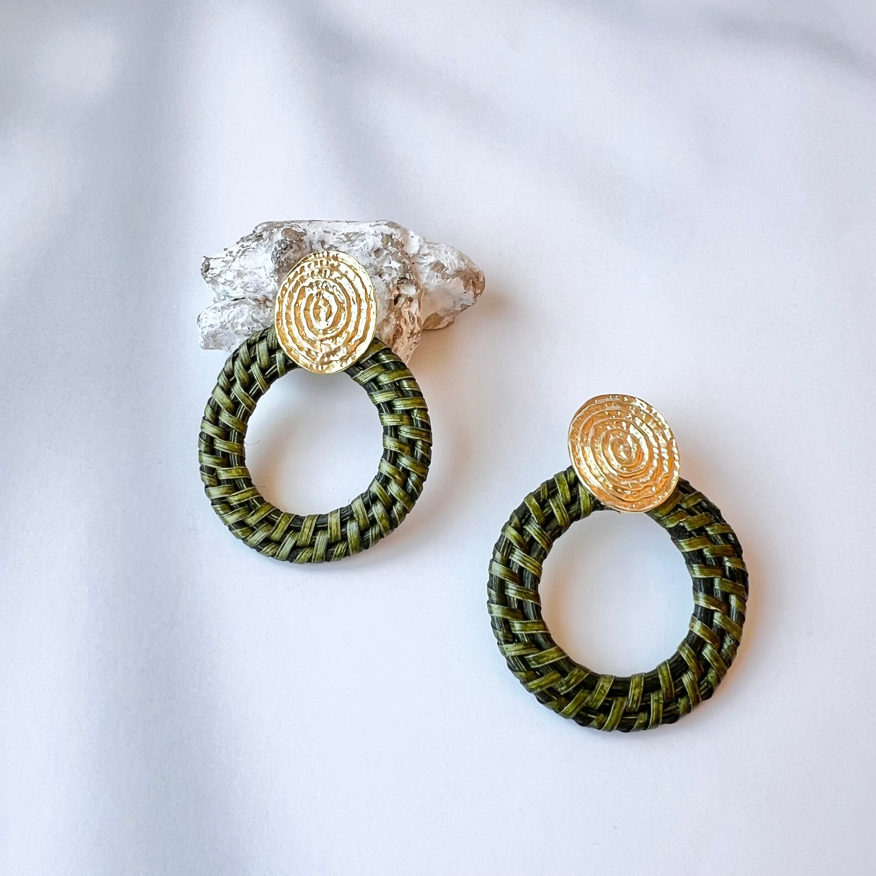 渋めのグリーンのラタンピアス。