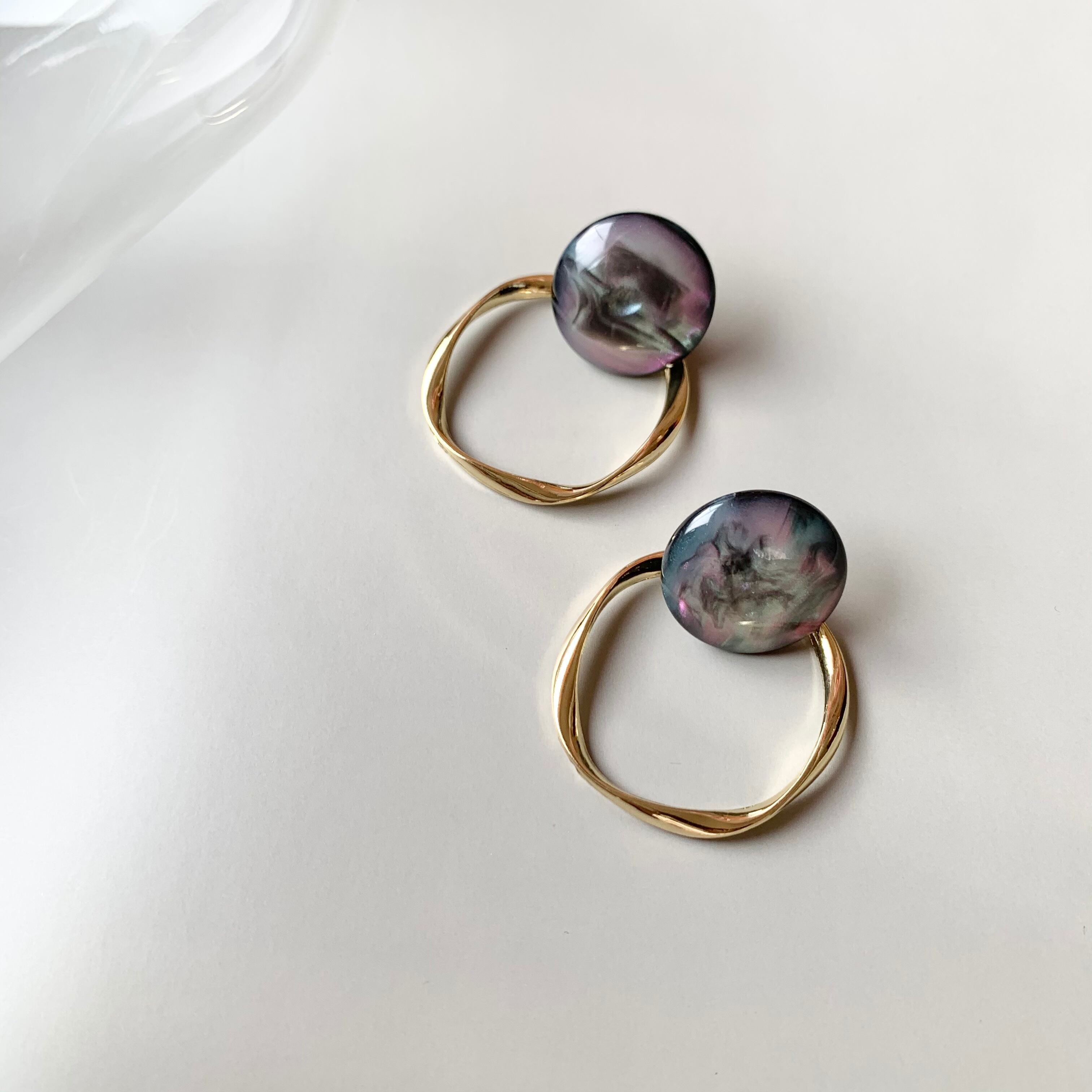 \\TVドラマ着用//オーロラカボションフープピアス / イヤリング