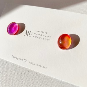 温度で色が変わる不思議なガラスカボションピアス/イヤリング(レッド) サージカルステンレス