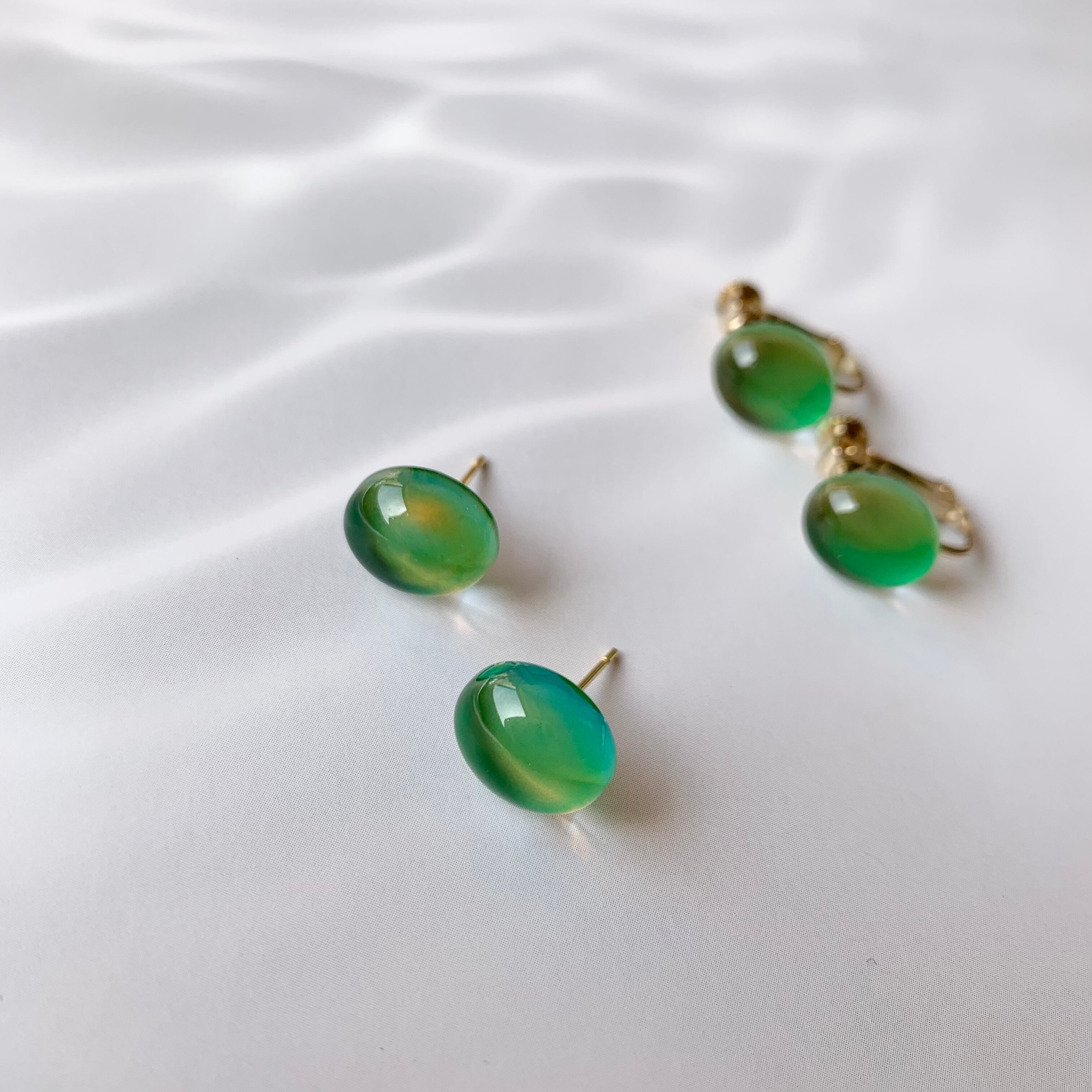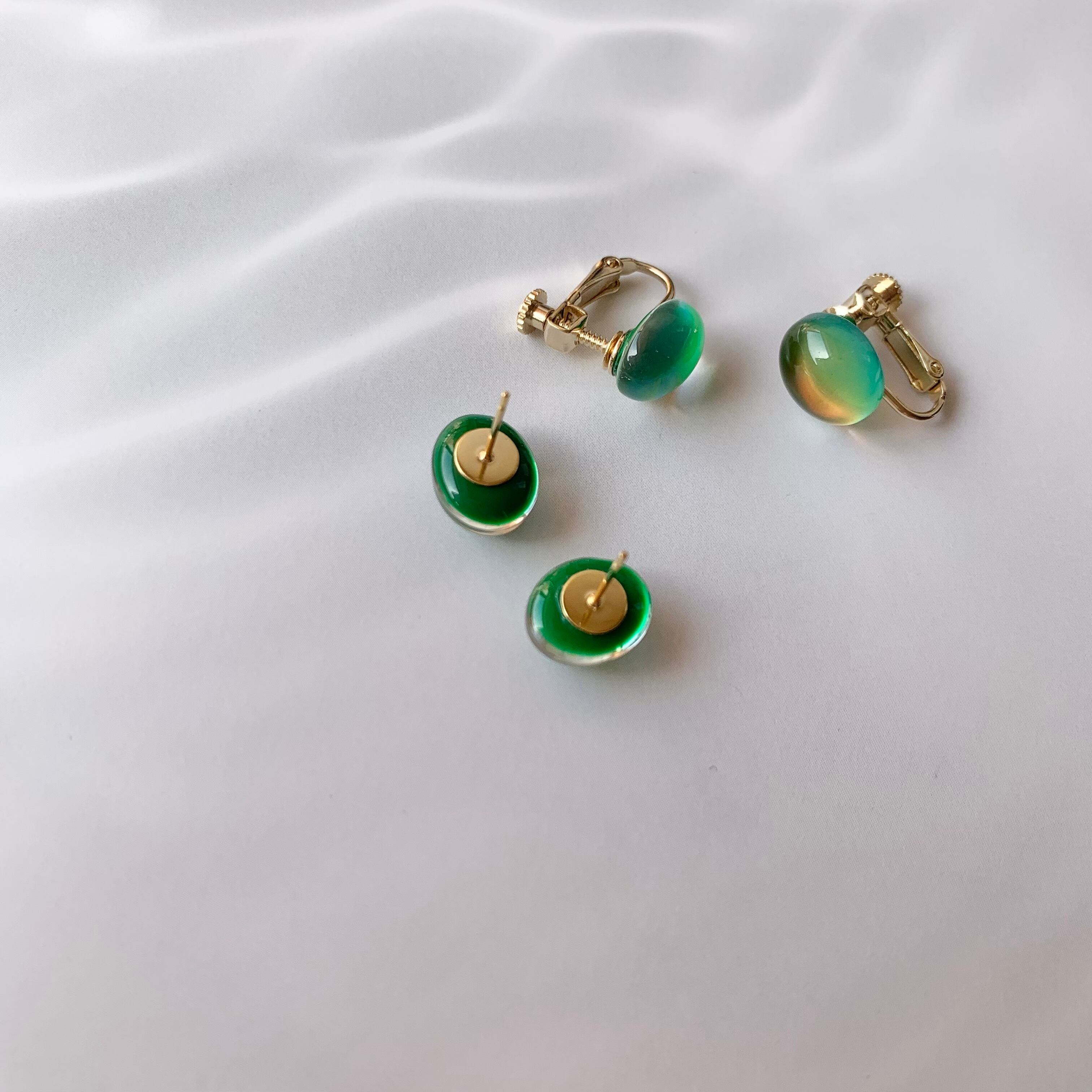 温度で色が変わる不思議なガラスカボションピアス/イヤリング(グリーン) サージカルステンレス