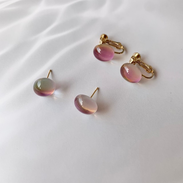 つるんと色の綺麗なサーモガラスカボションピアス。イヤリング。
