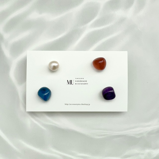 つるんとしたアゲート3粒と淡水パールを1粒。