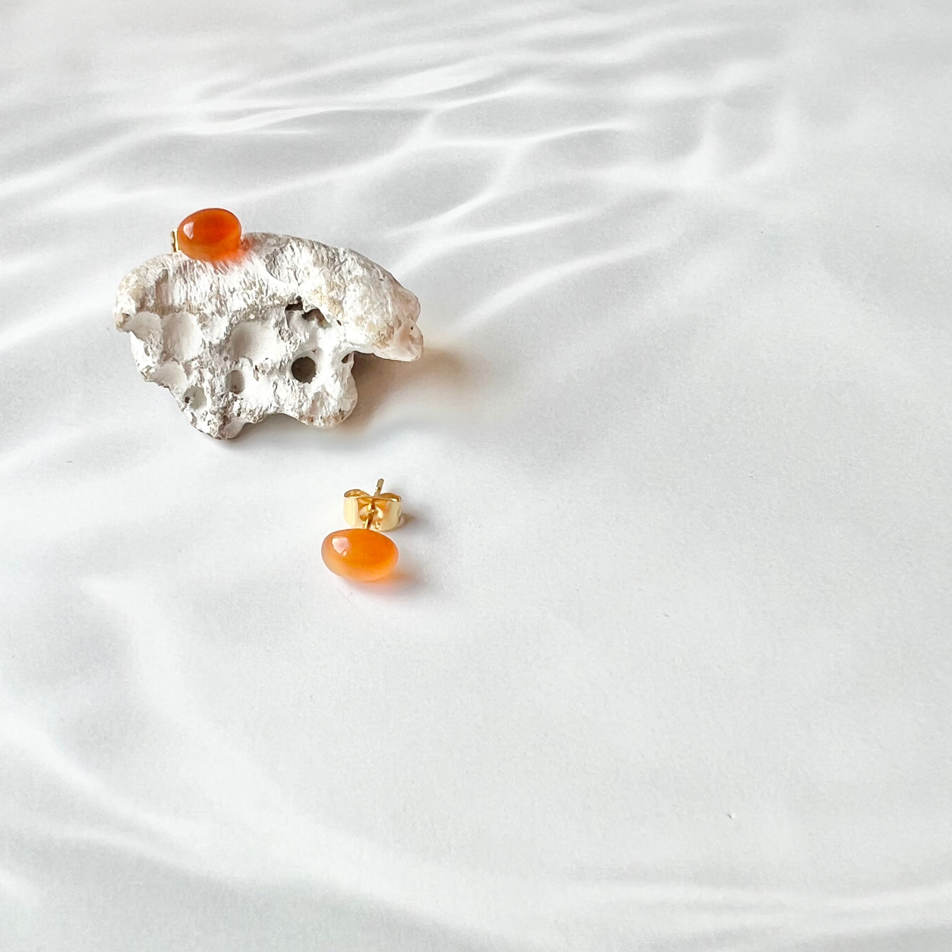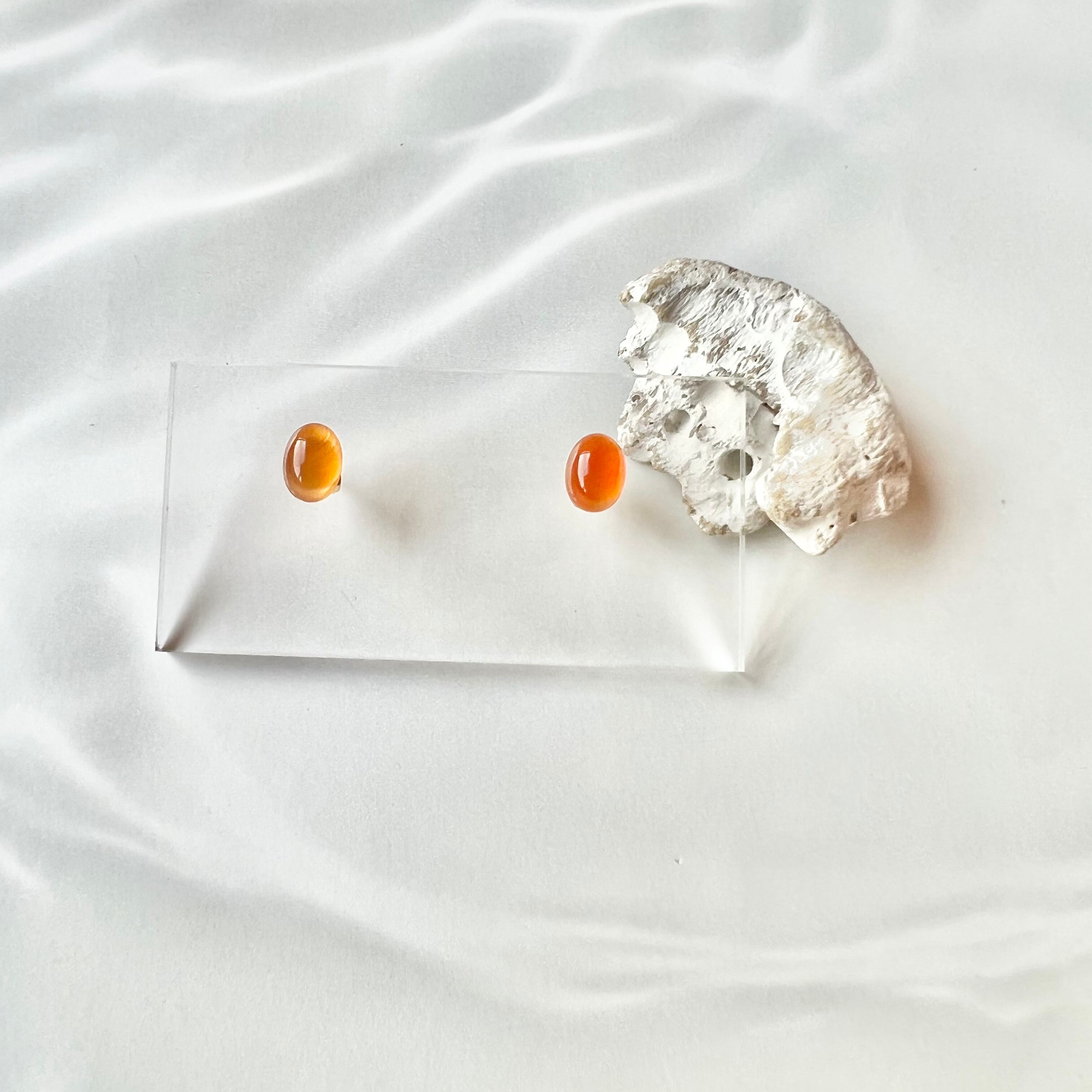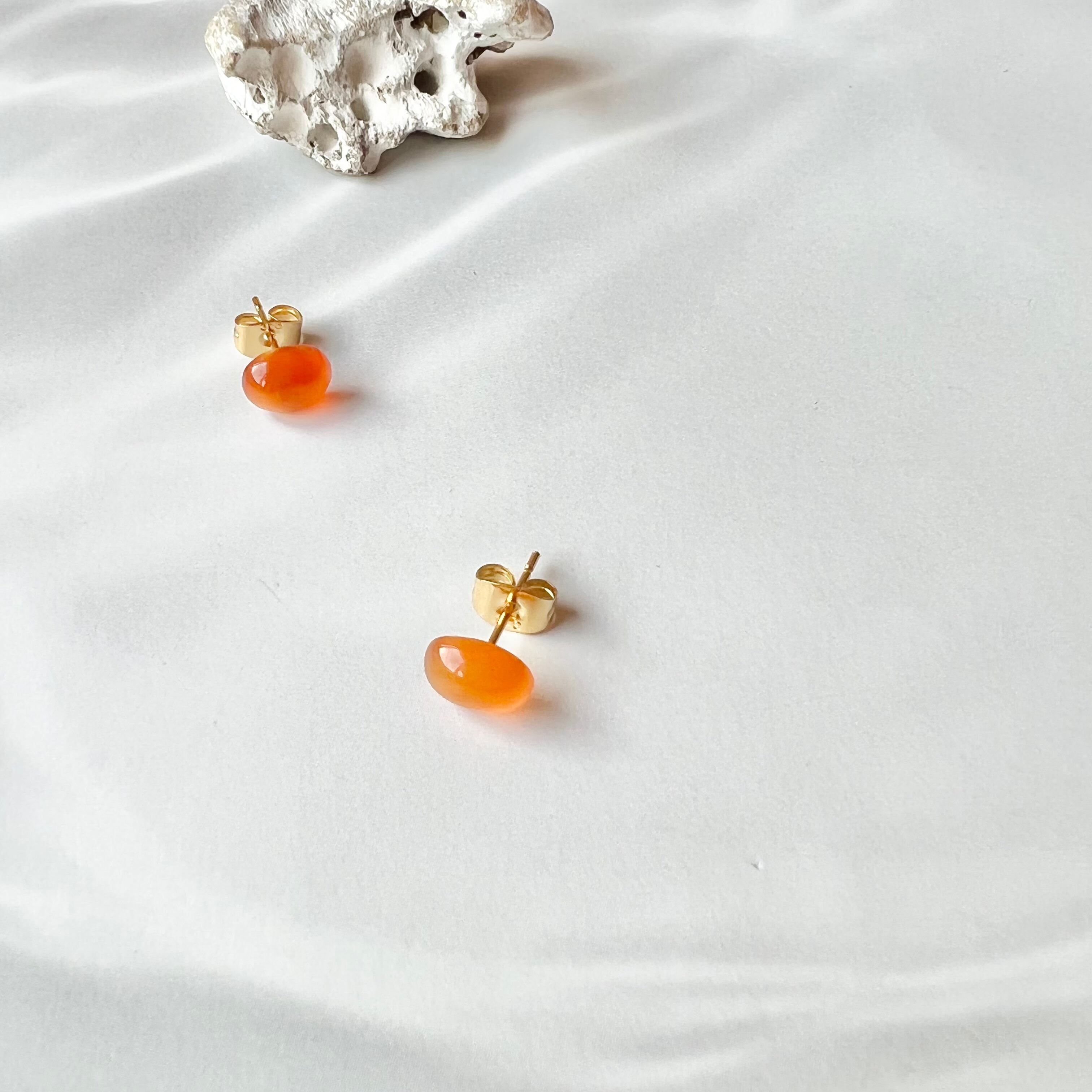 つるんと可愛いカーネリアンのミニカボションピアス。