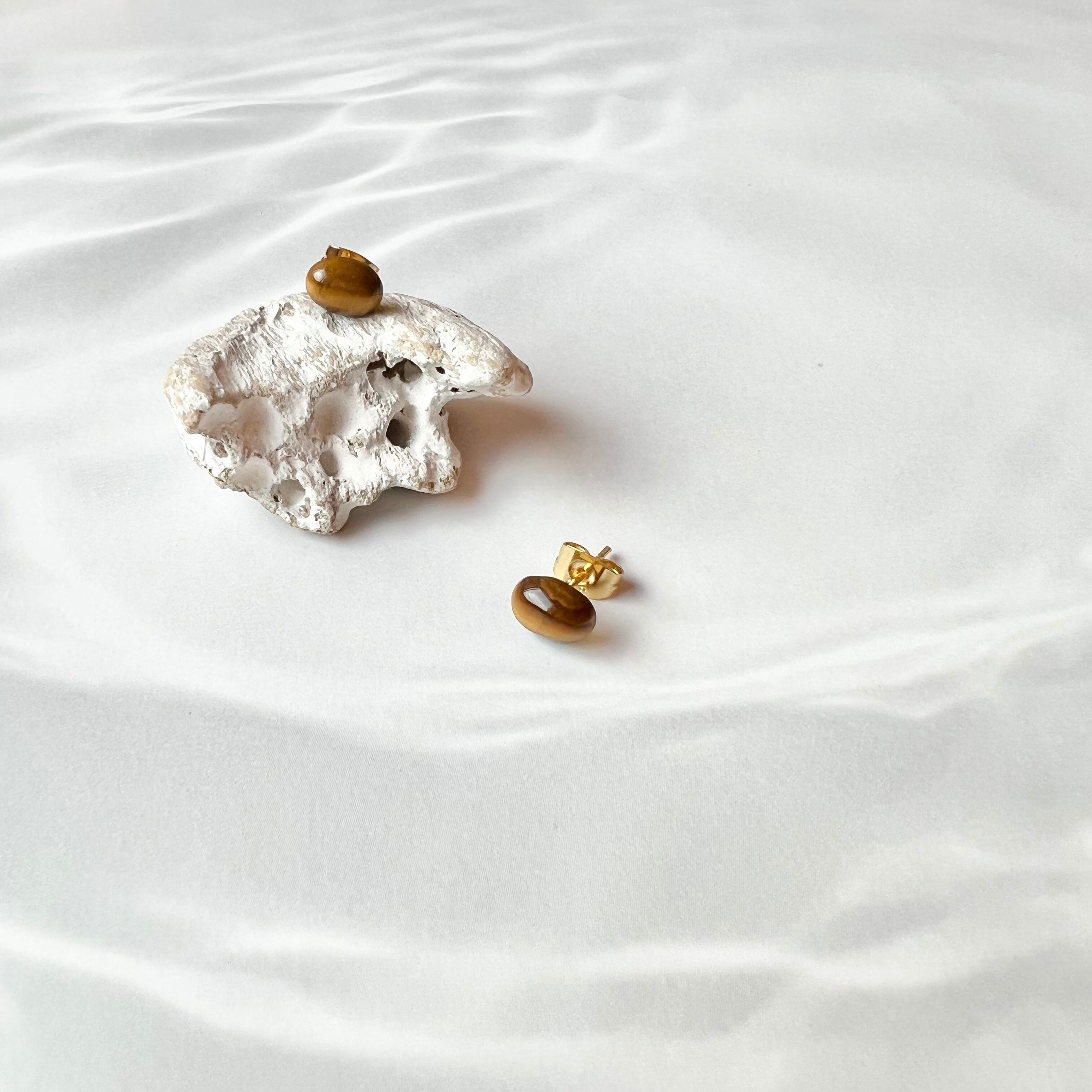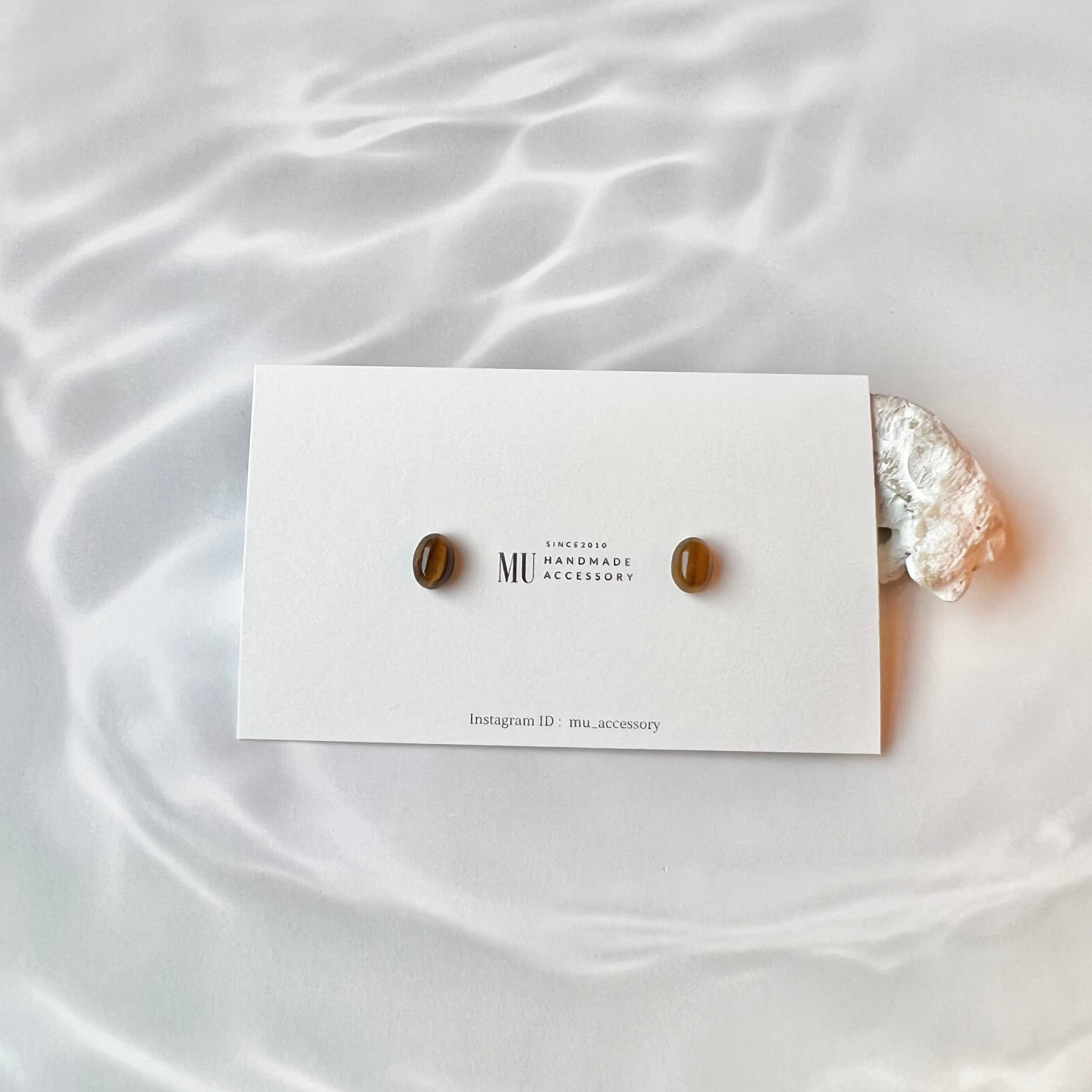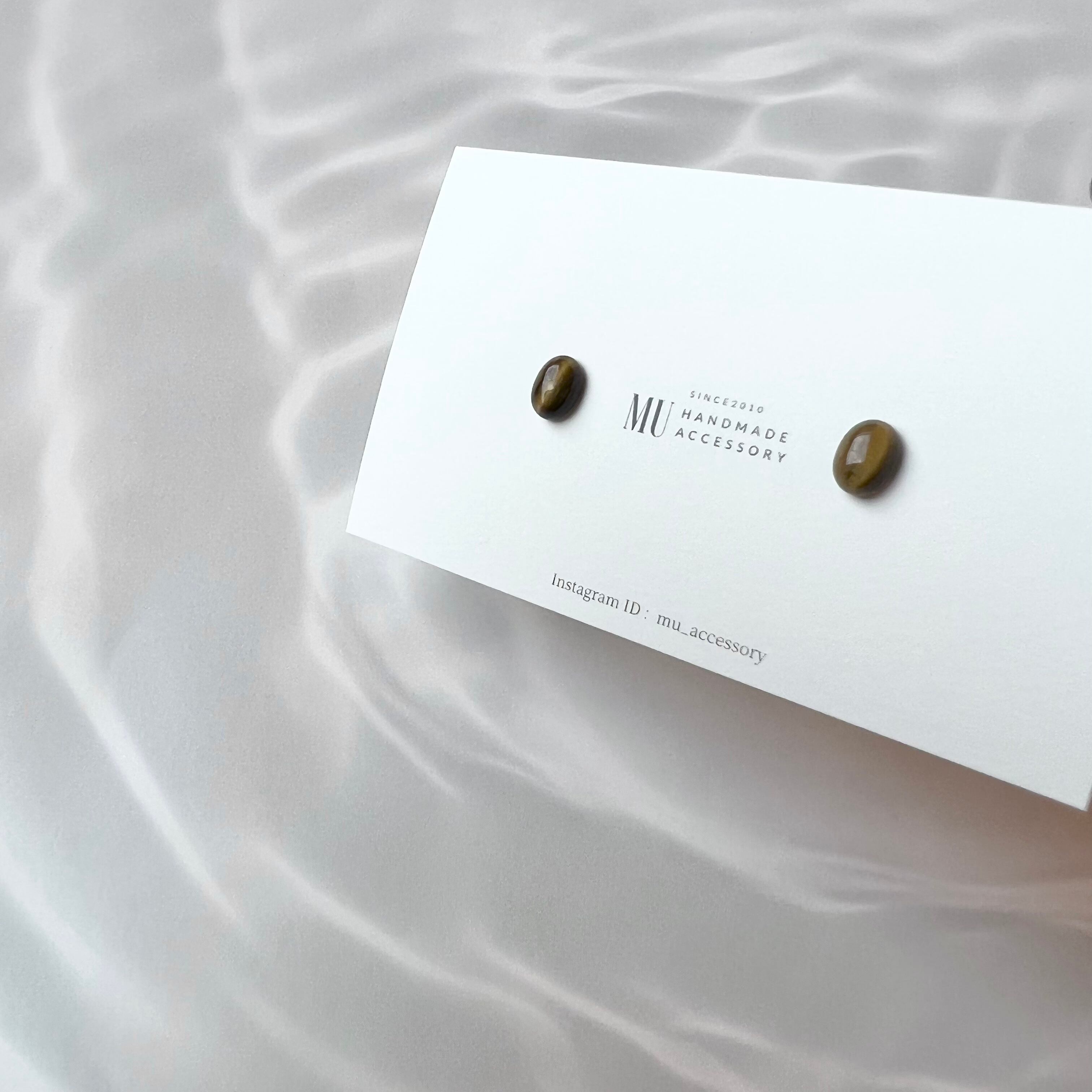 イエロータイガーアイ ミニカボションピアス サージカルステンレス