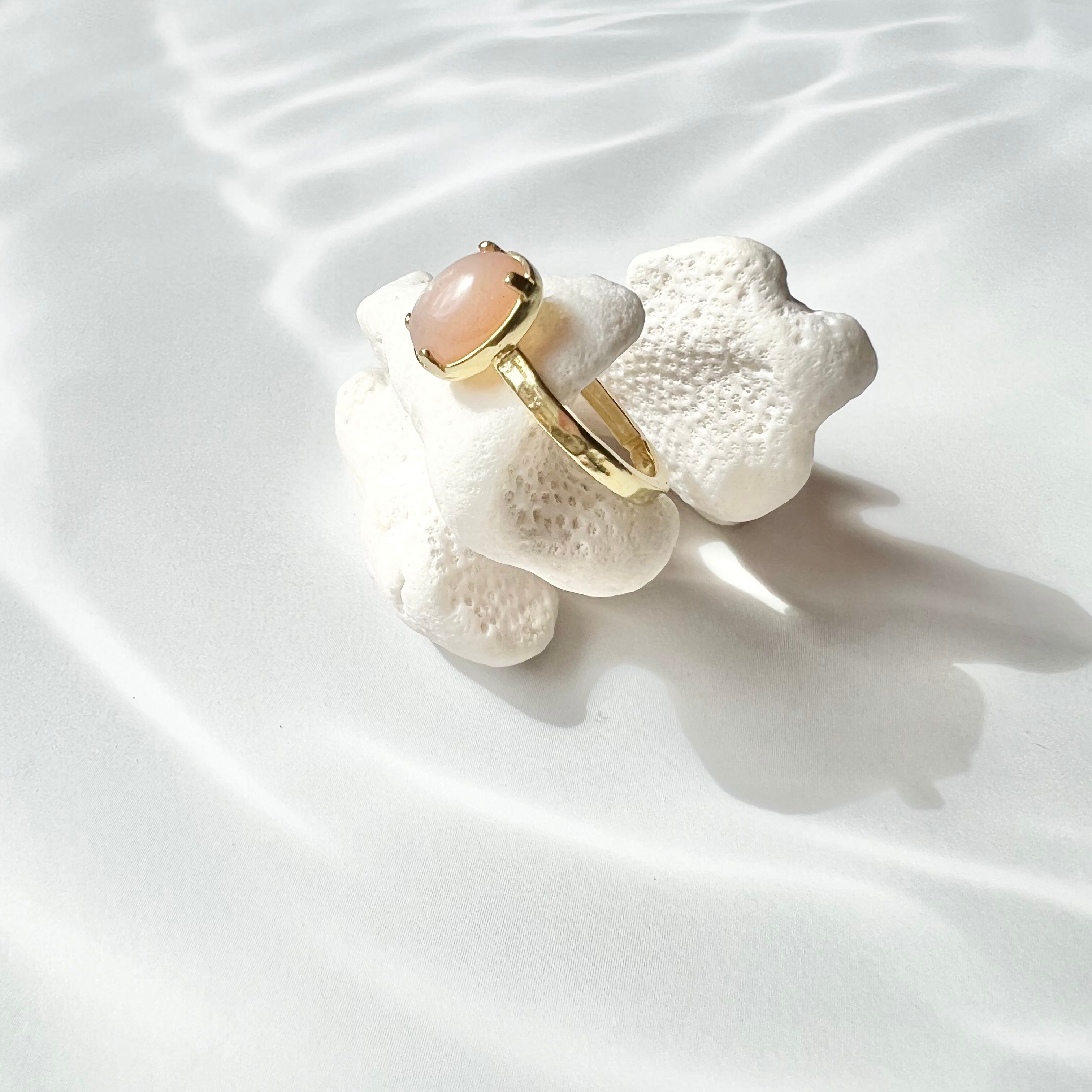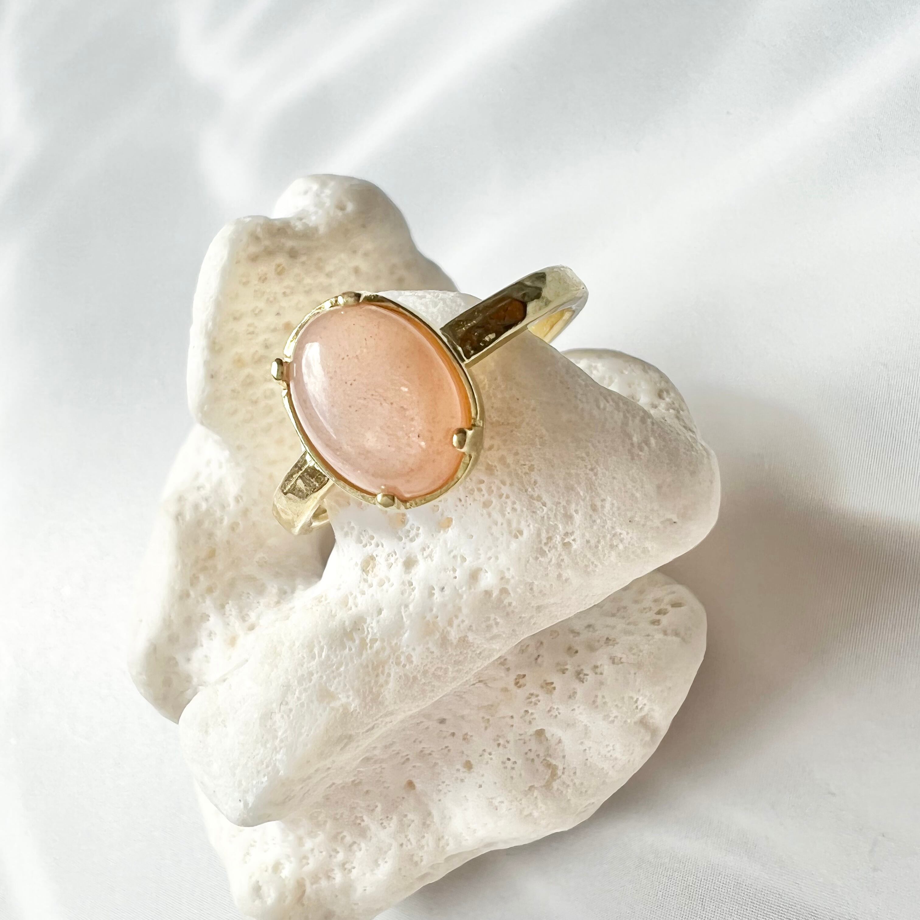 つるんと可愛いインド産のピーチムーンストーンのミニカボションリング。