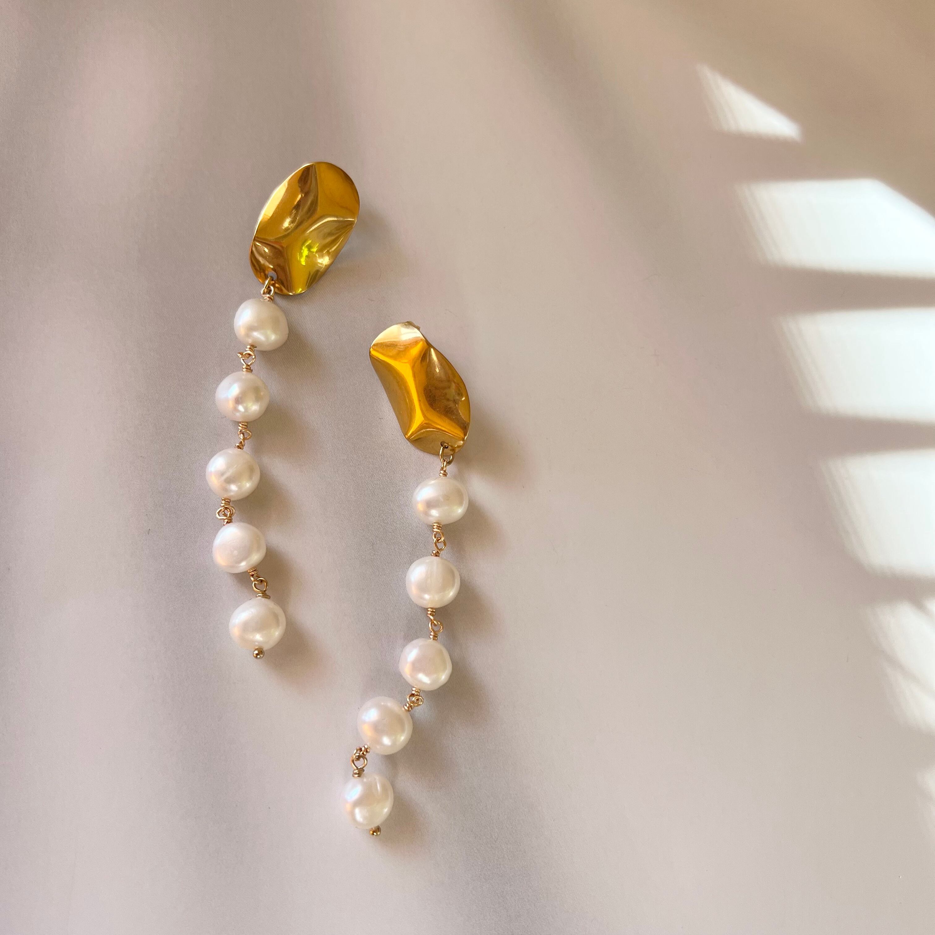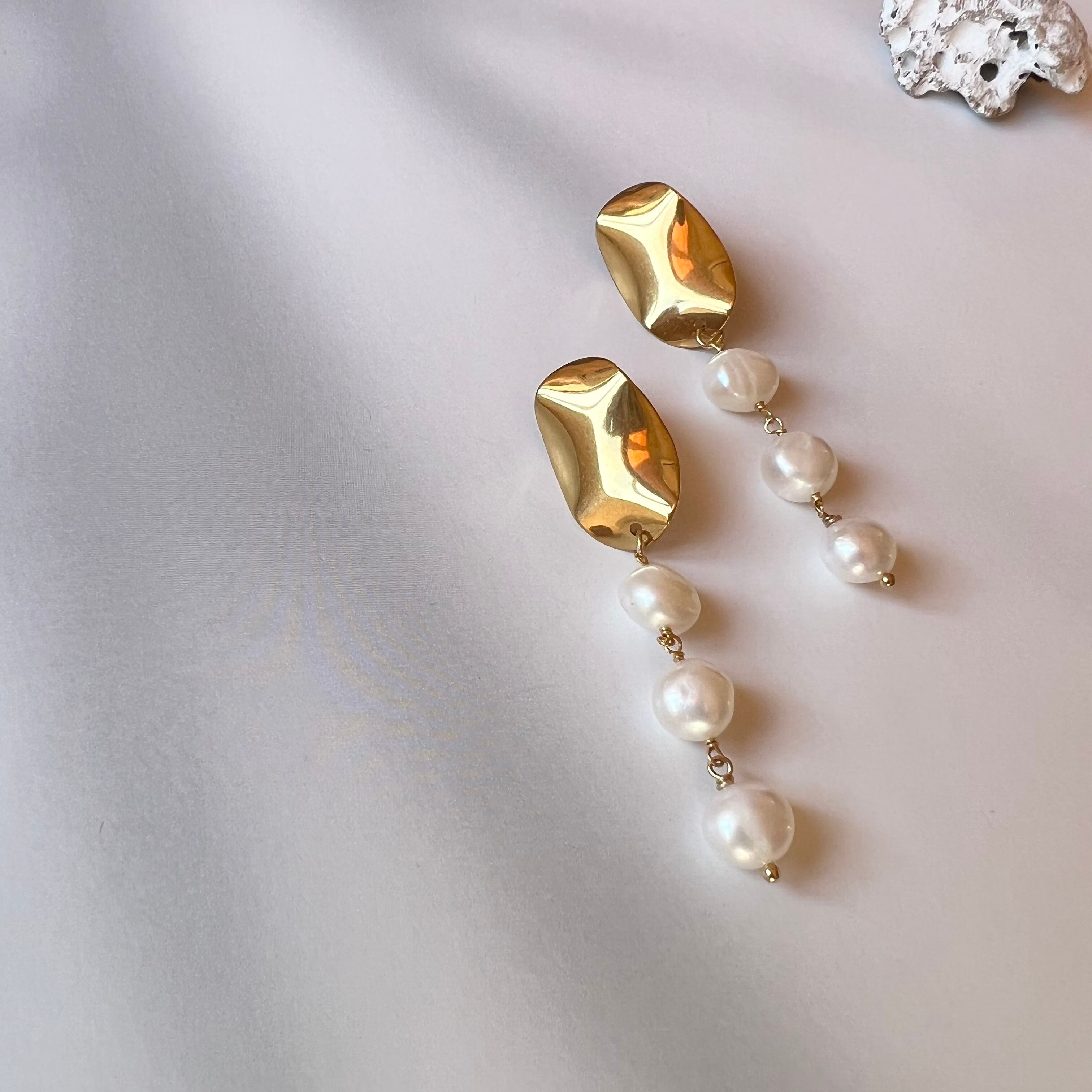 ラフな雰囲気のゴールドプレートに、ぽってり粒感の淡水パールを3粒。