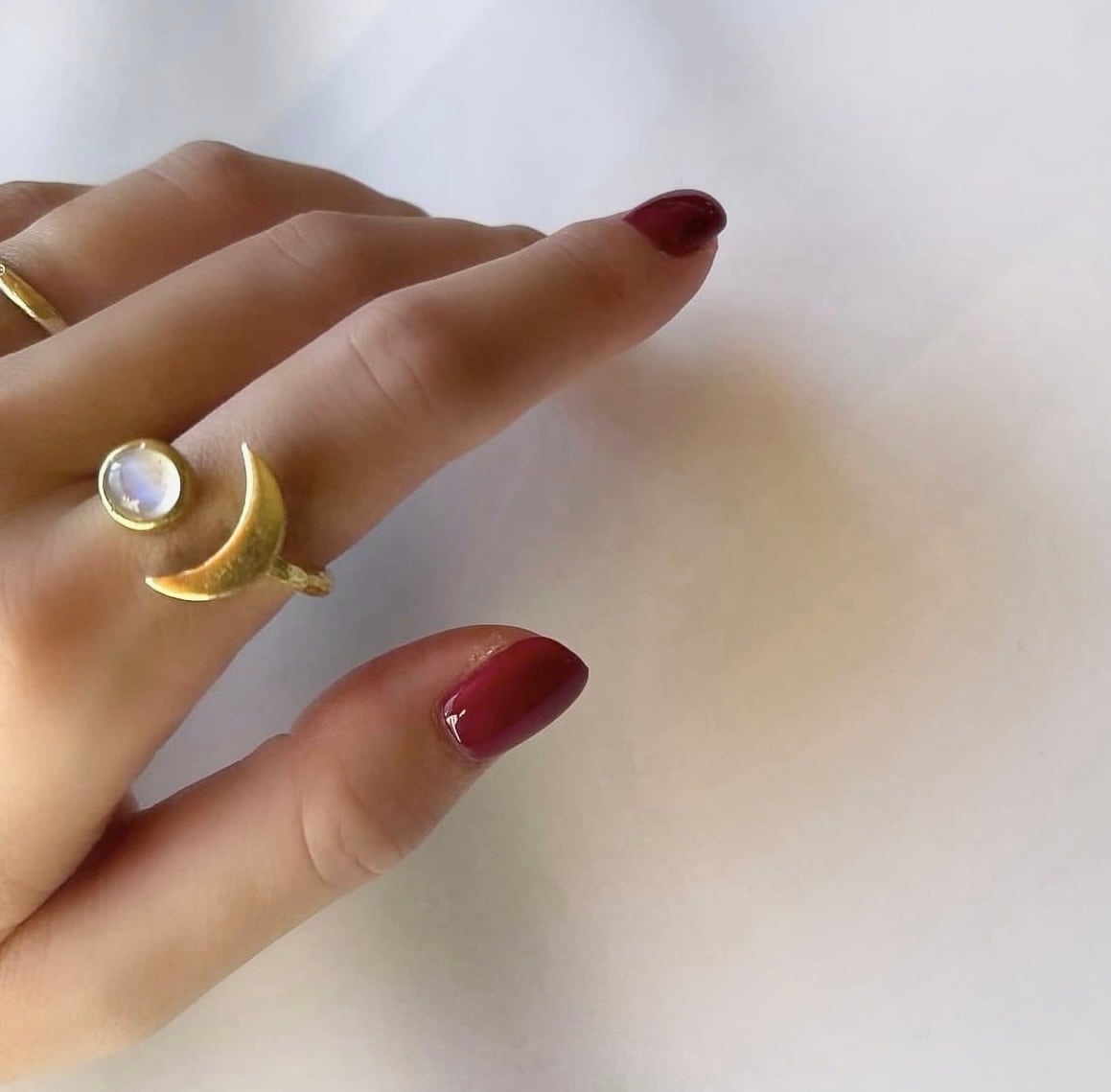 三日月とレインボームーンストーンが可愛い真鍮リング。