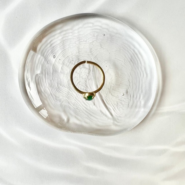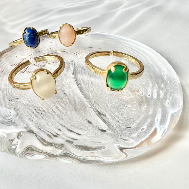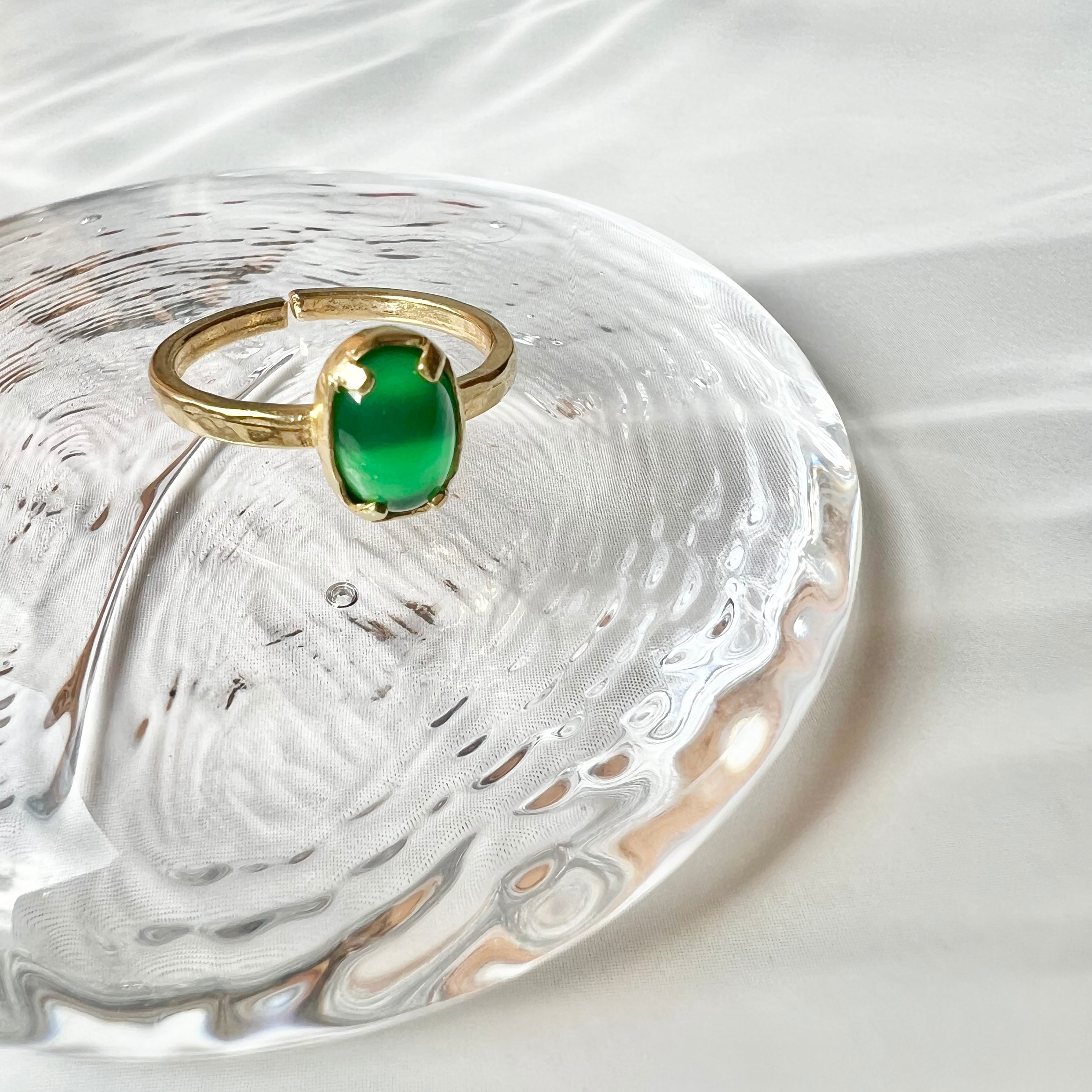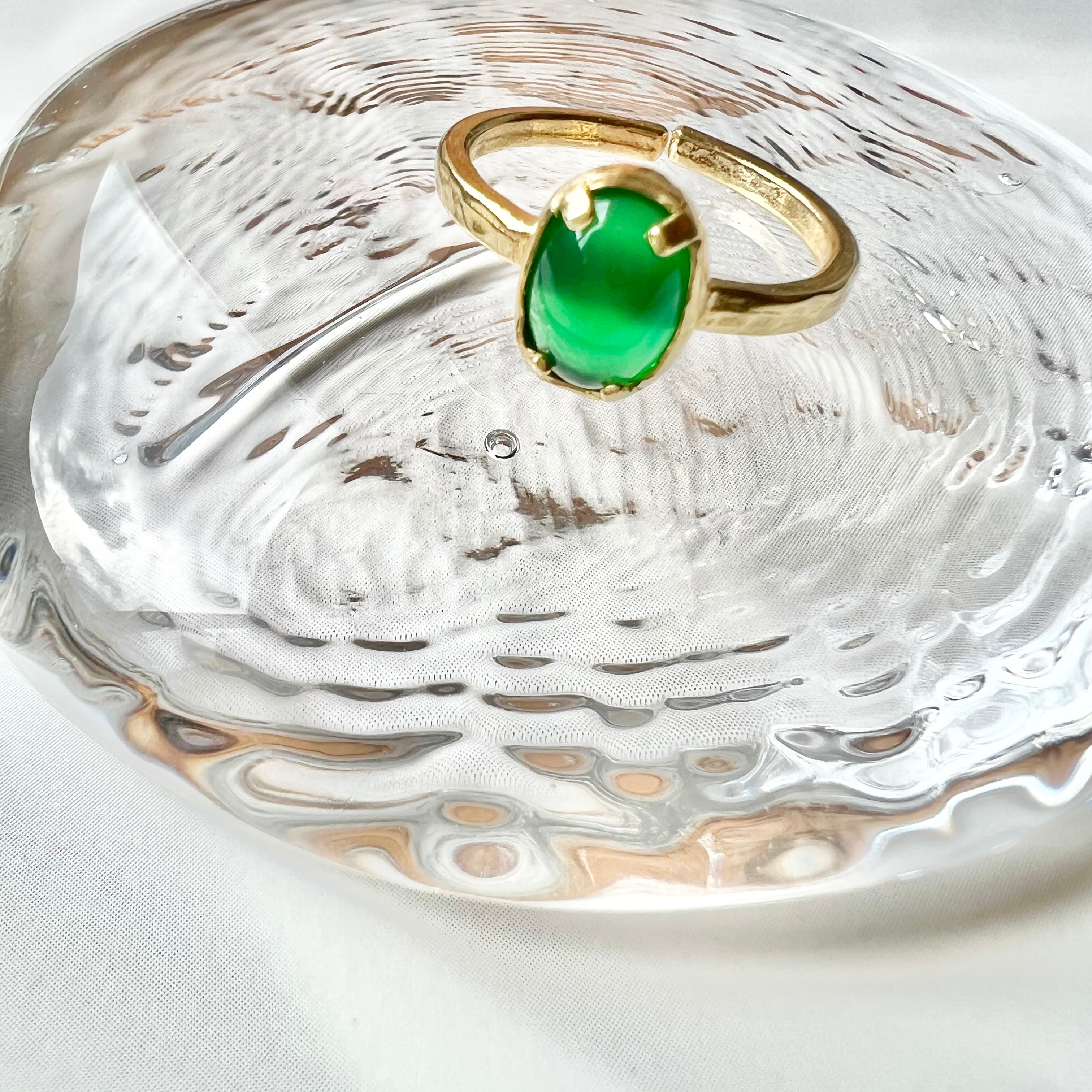 つるんと可愛いグリーンオニキスのミニカボションリング。
