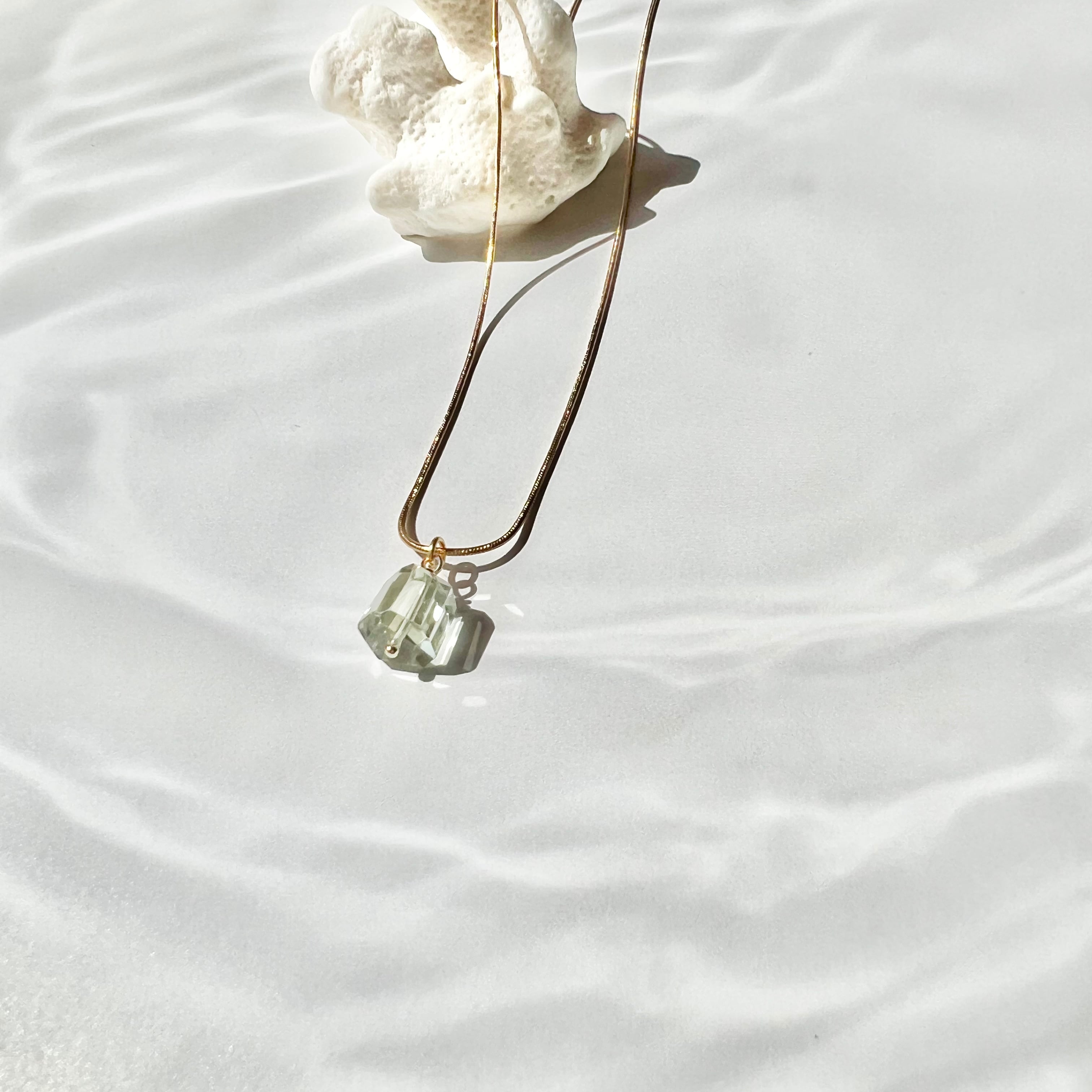 \ 再販 /グリーンアメジストのスネークチェーンネックレス サージカルステンレス
