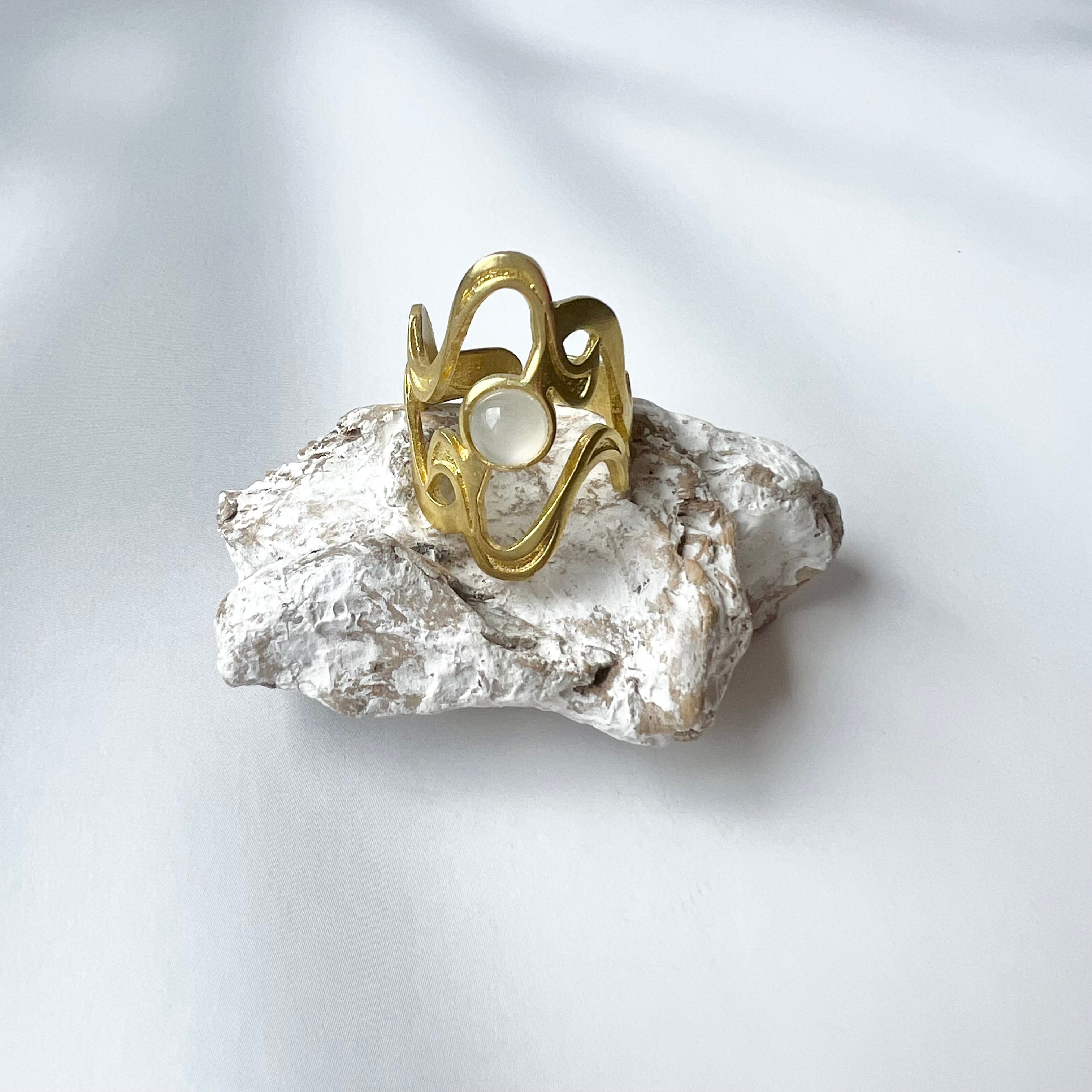 \\映画着用//波打ち真鍮リング<ムーンストーン>