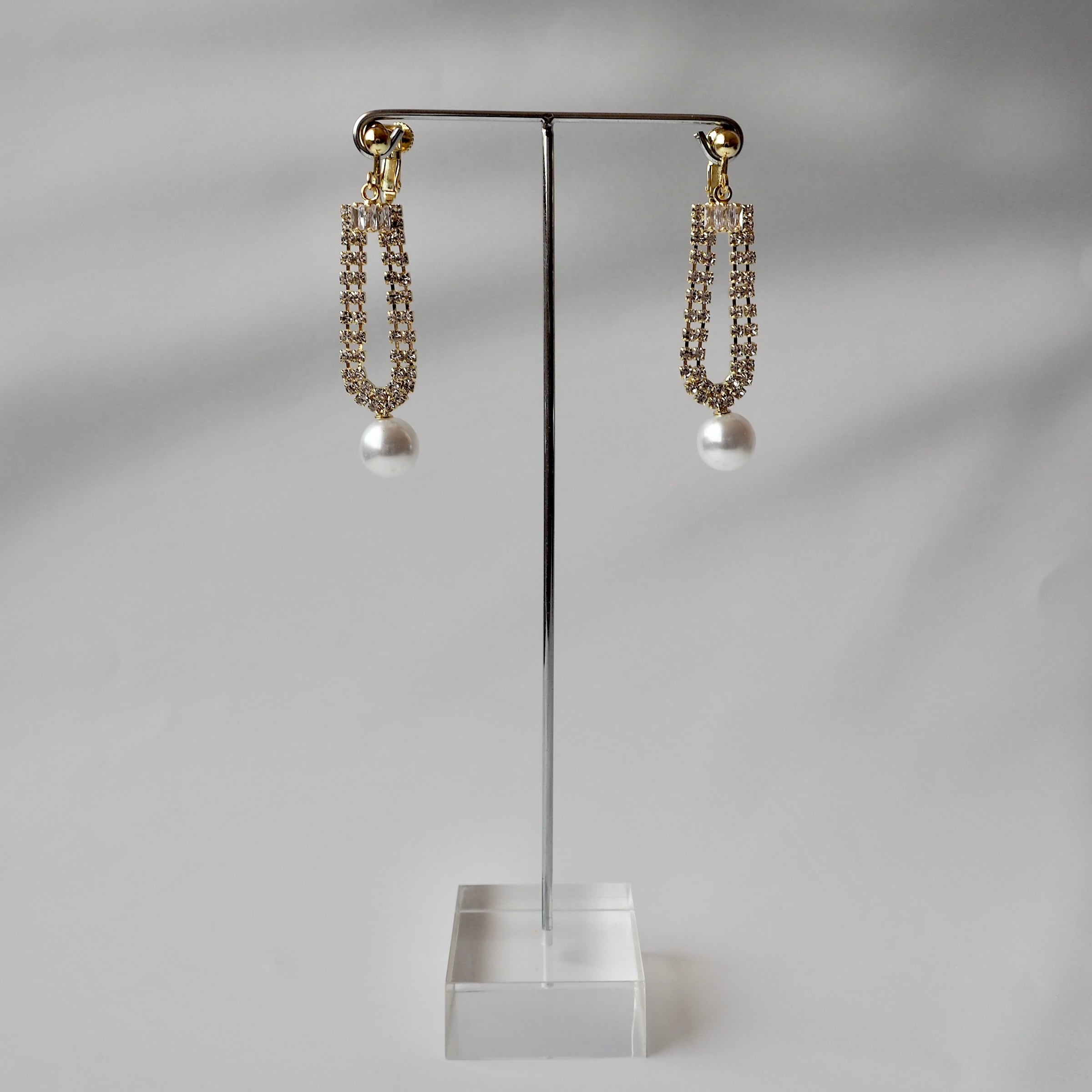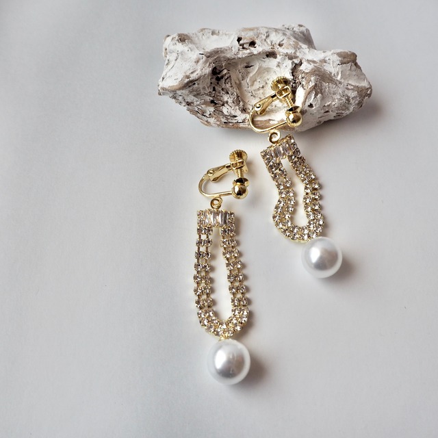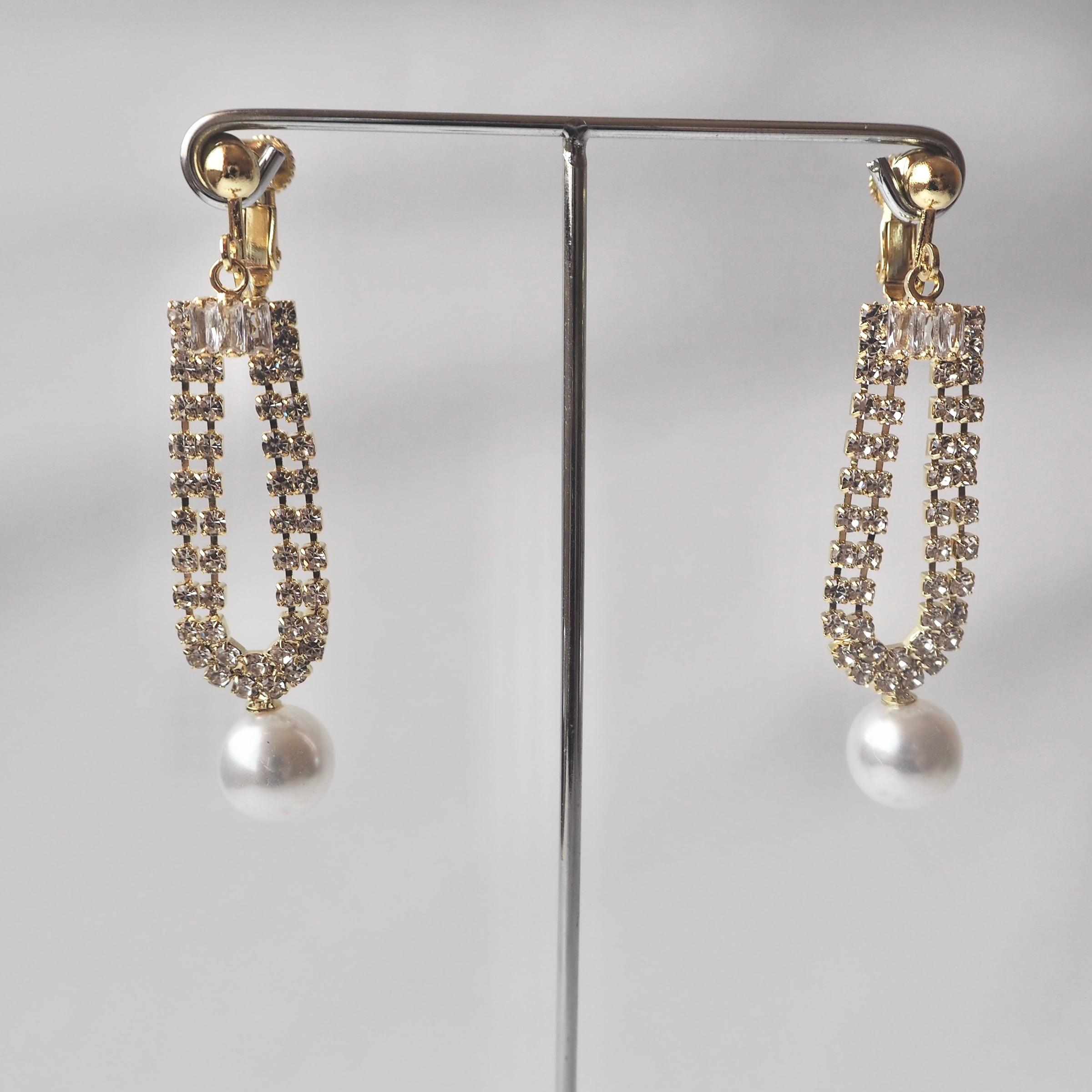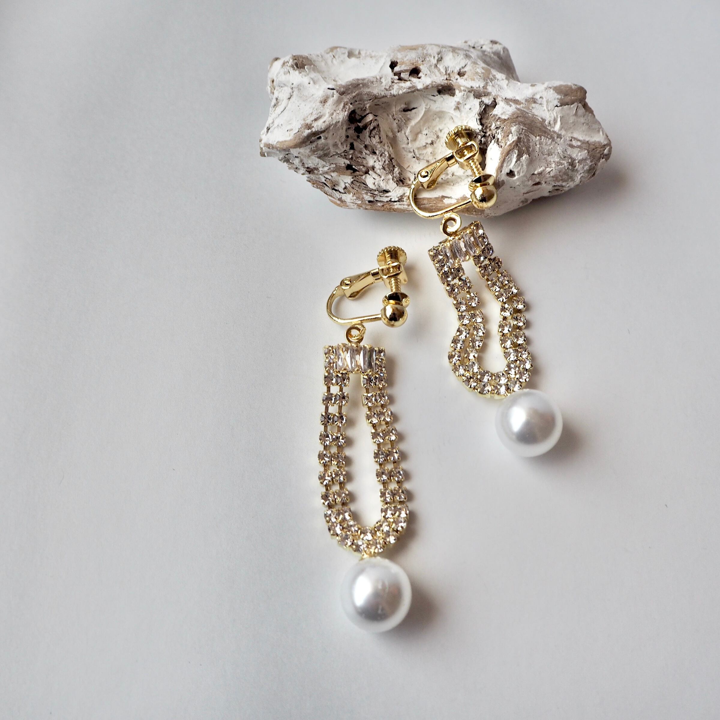 \\Media着用//ラインストーンパールピアス・イヤリング