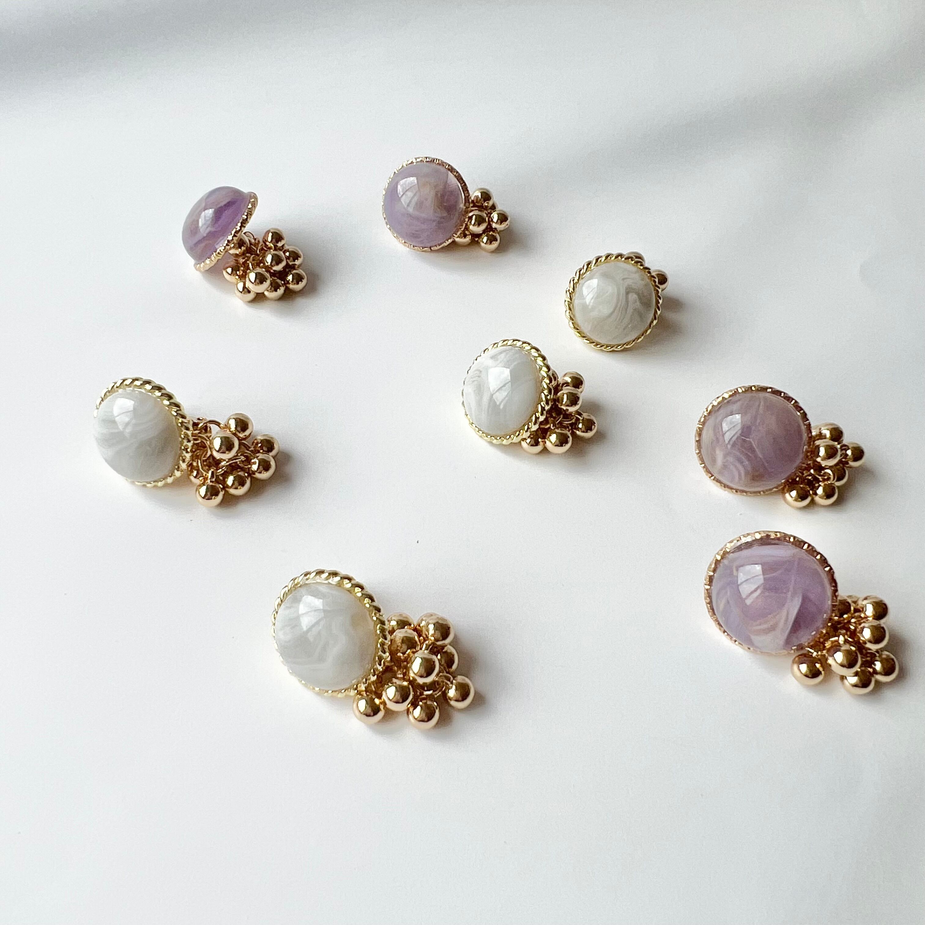 〈ホワイトグレー〉カボションつぶつぶピアス / イヤリング