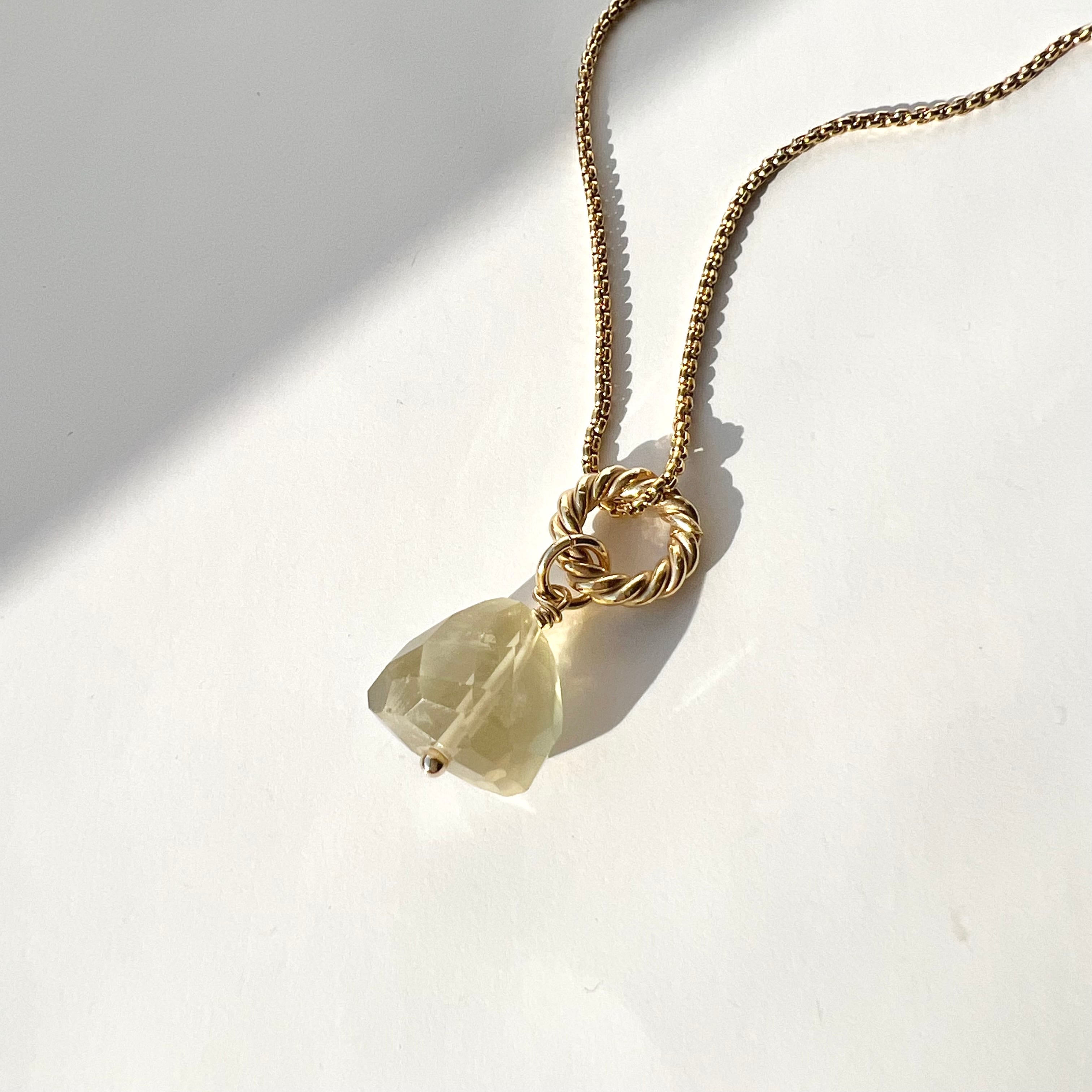 レモンクォーツ×ボックスチェーンネックレス サージカルステンレス