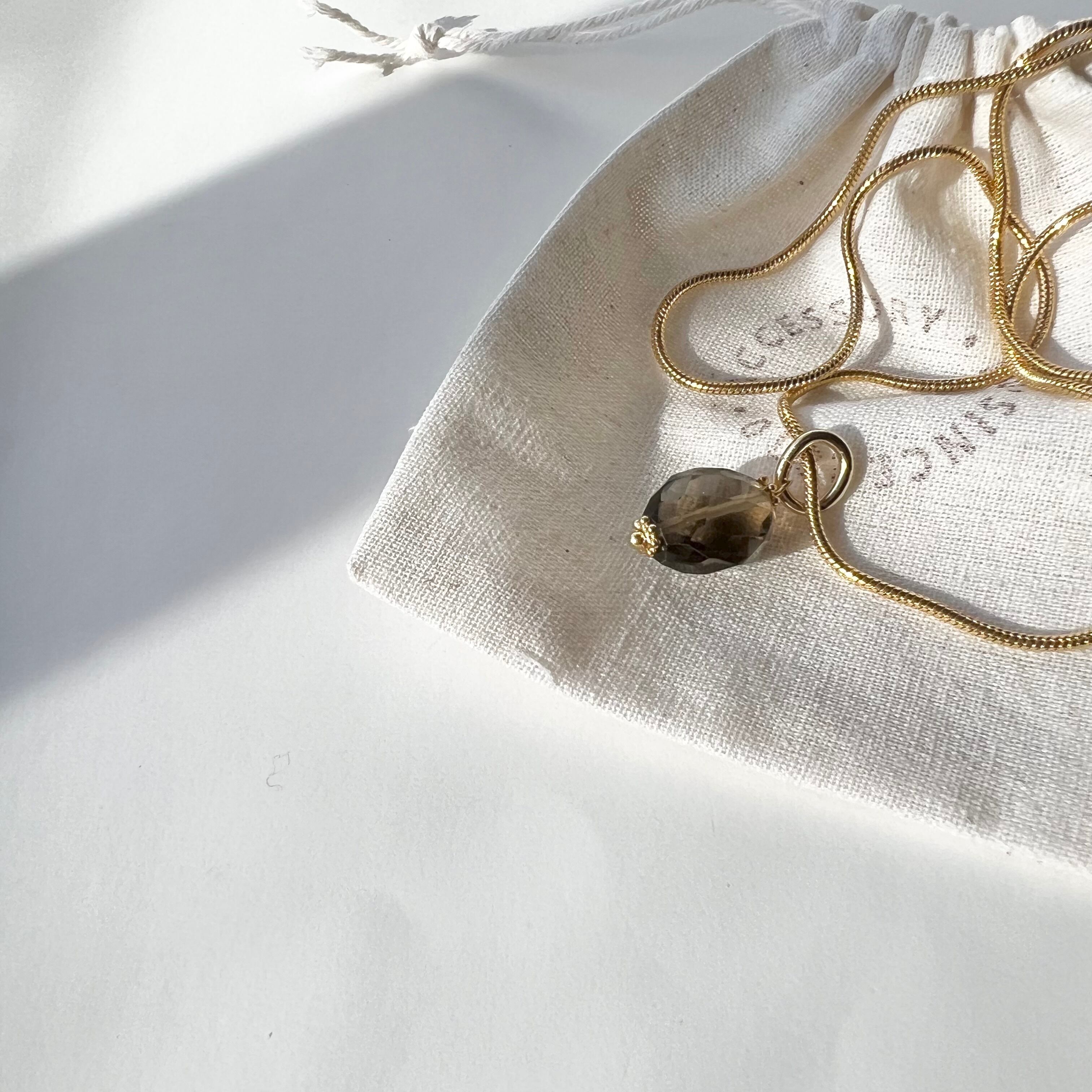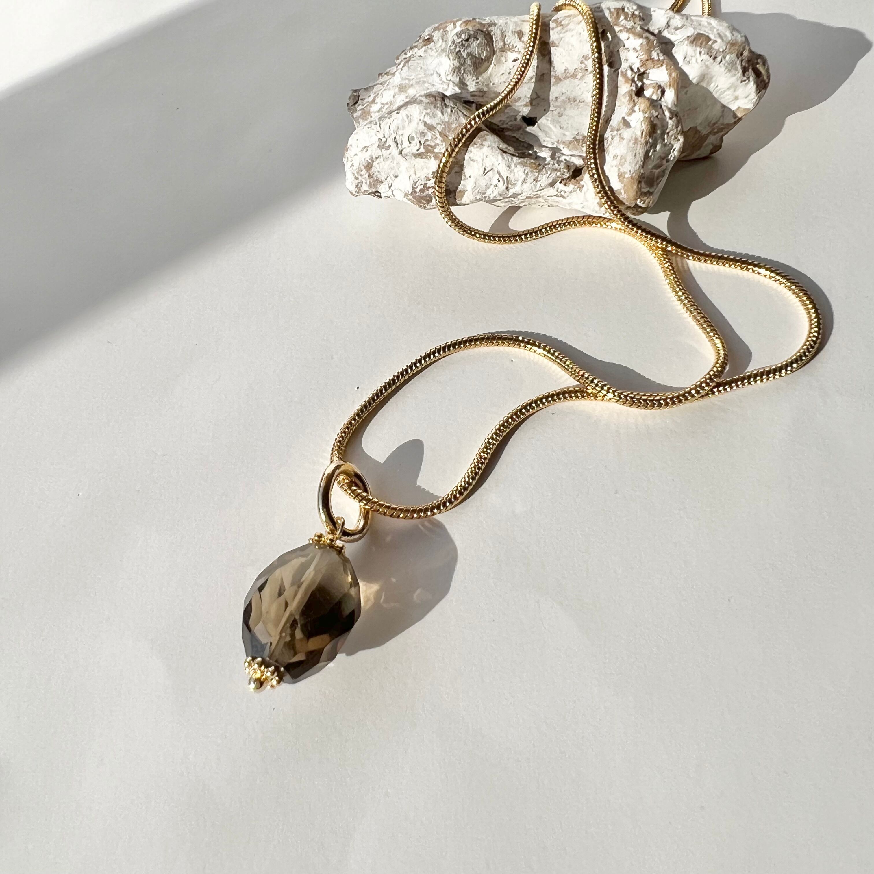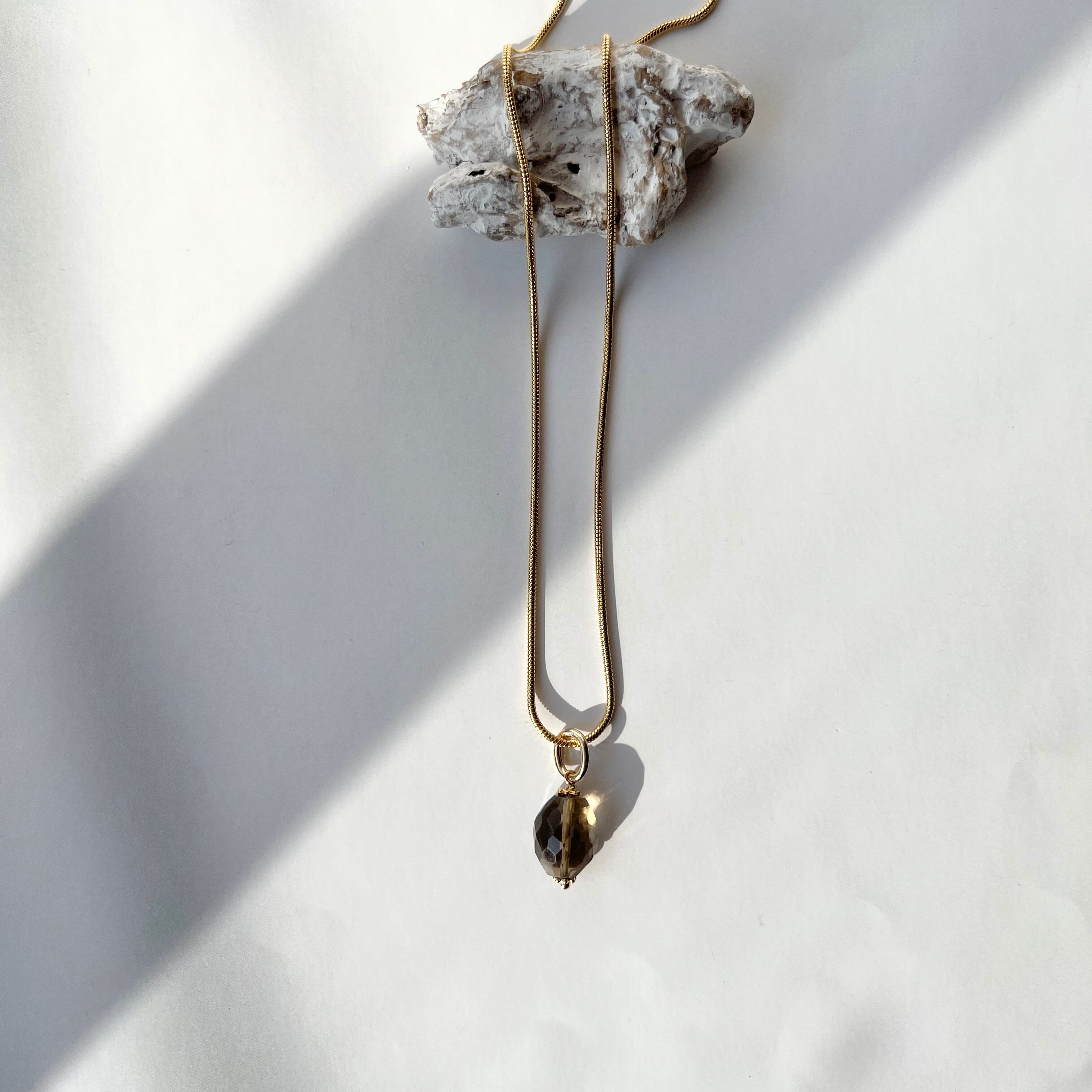 \再販/ スモーキークォーツ×スネークチェーンネックレス サージカルステンレス