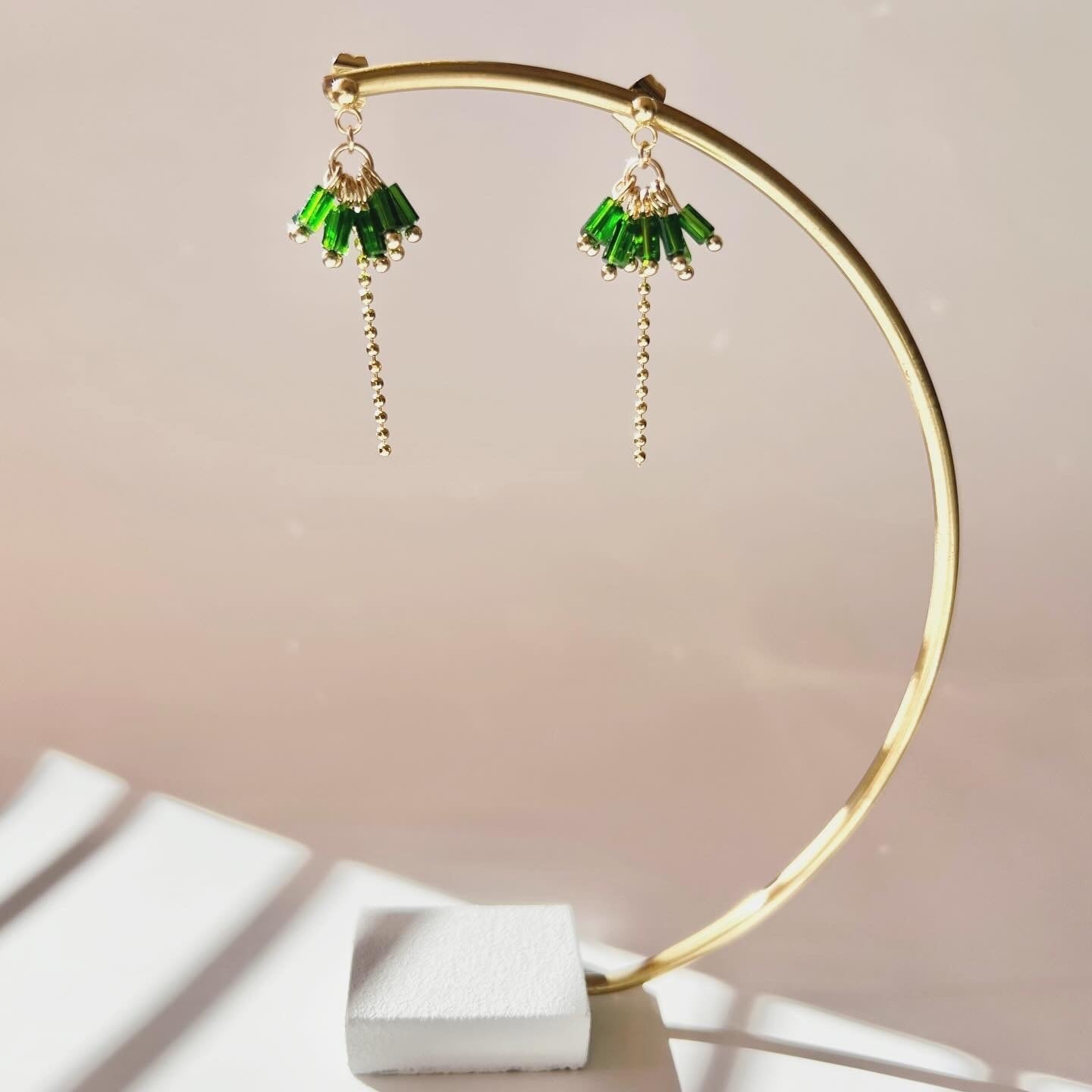 \\映画着用//グリーンガラスビーズピアス ・イヤリング