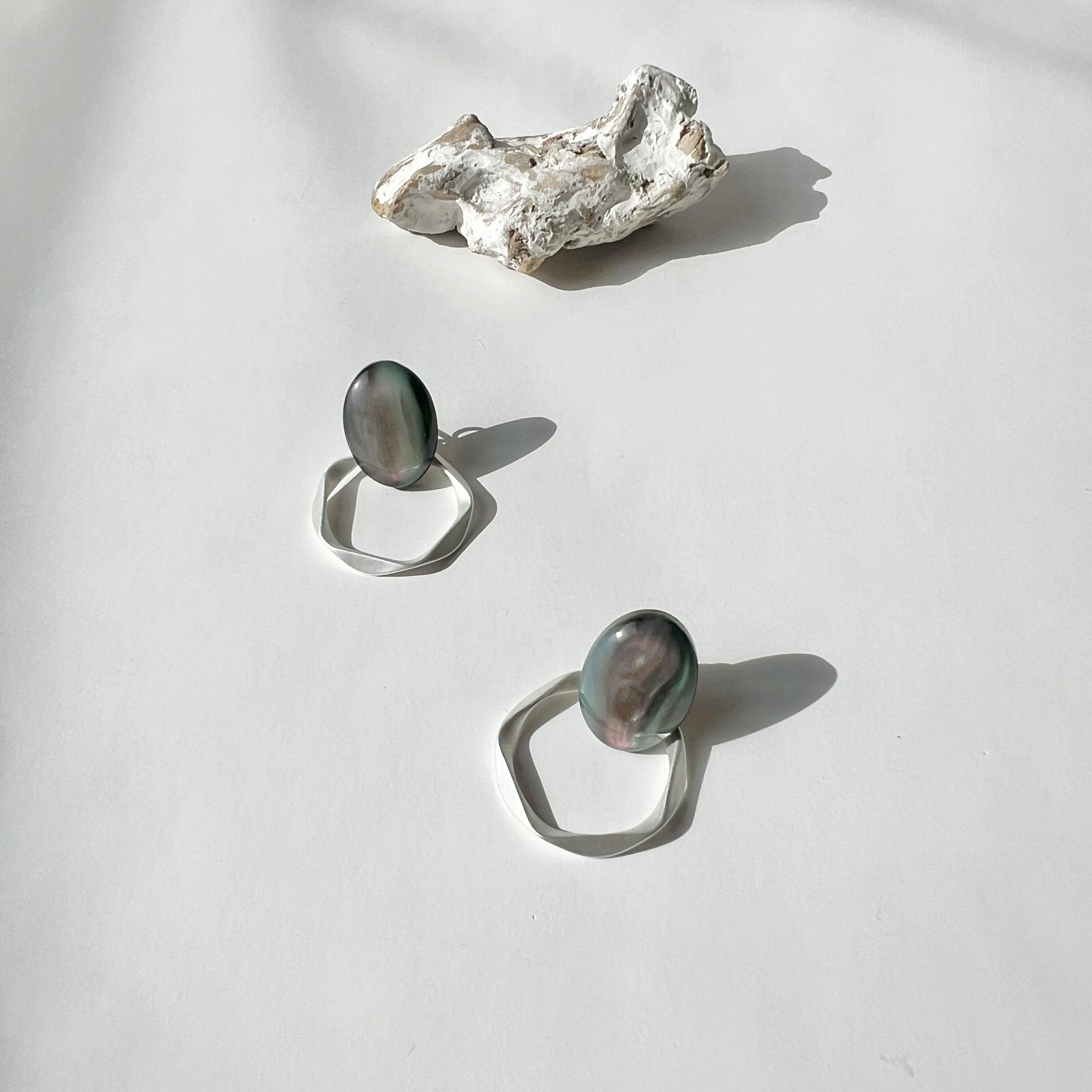 ブラックベースにオーロラのようなカラーが魅力的なカボションに、