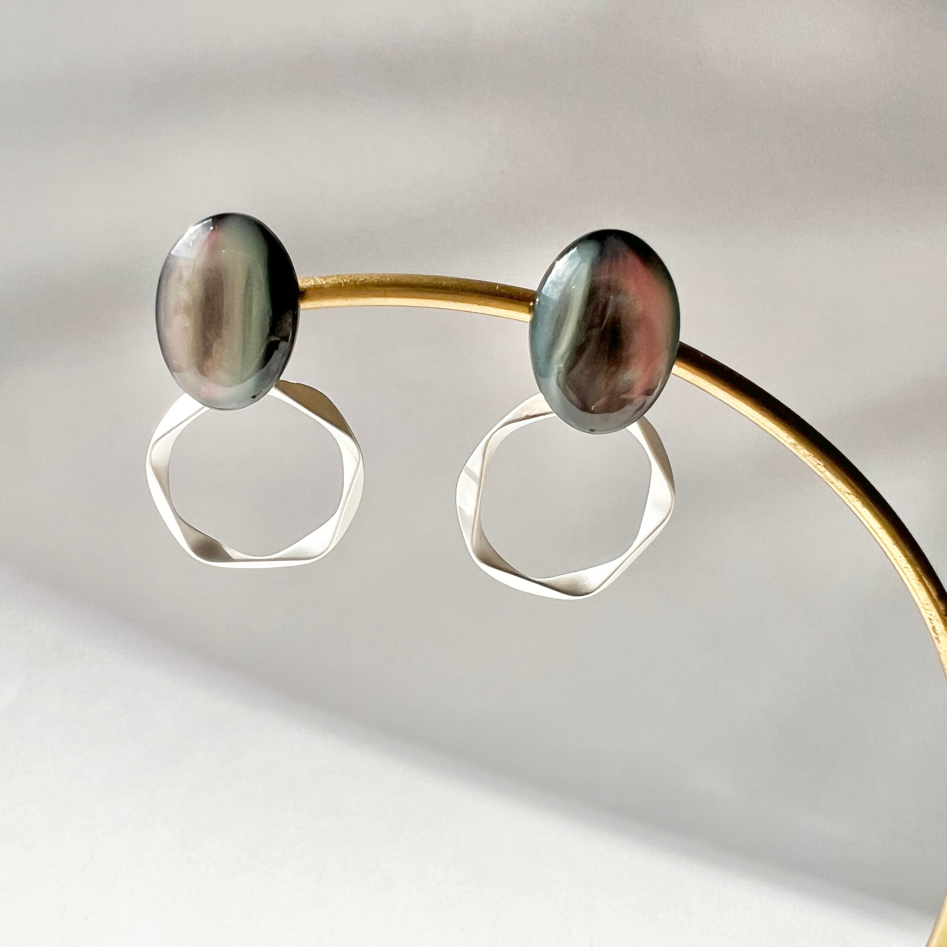オーロラ×マットシルバーフープピアス ・イヤリング