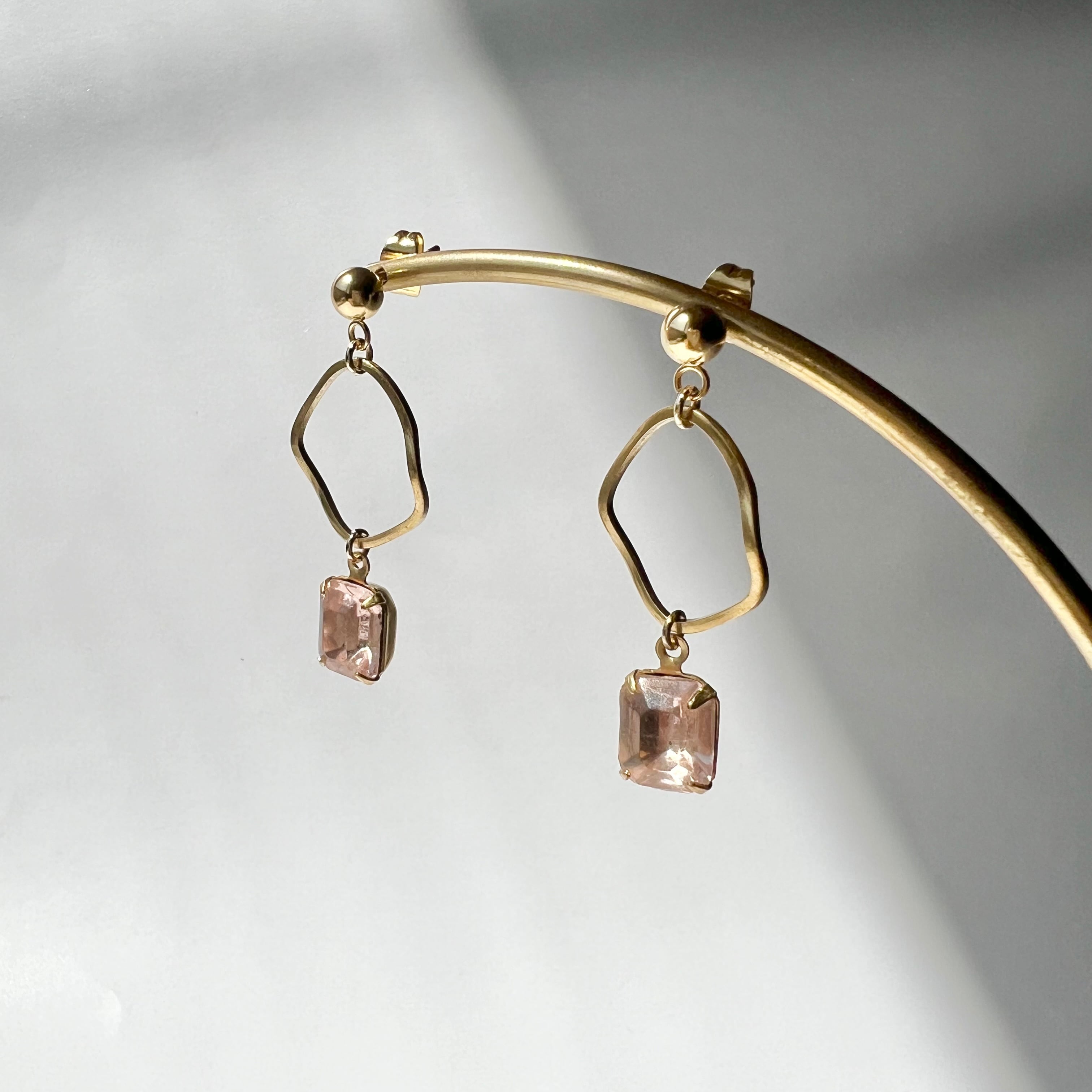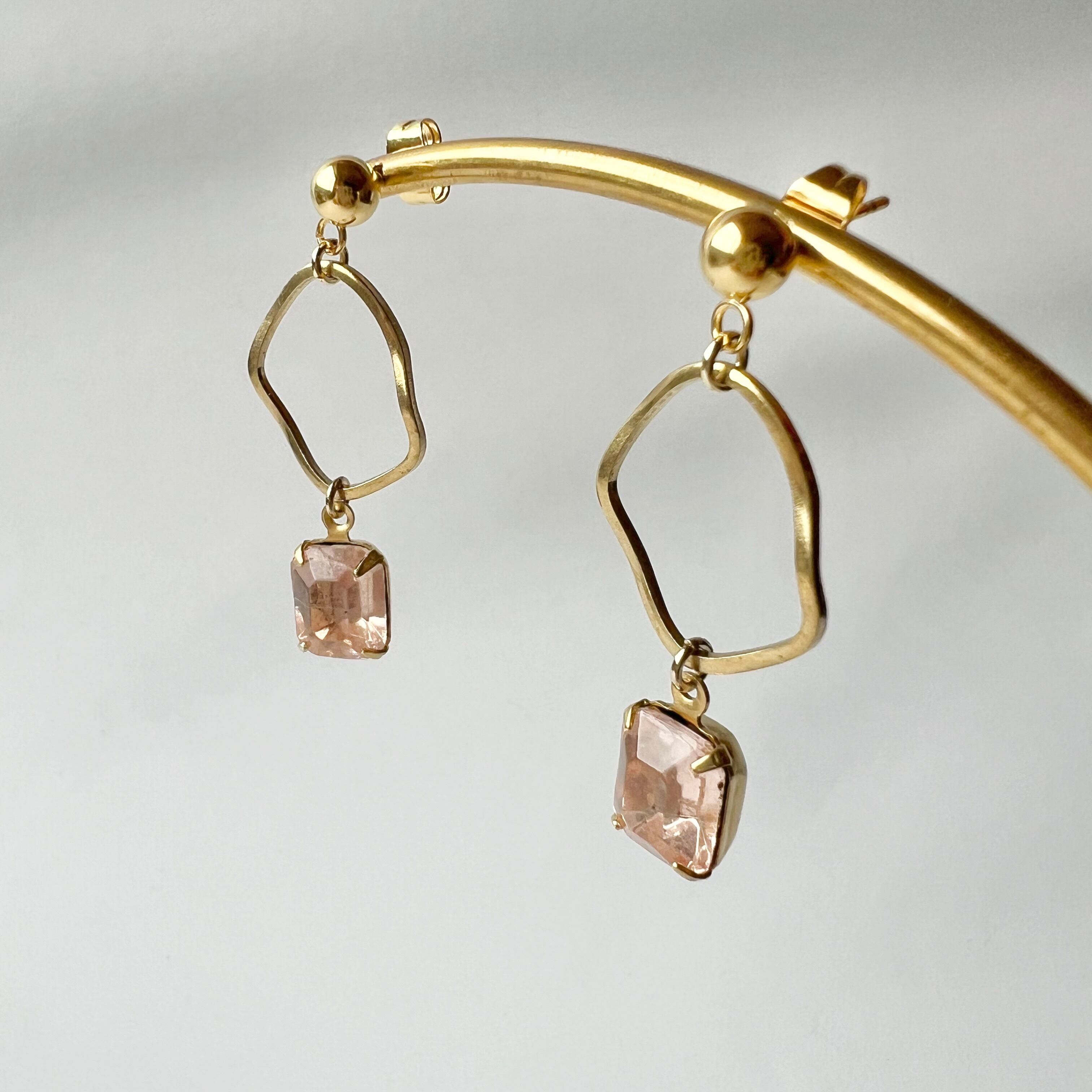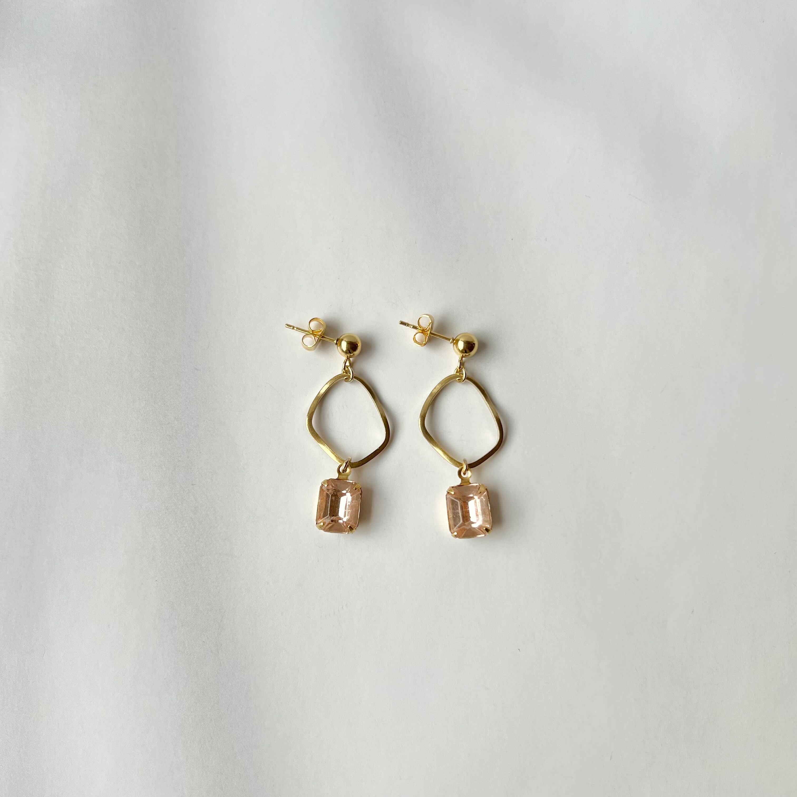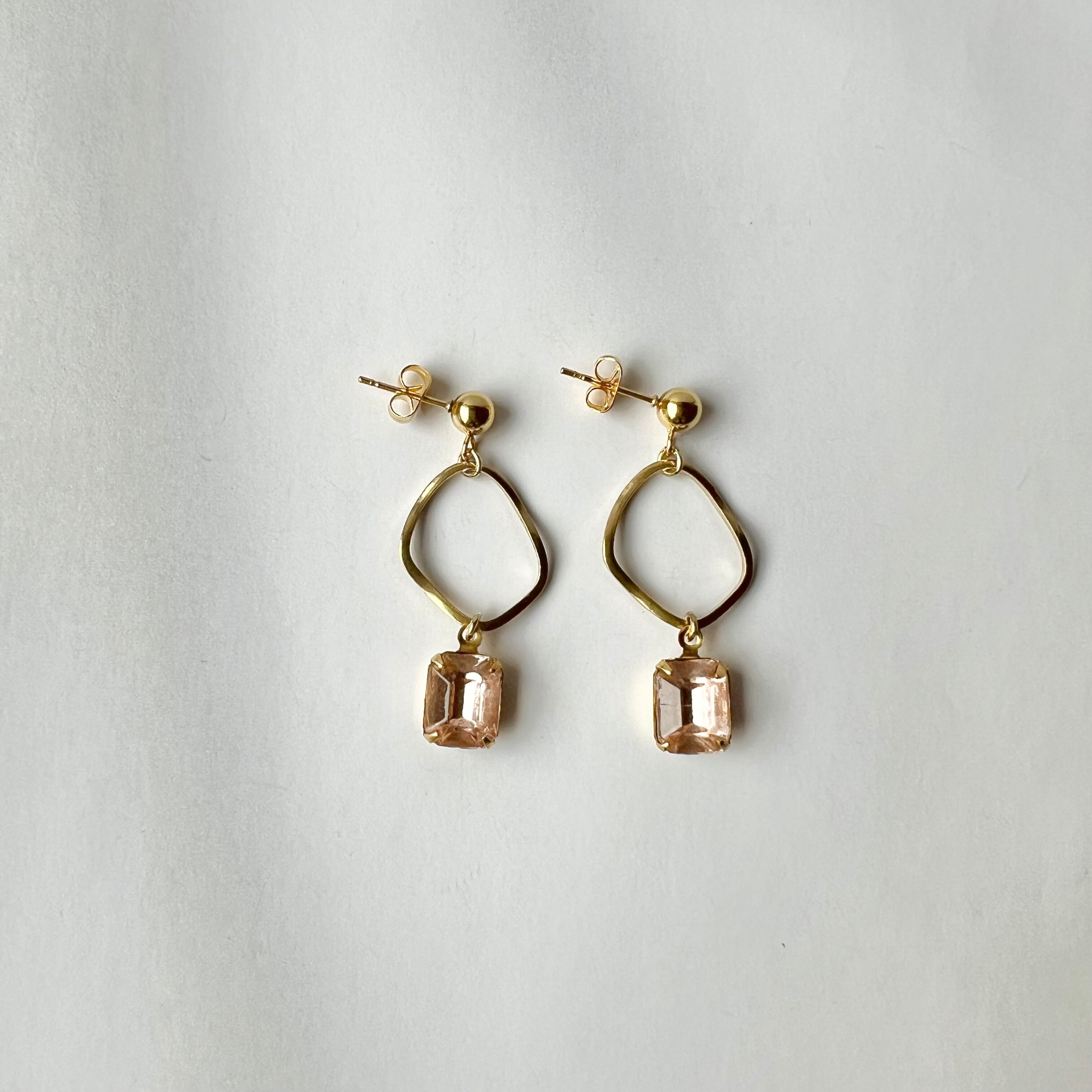 \\TV・雑誌着用//〈ピンク〉ヴィンテージガラス真鍮フープピアス・イヤリング