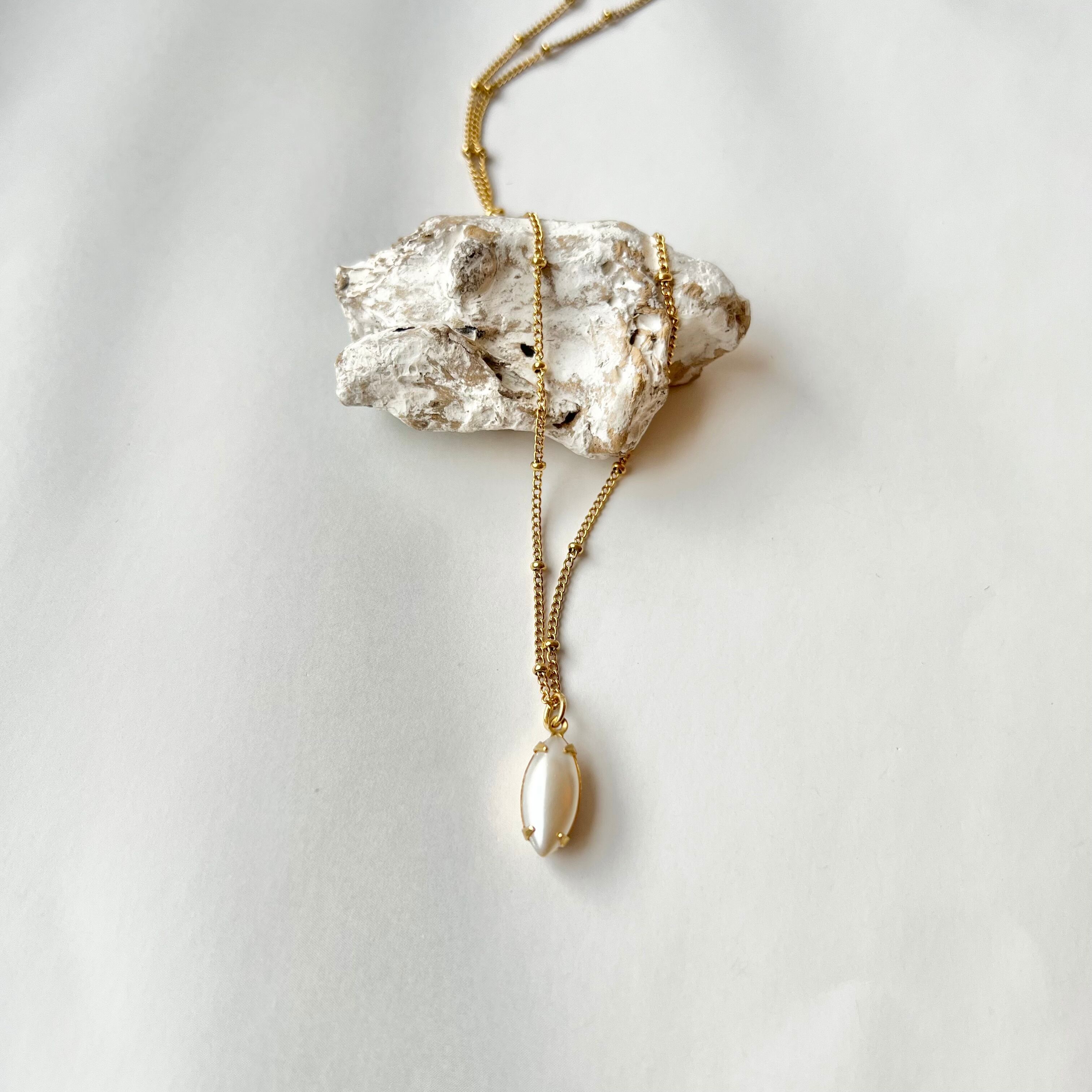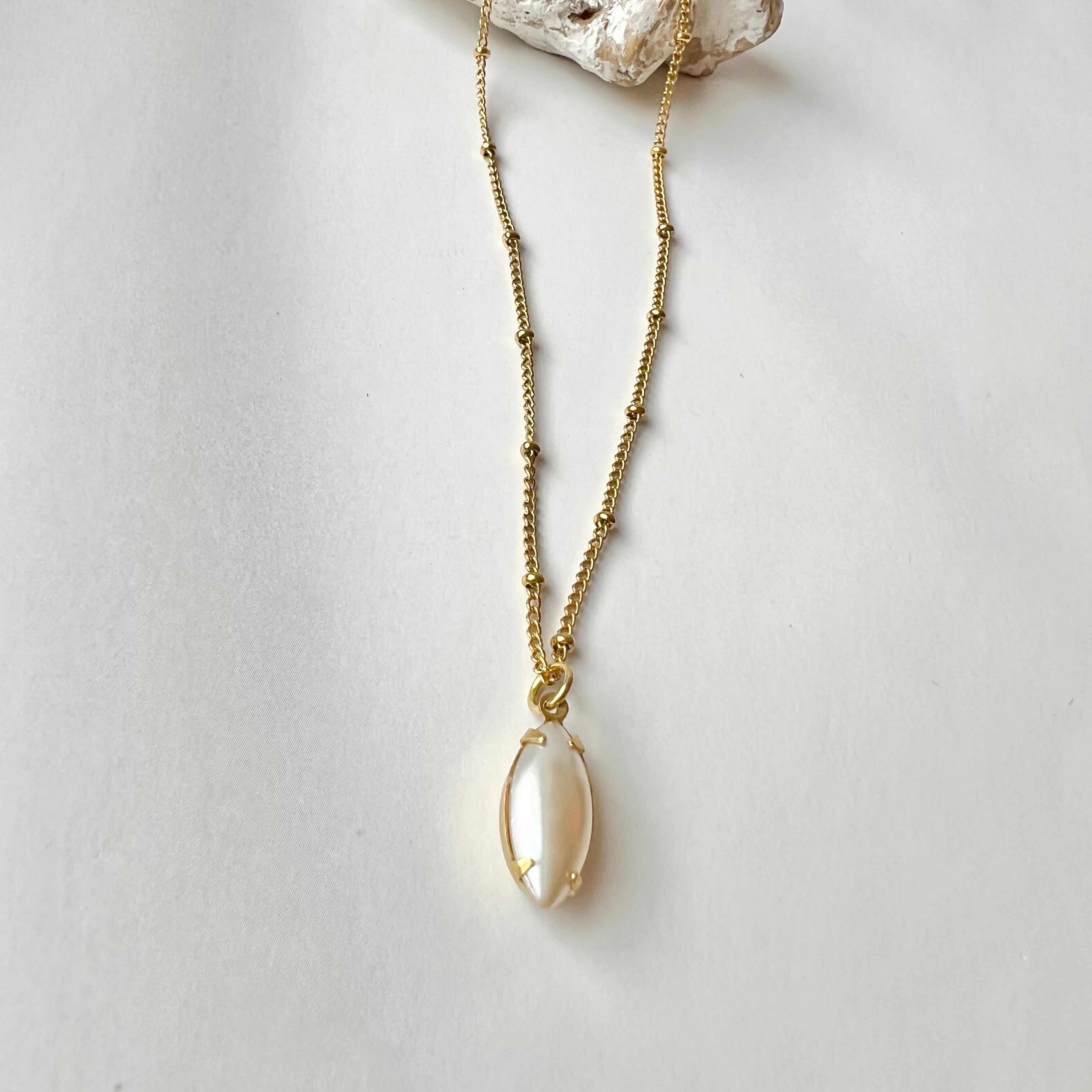〈パール〉ヴィンテージガラス×ネックレス サージカルステンレス