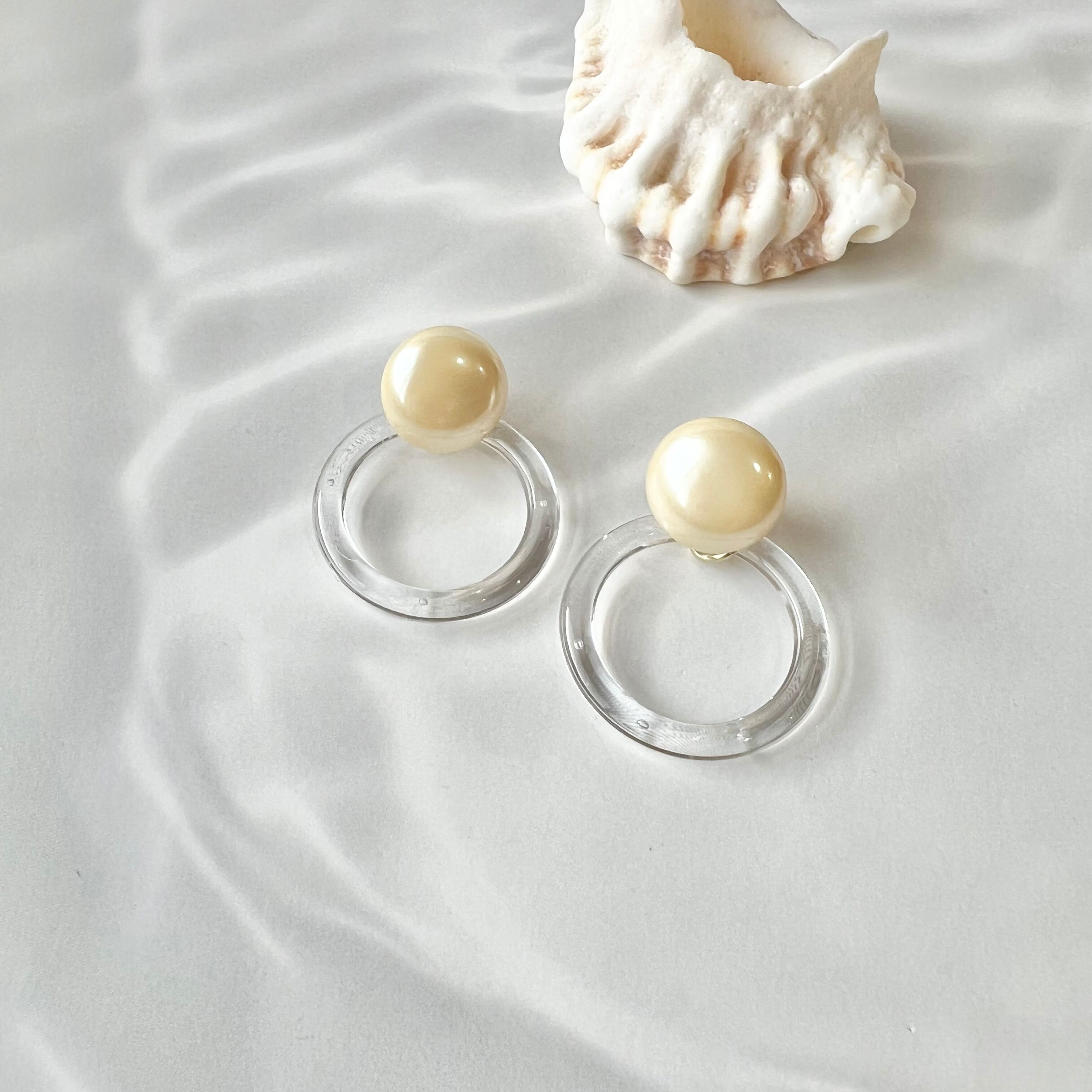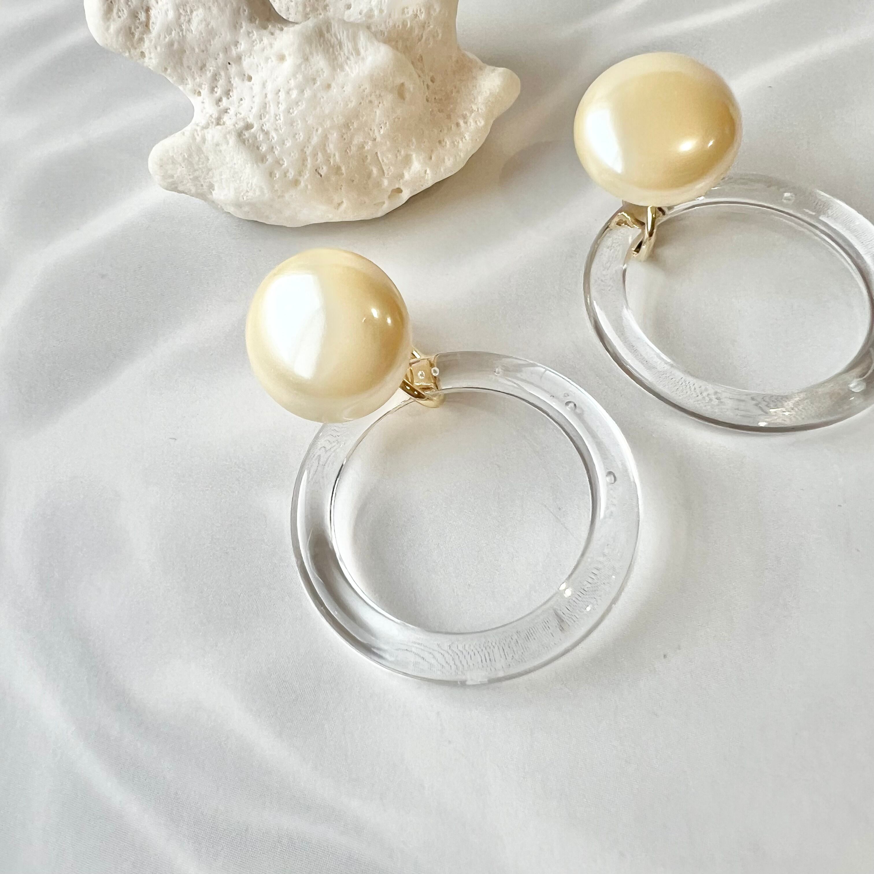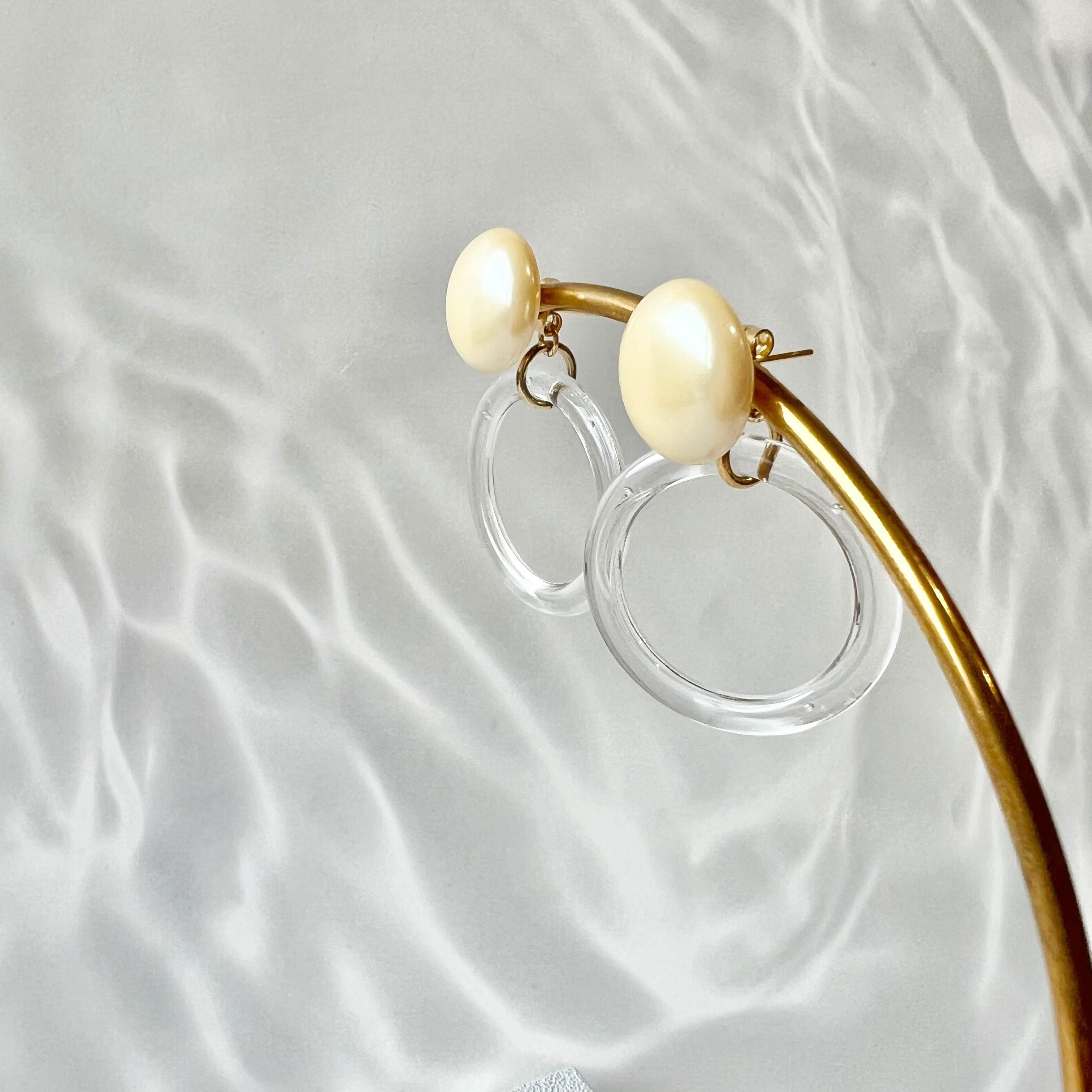 <ヴィンテージ>パール×クリアフープピアス・イヤリング