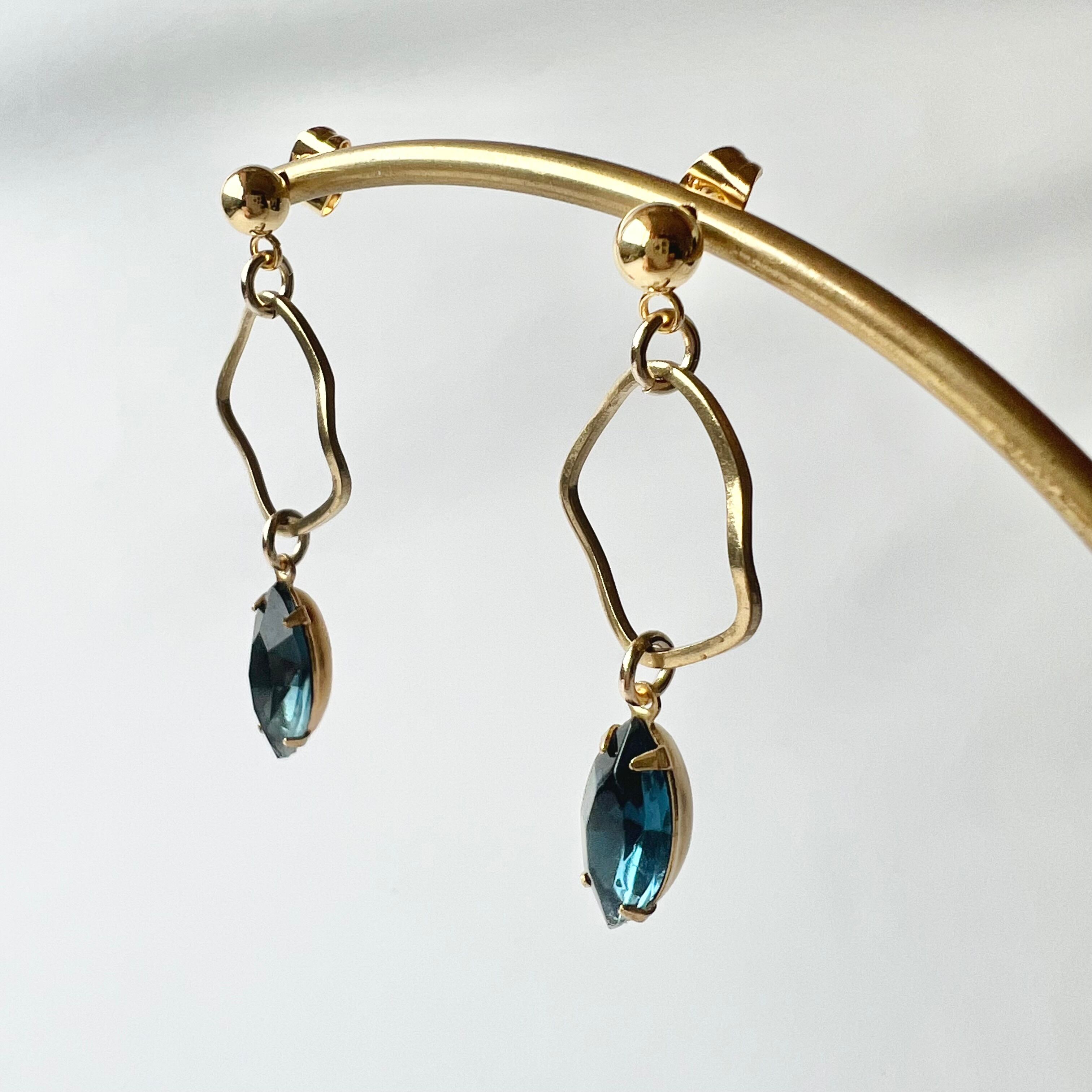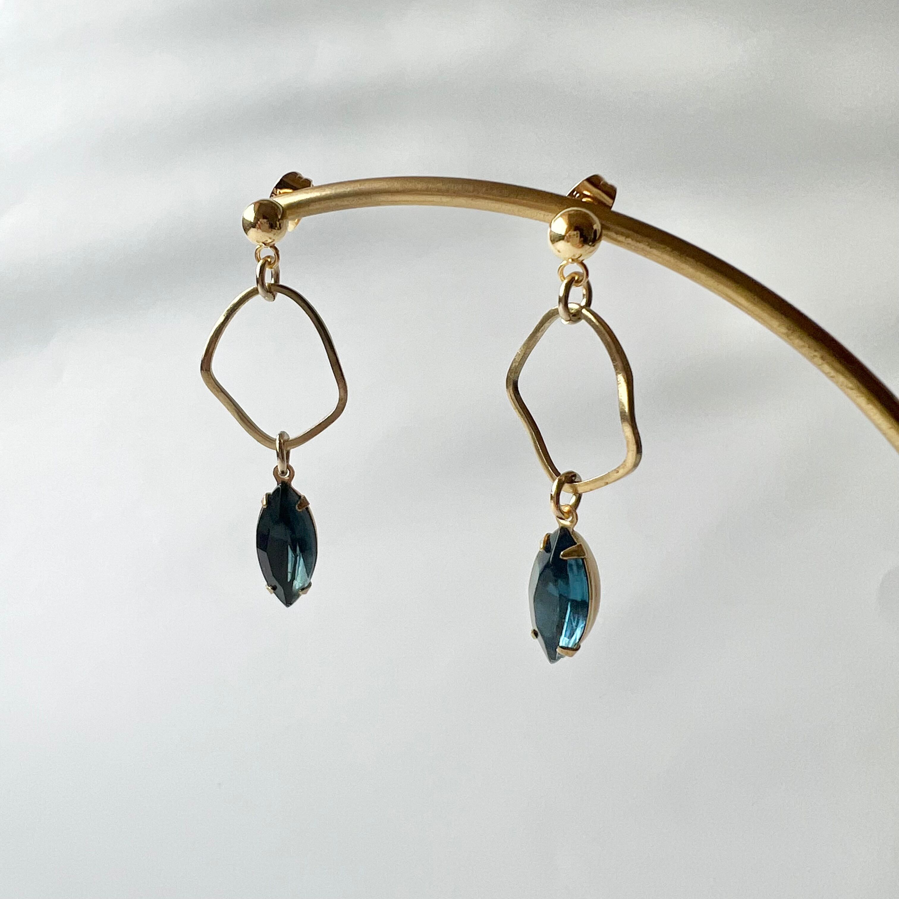 〈ネイビー〉ヴィンテージガラス真鍮フープピアス・イヤリング