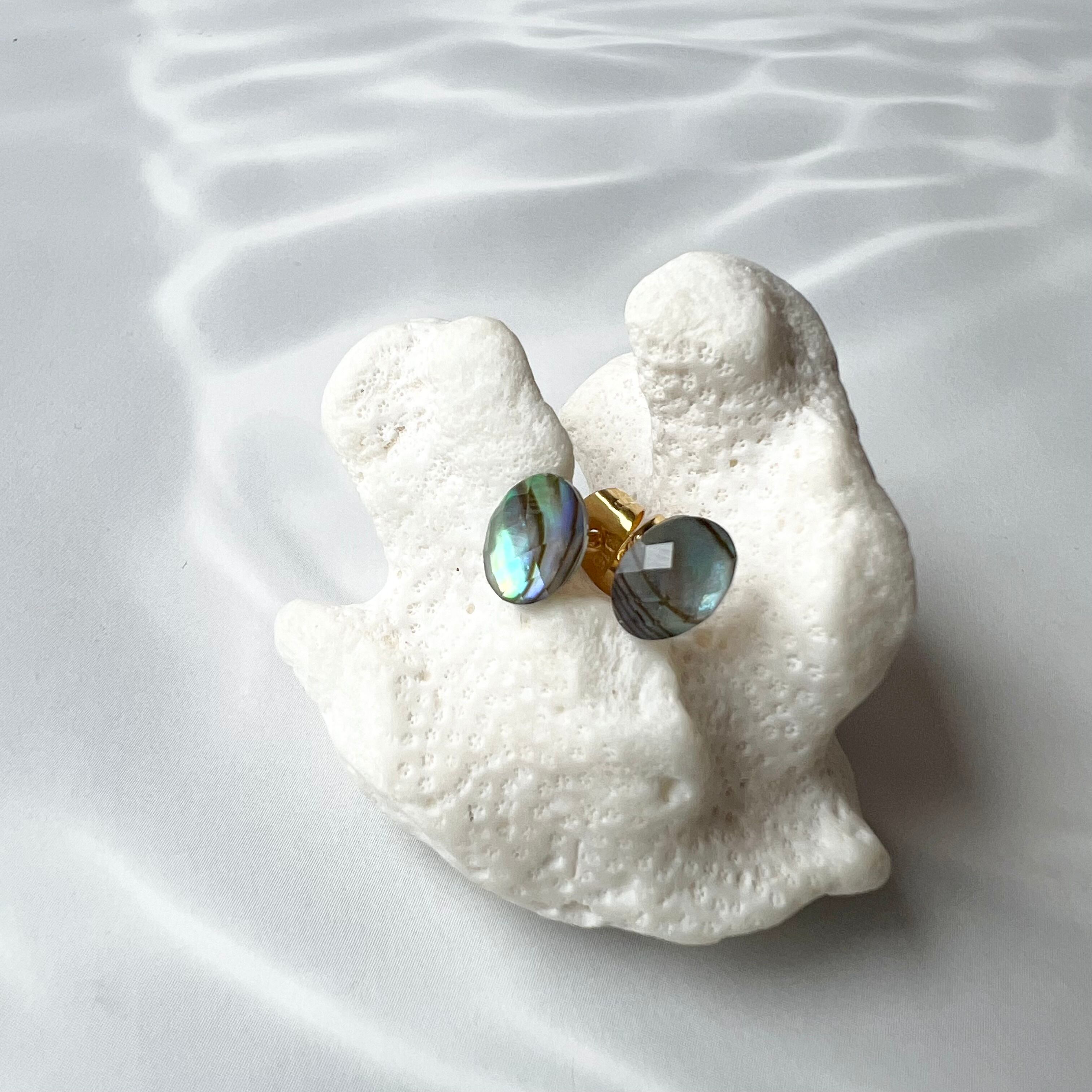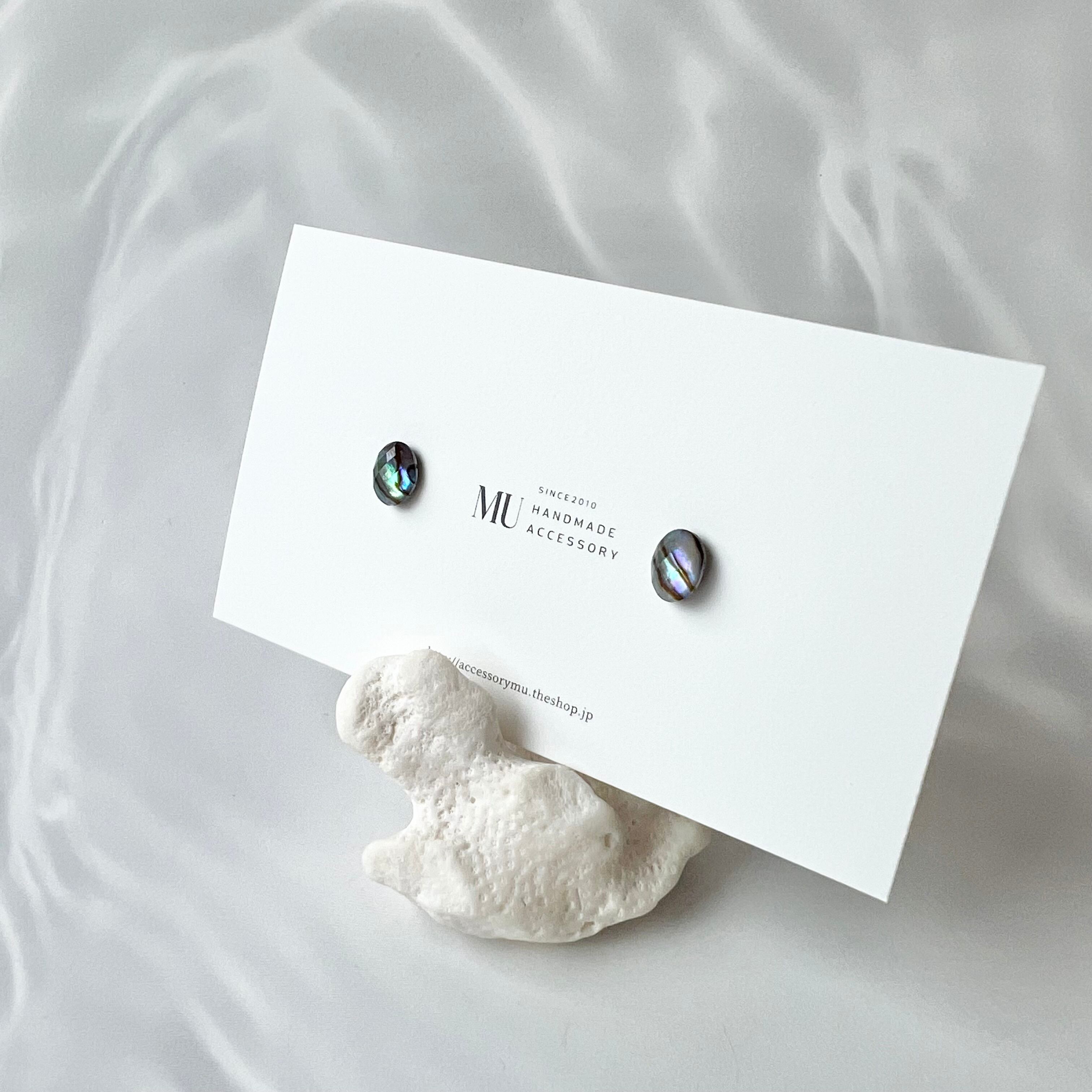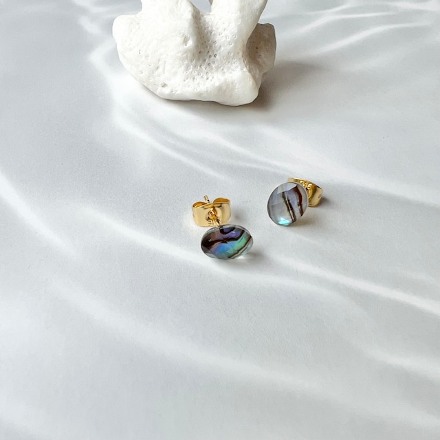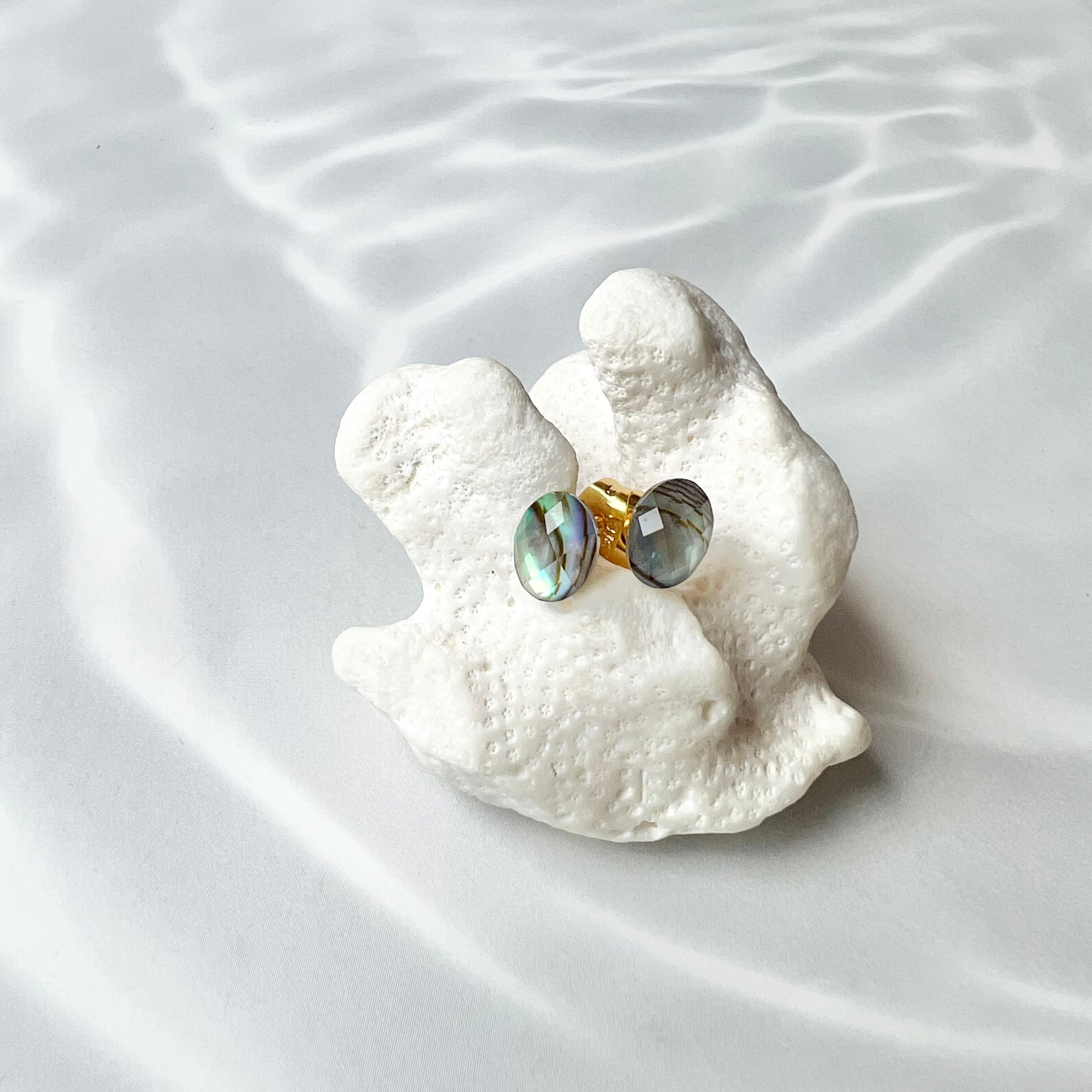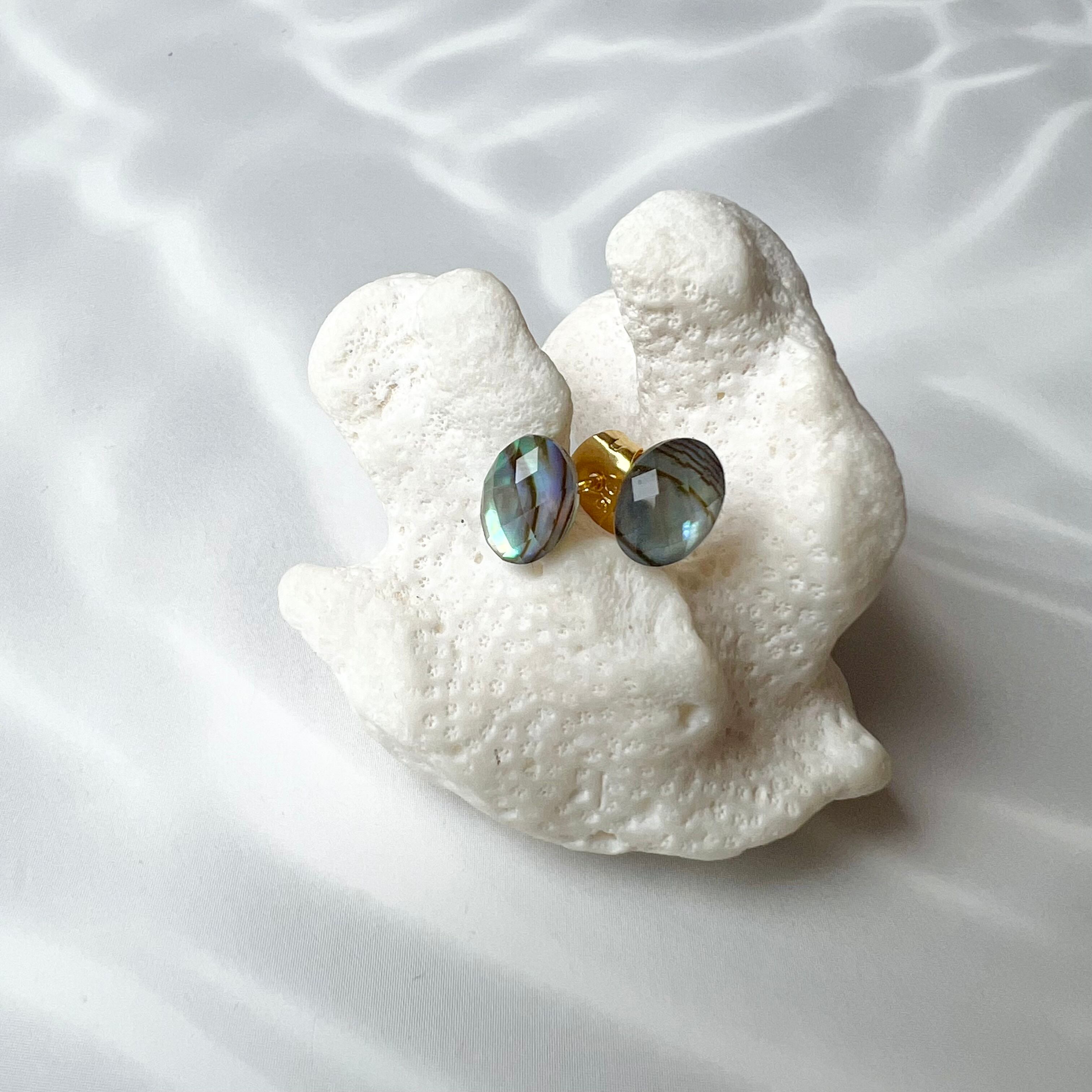 アバロンシェル×水晶 ミニカボションピアス