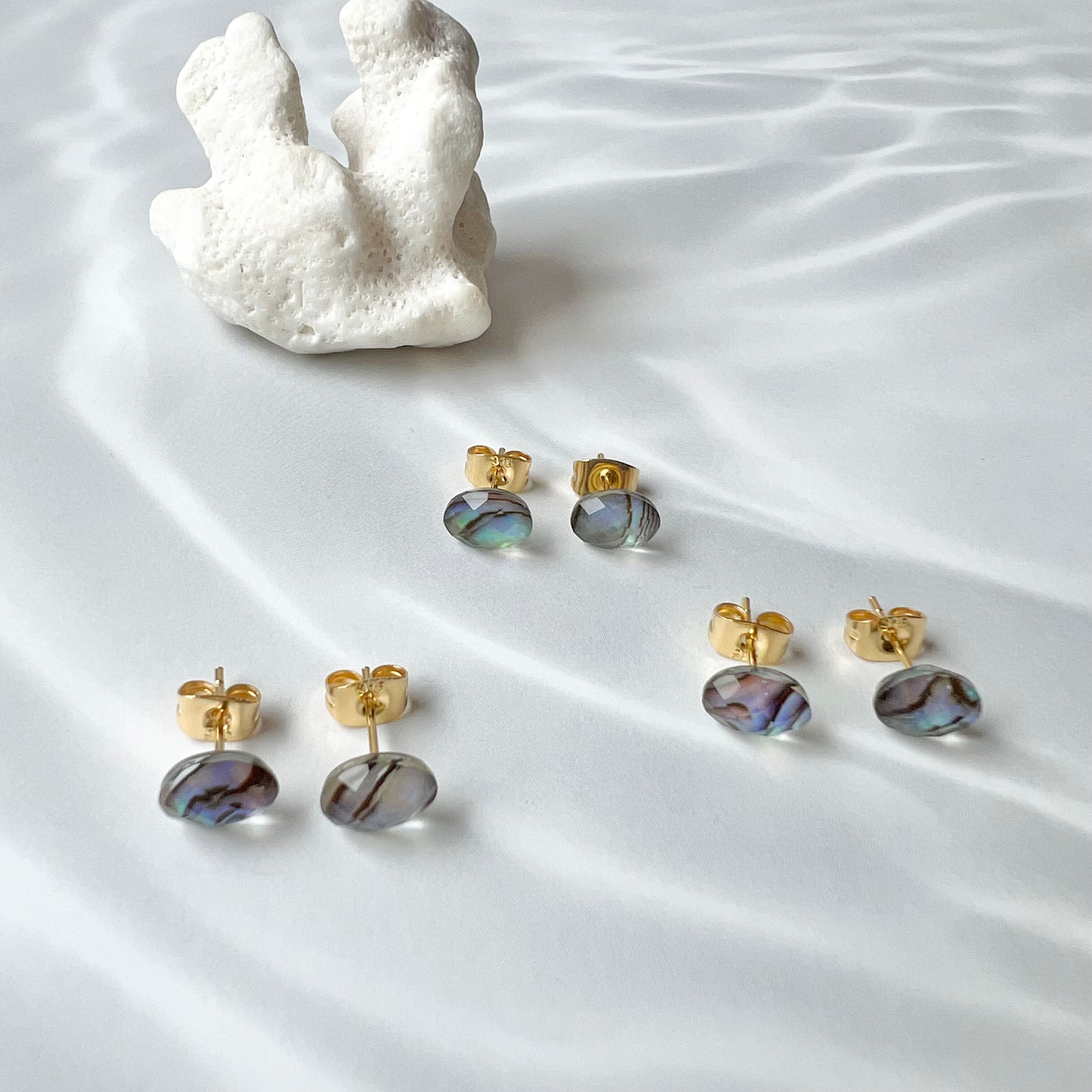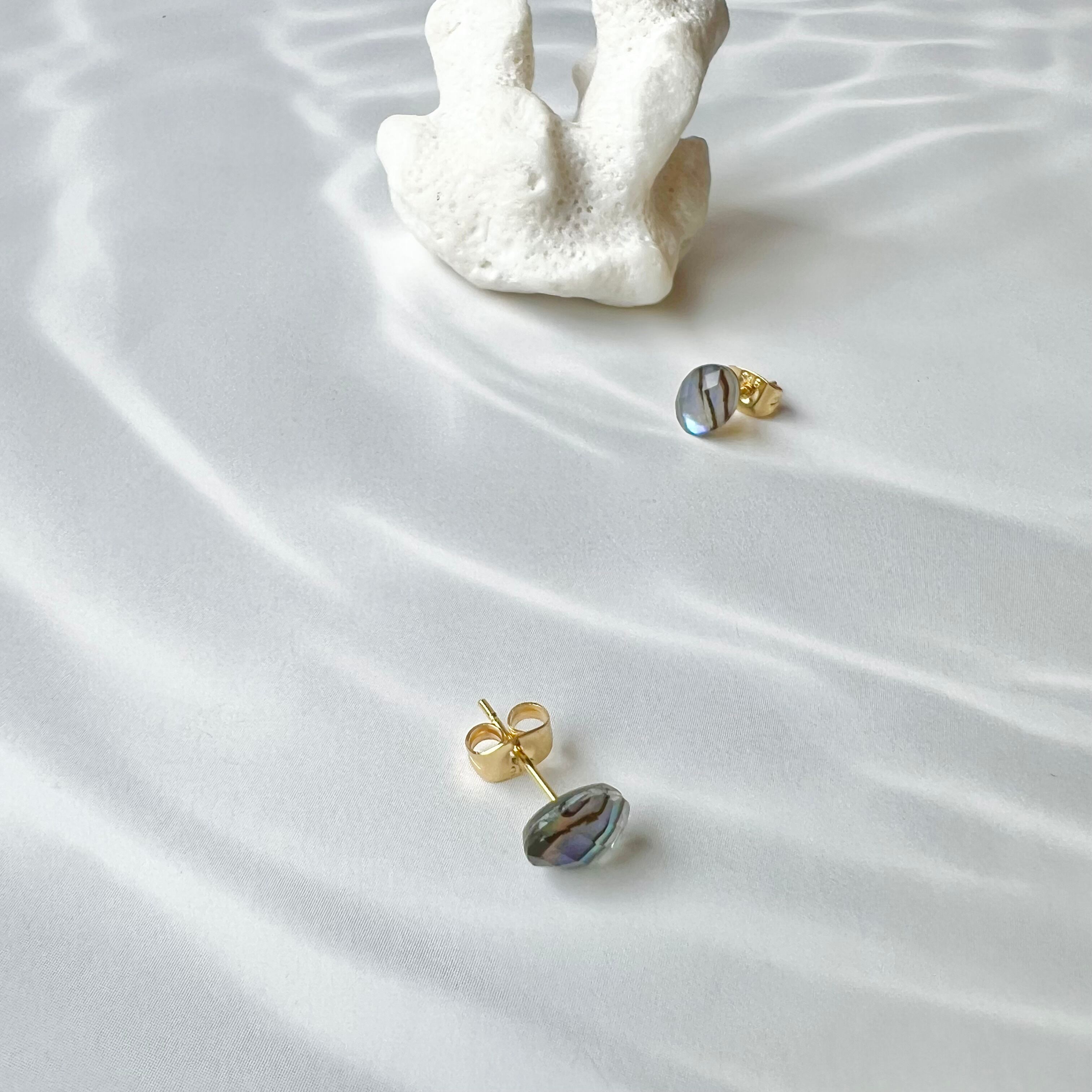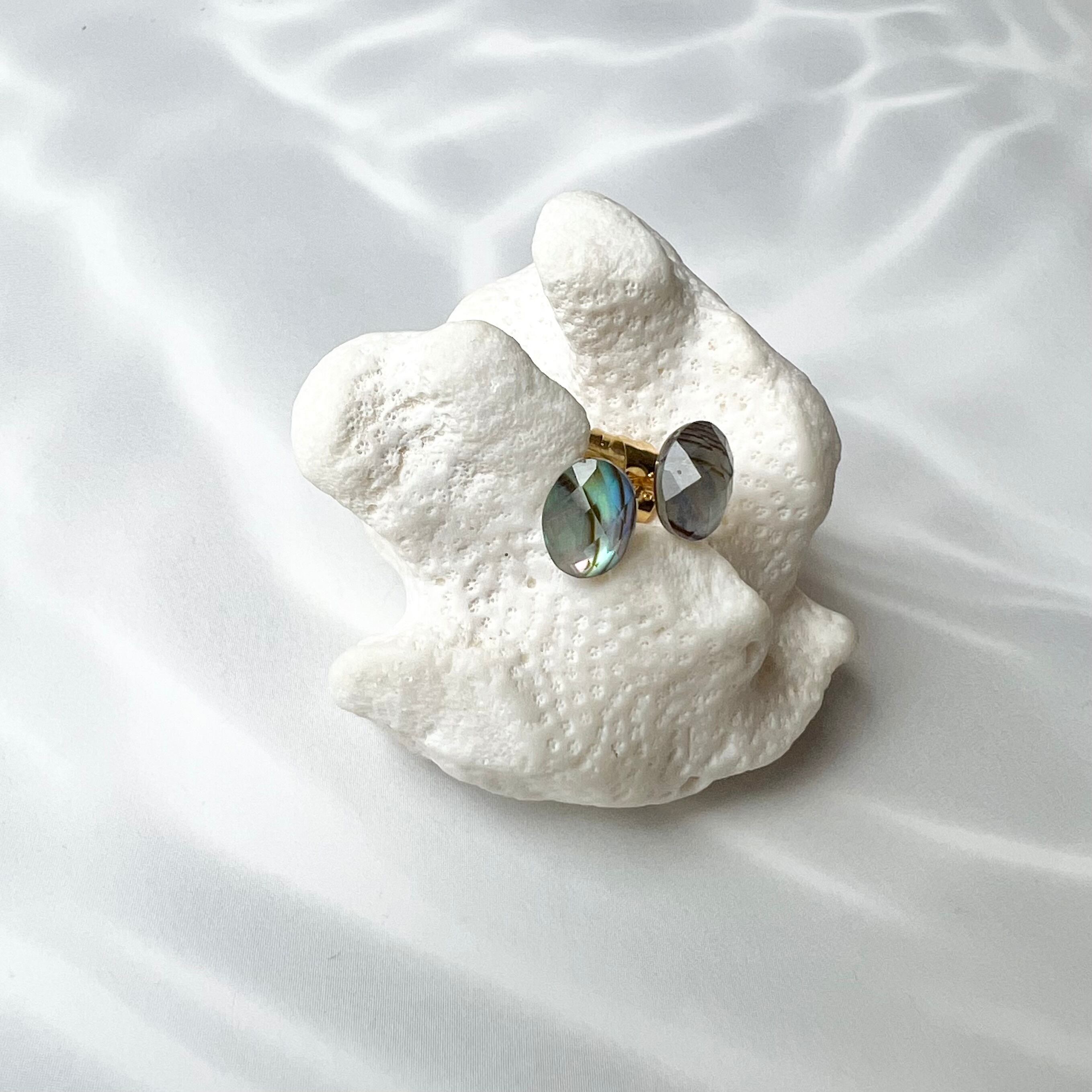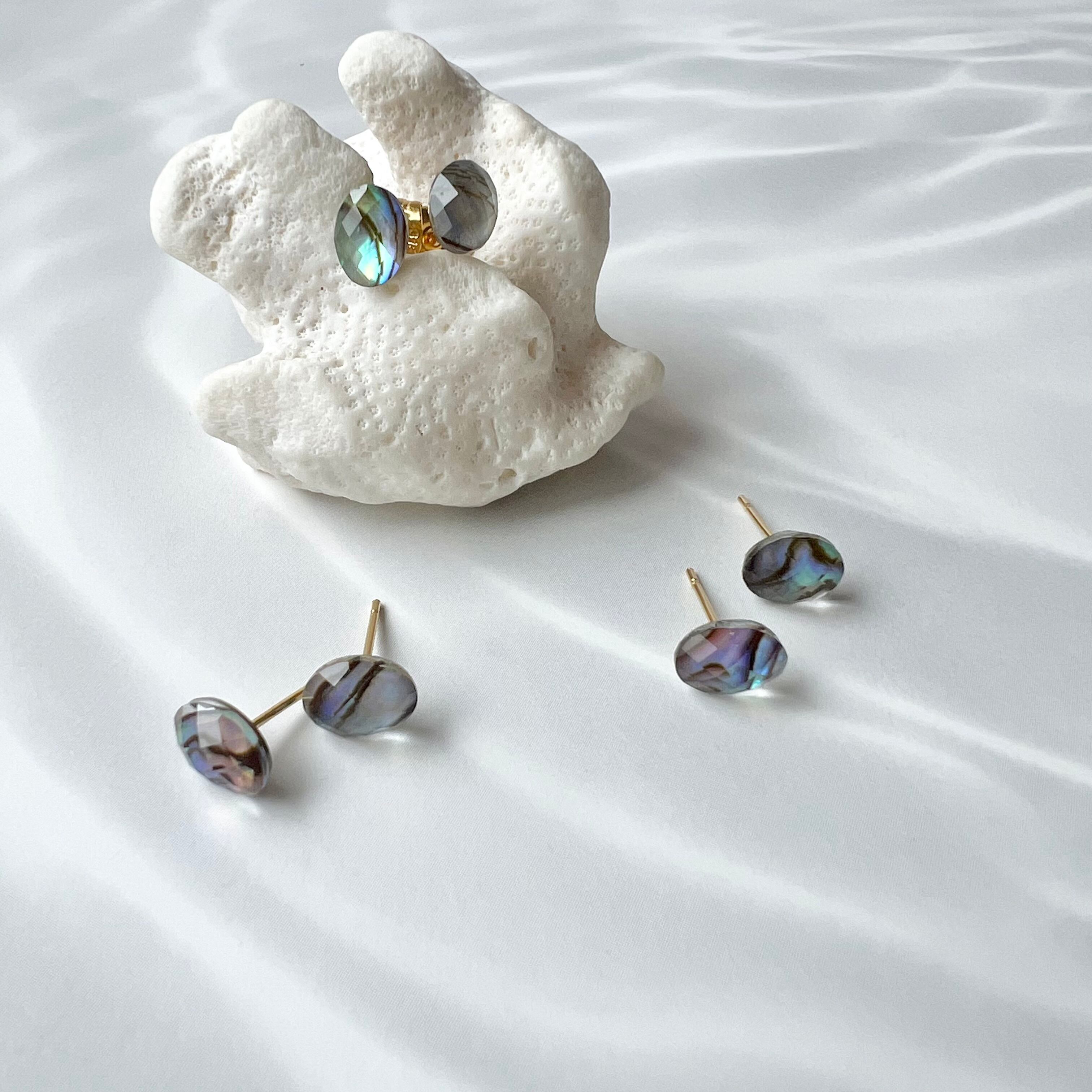 アバロンシェル×水晶 ミニカボションピアス