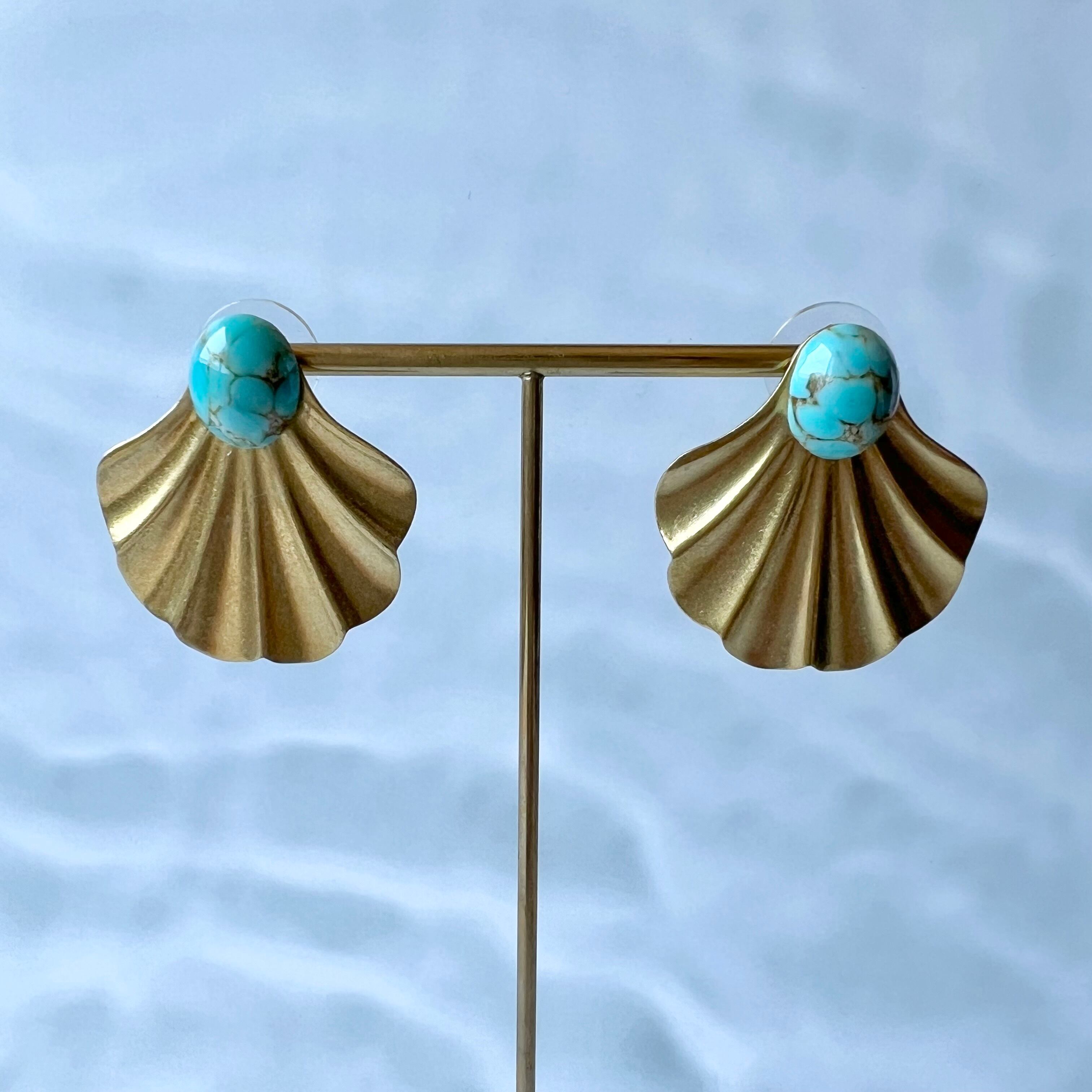 ヴィンテージターコイズ×シェル真鍮ピアス