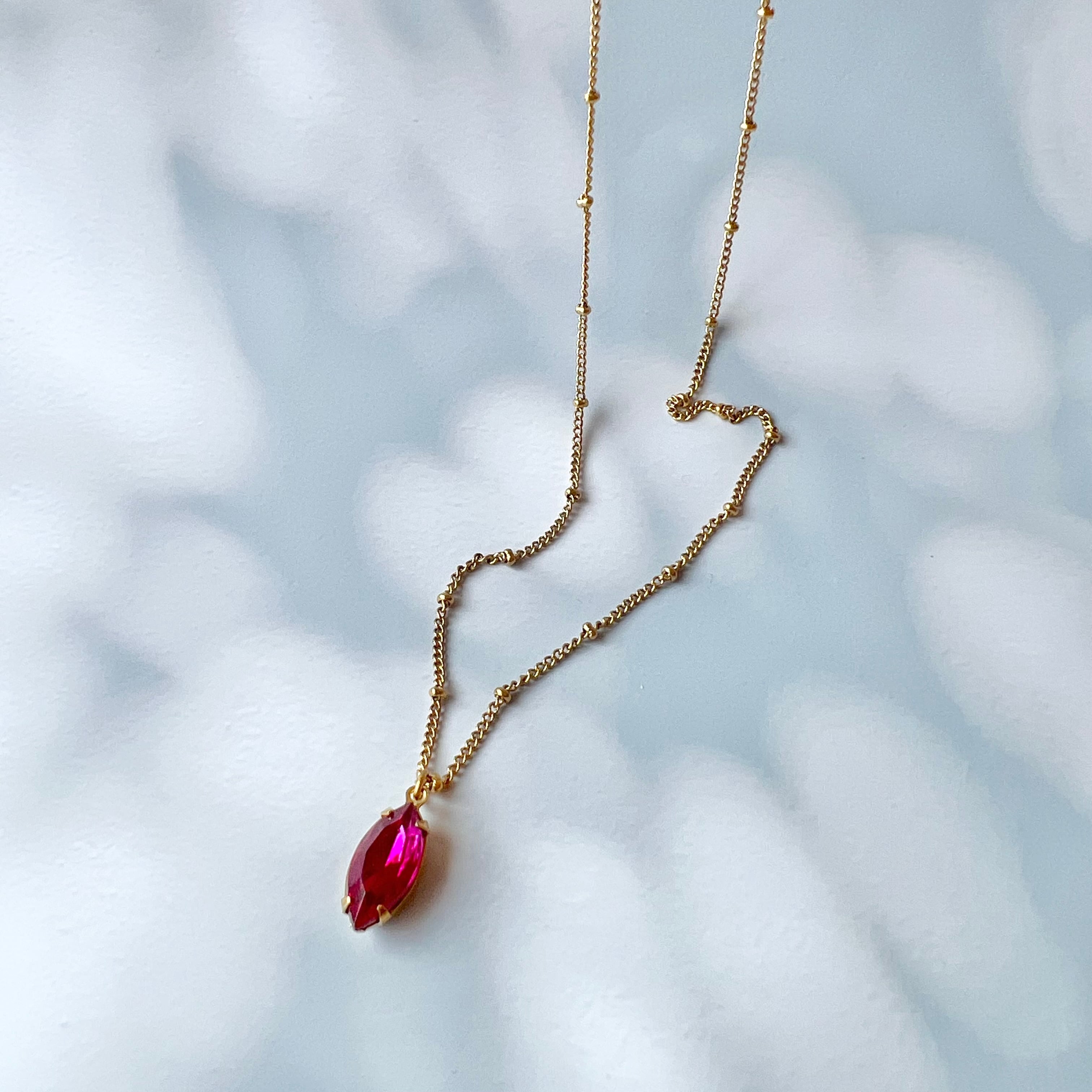 〈ルビーピンク〉ヴィンテージガラス×ネックレス サージカルステンレス